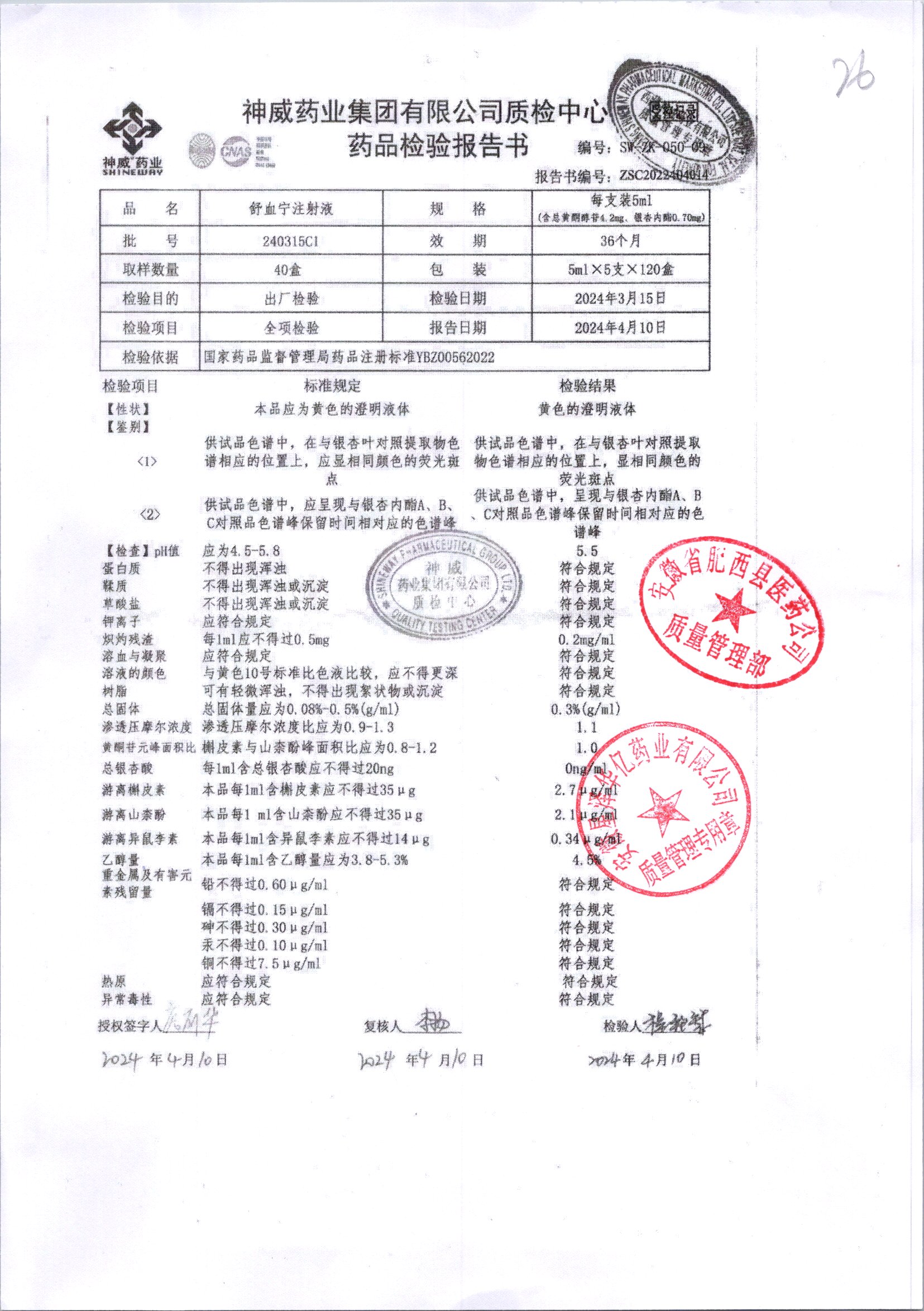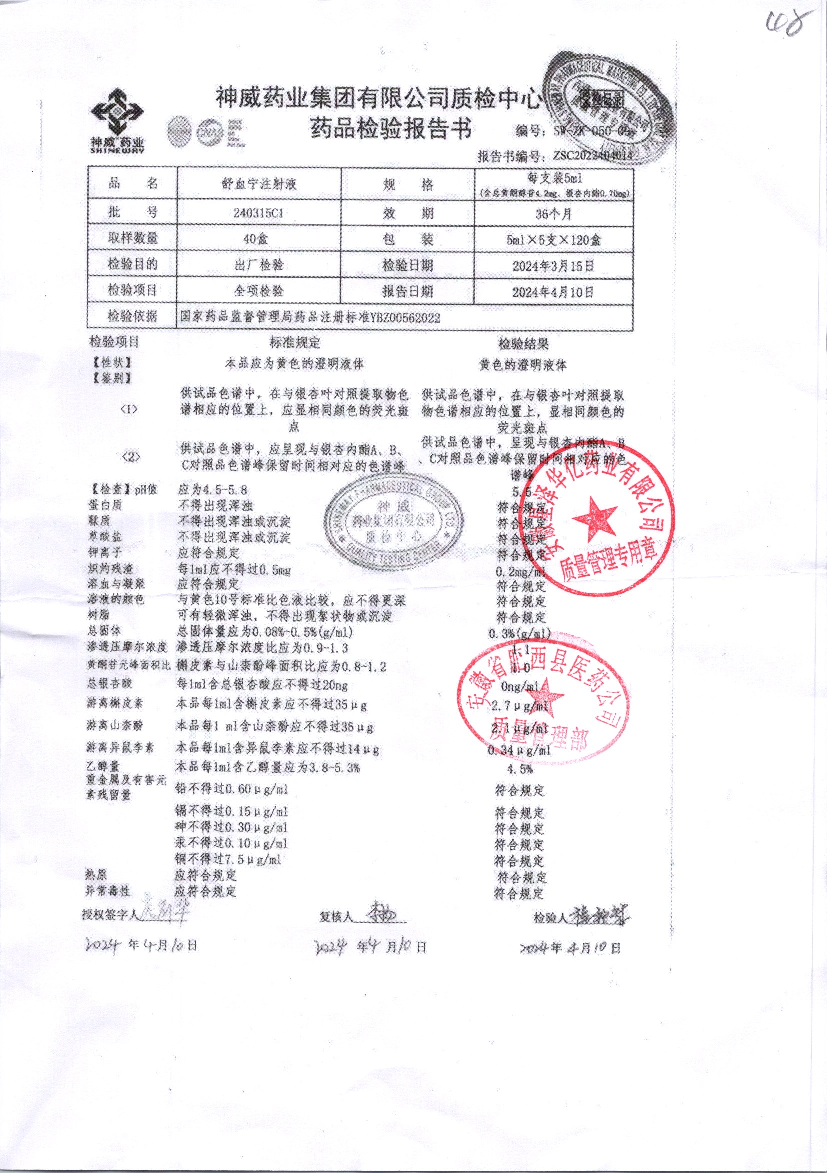 舒血宁注射液 | 5ml*5支 | 240419C1 | 查看详情 |