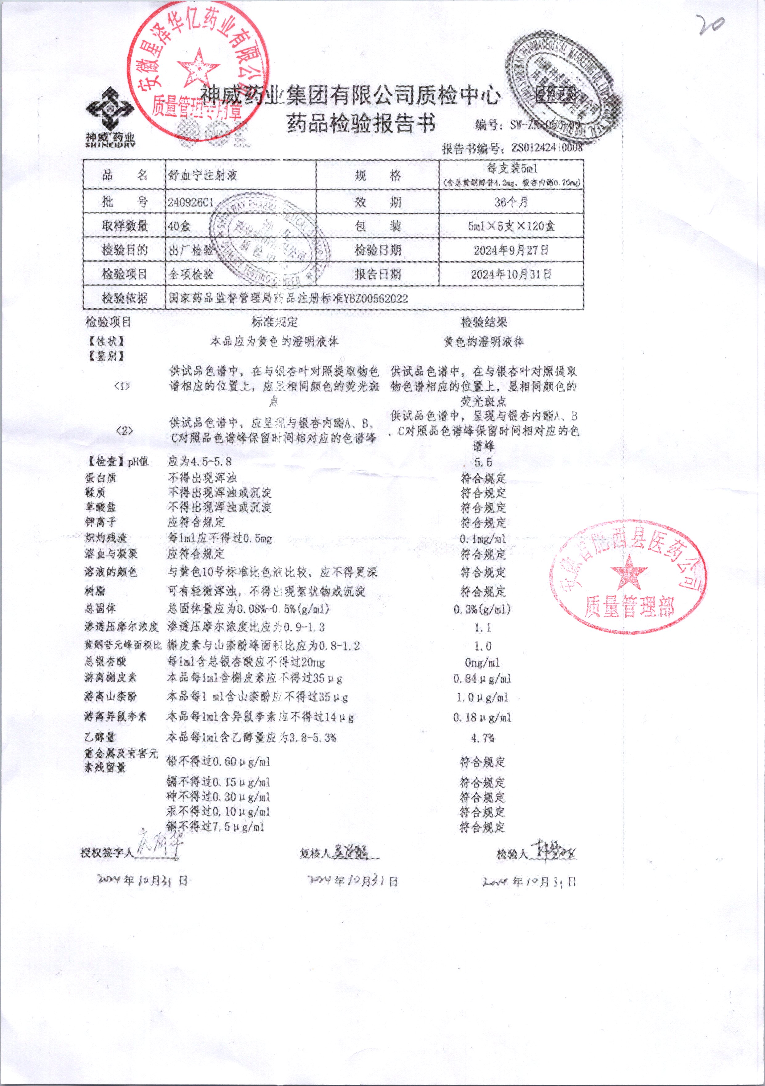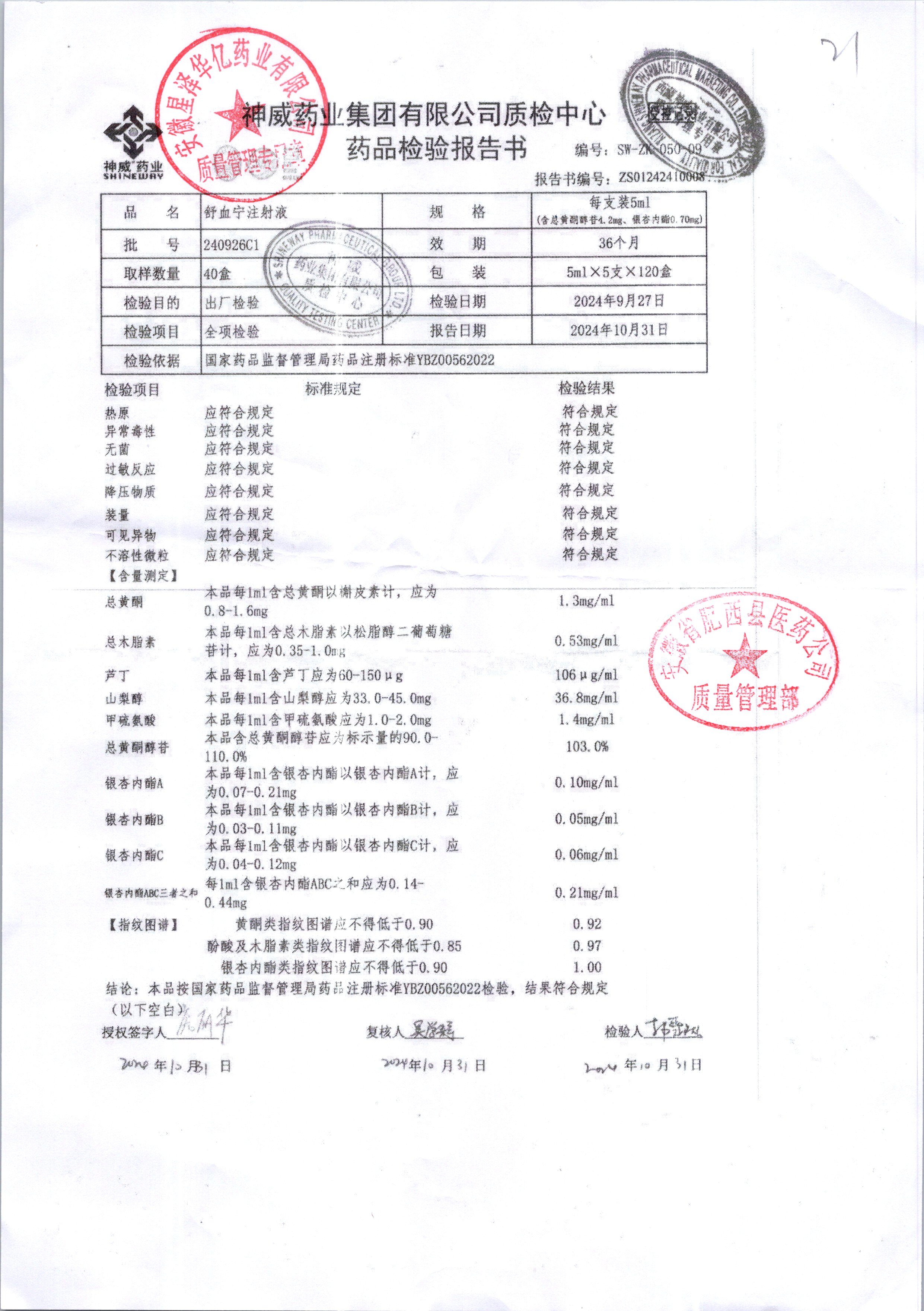 舒血宁注射液 | 5ml*5支 | 240924C1/2 | 查看详情 |