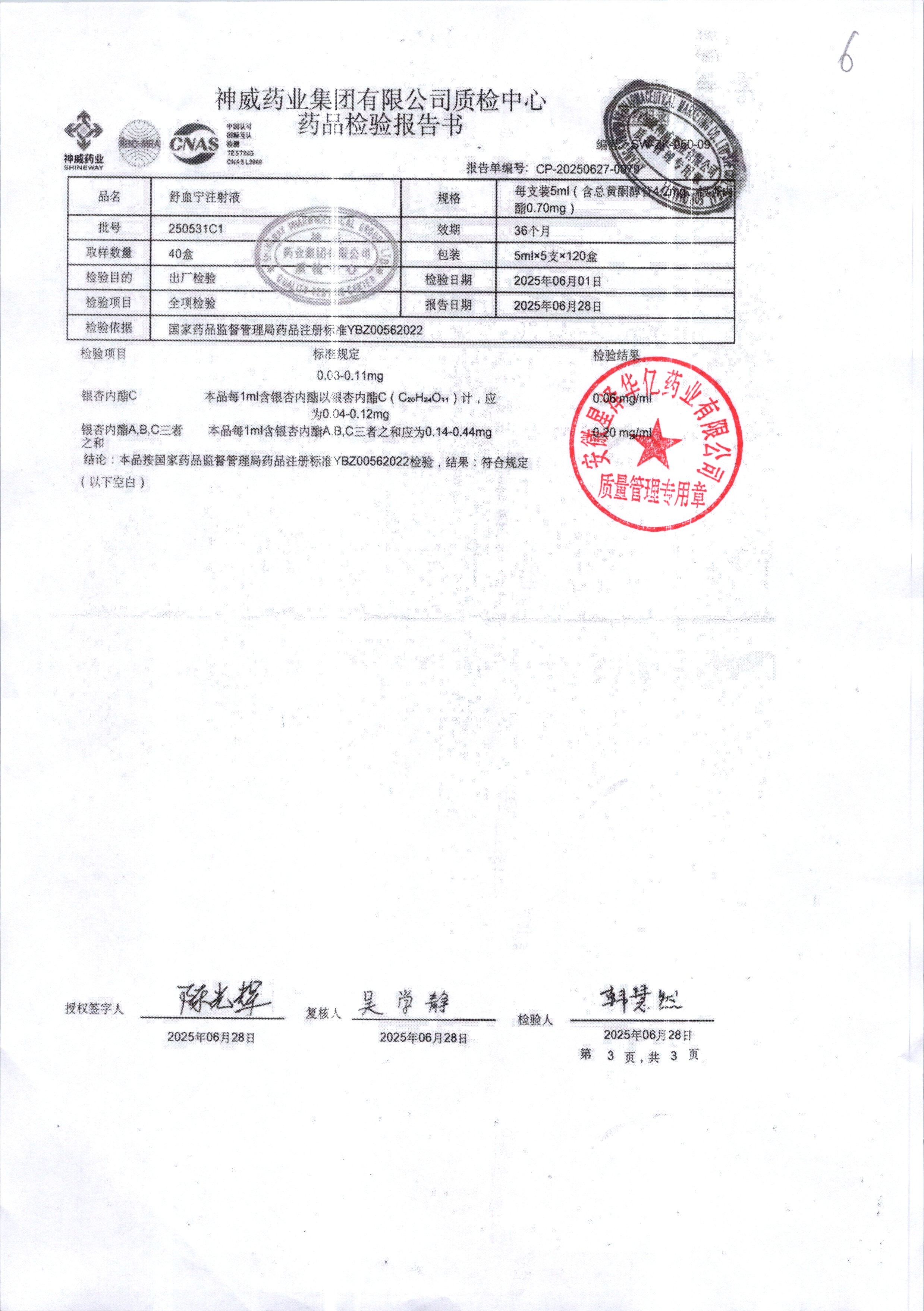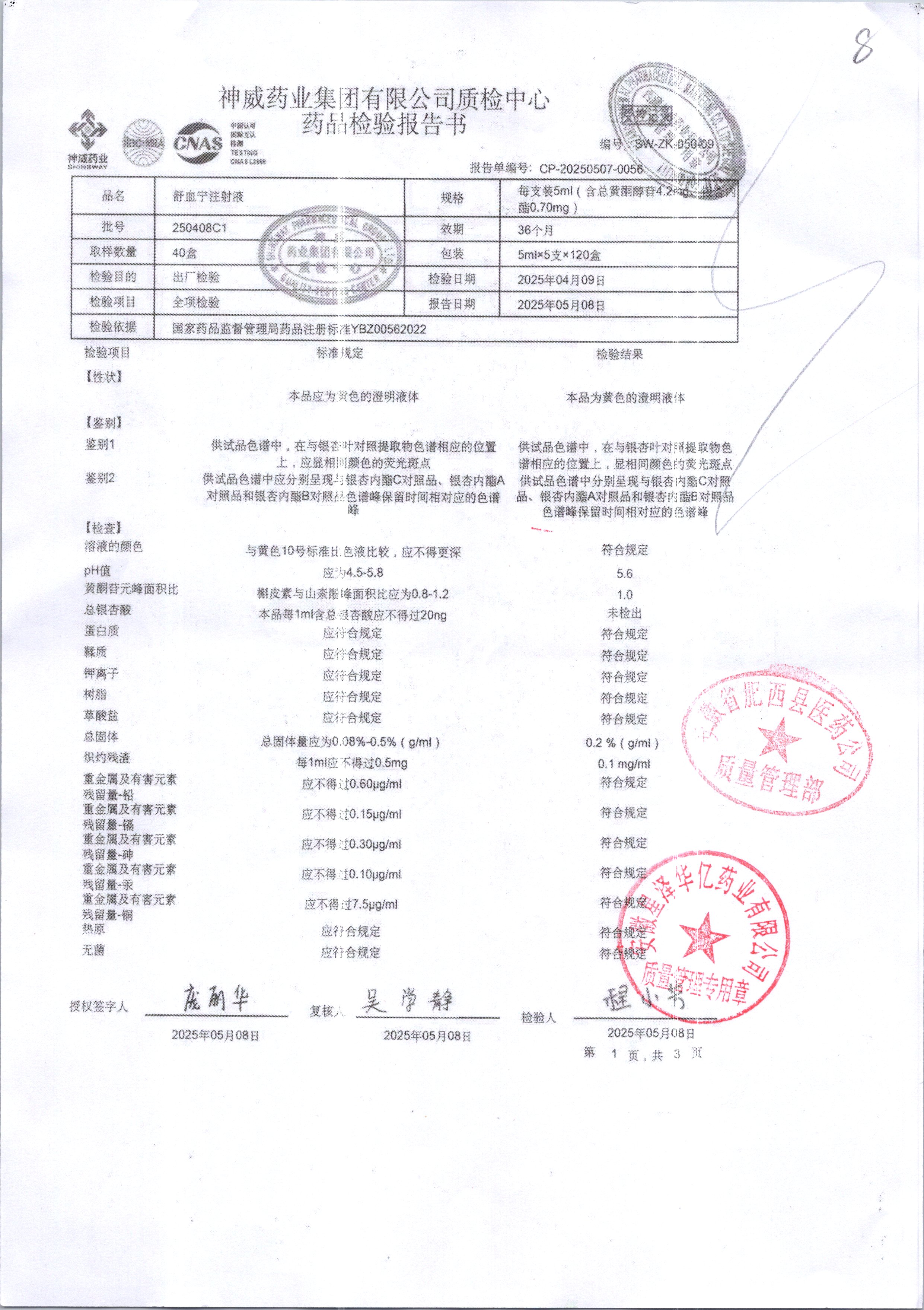 舒血宁注射液 | 5ml*5支 | 250531C1/3 | 查看详情 |