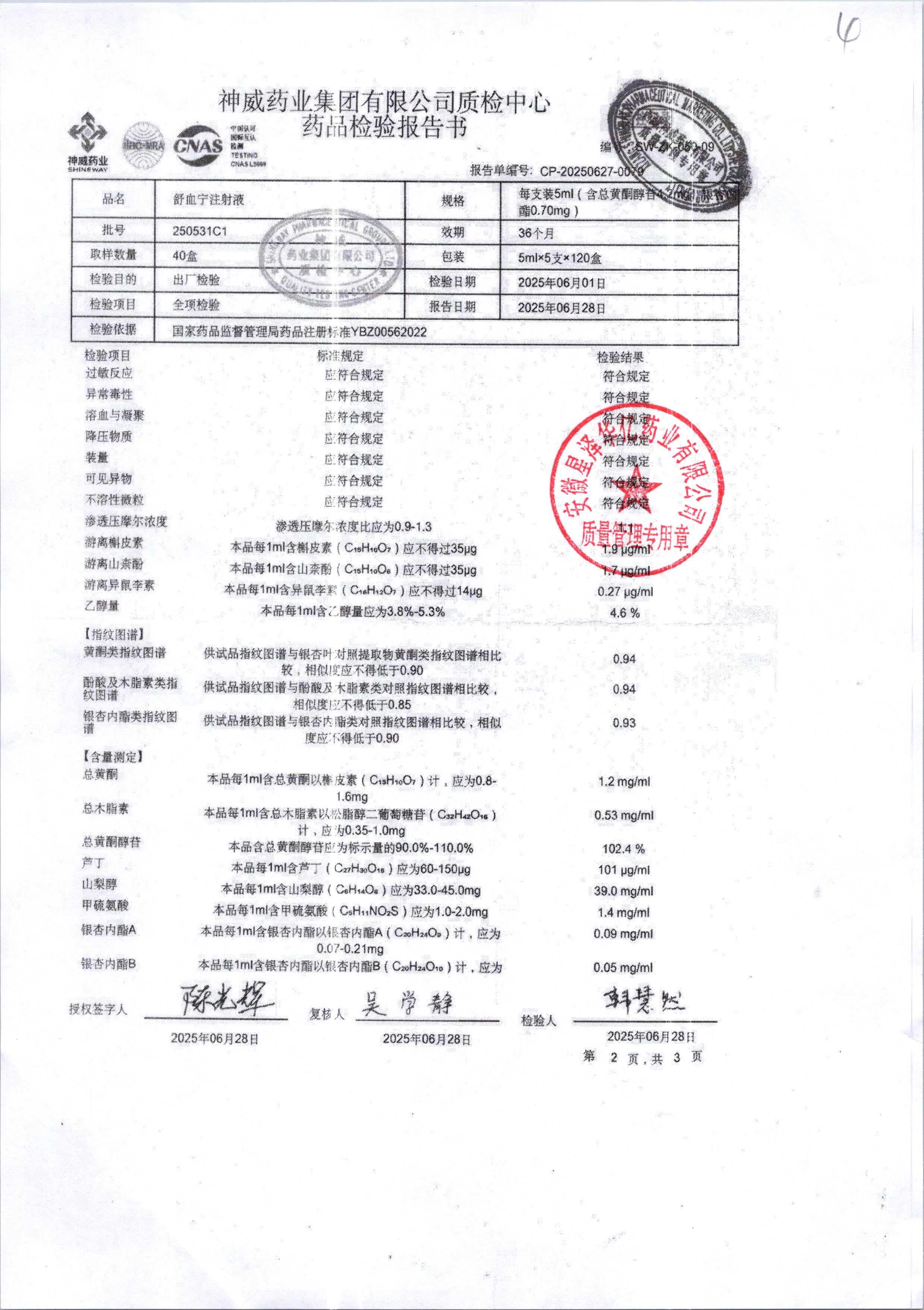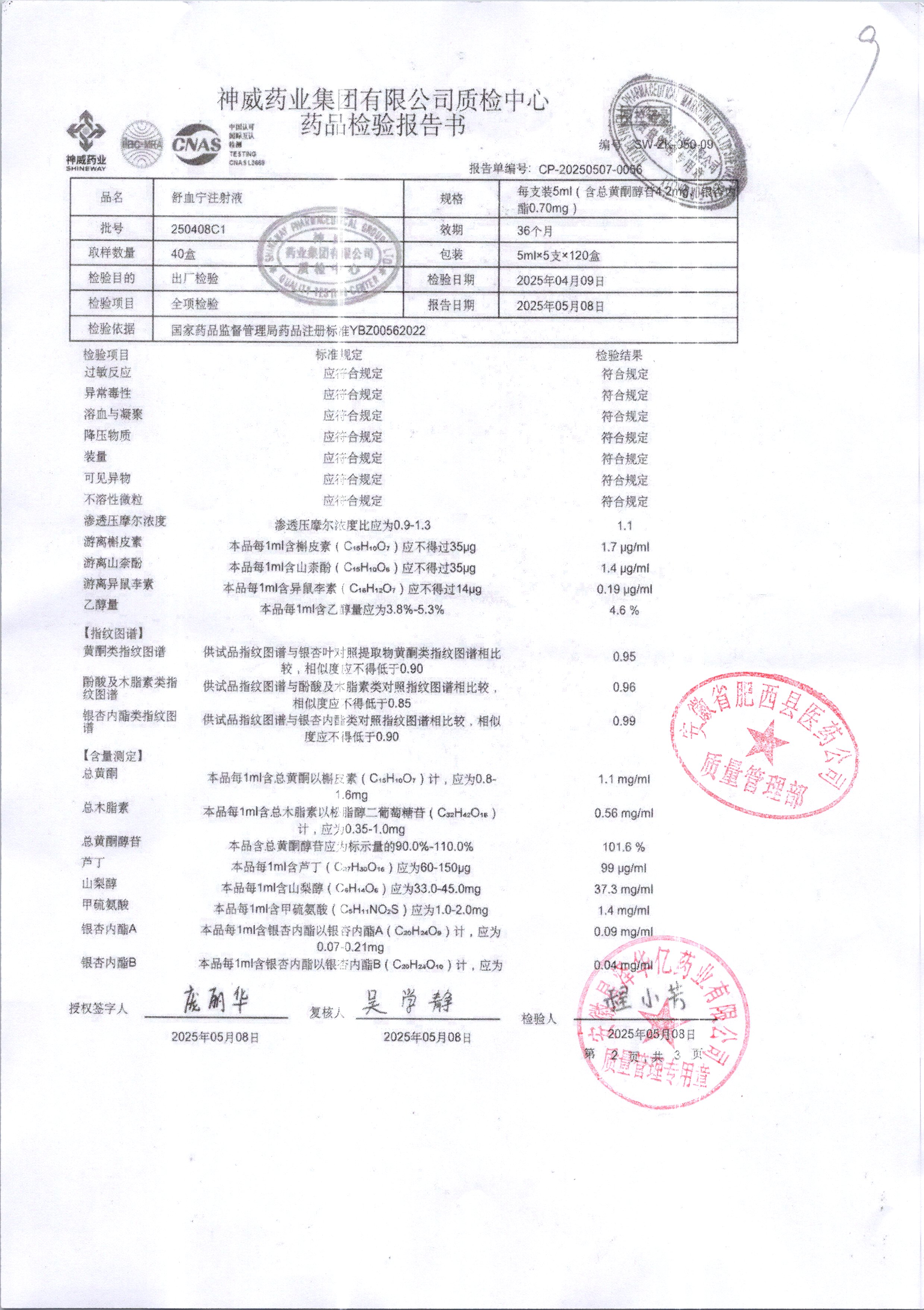 舒血宁注射液 | 5ml*5支 | 250531C1/2 | 查看详情 |