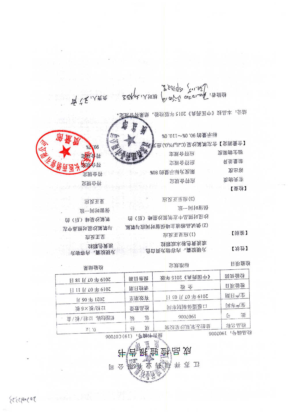 名称 | 规格 | 批号 | 药检报告 |