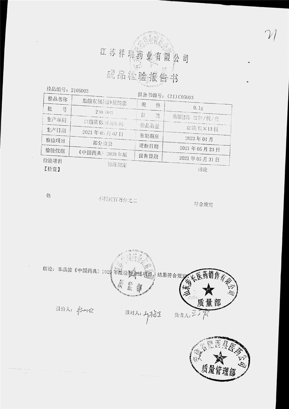 盐酸左氧氟沙星胶囊 | 0.1g*12粒 | 2104001(1/2) | 查看详情 |