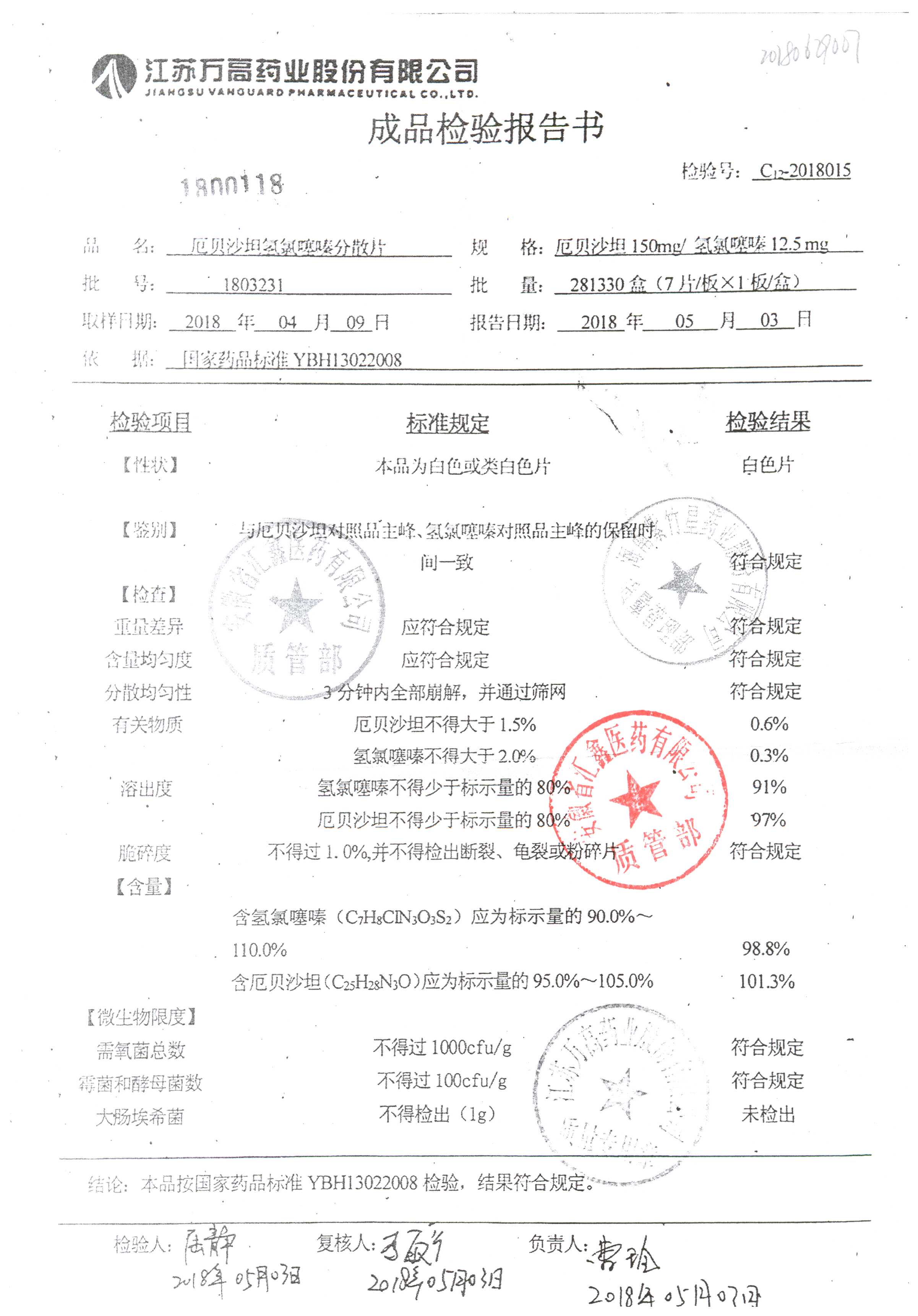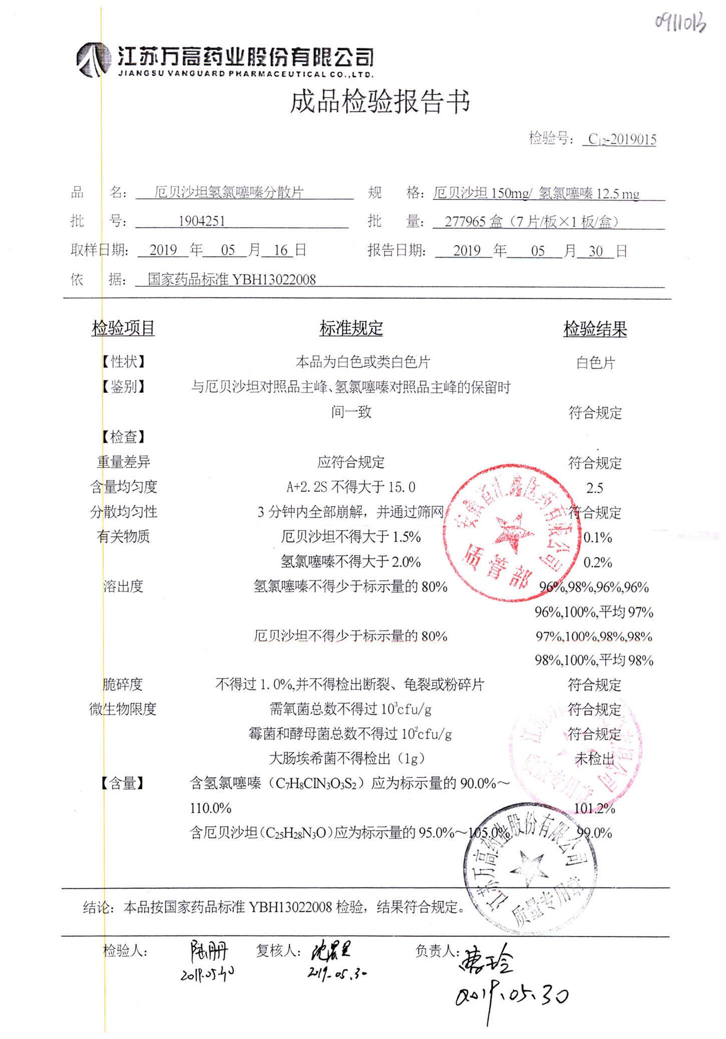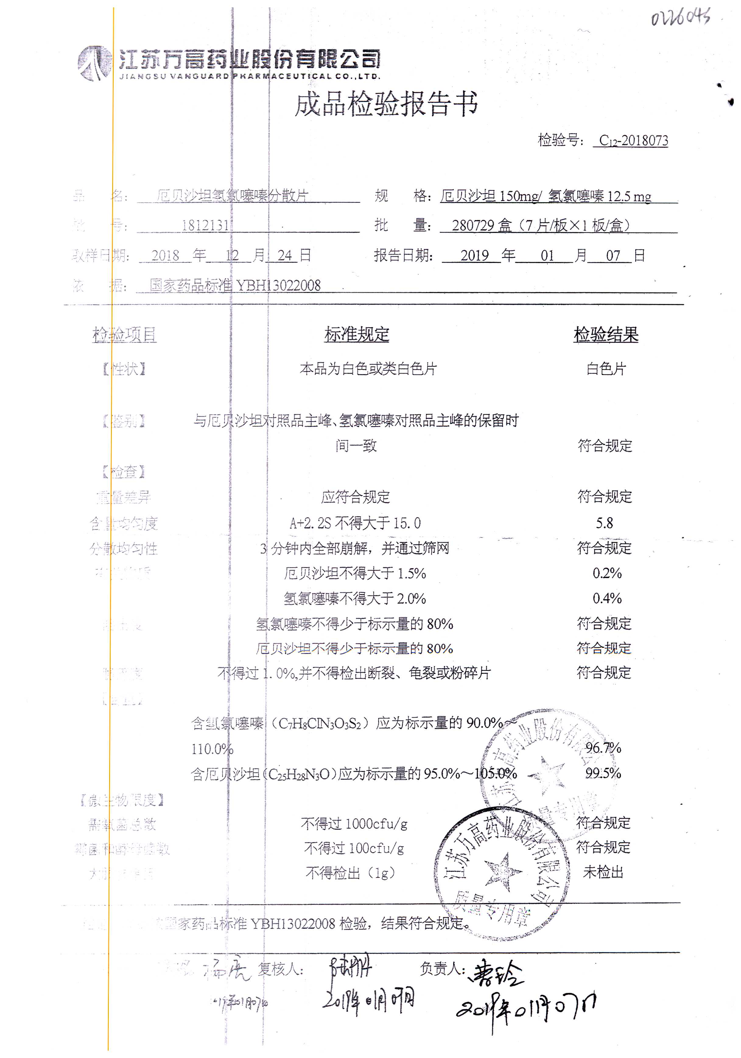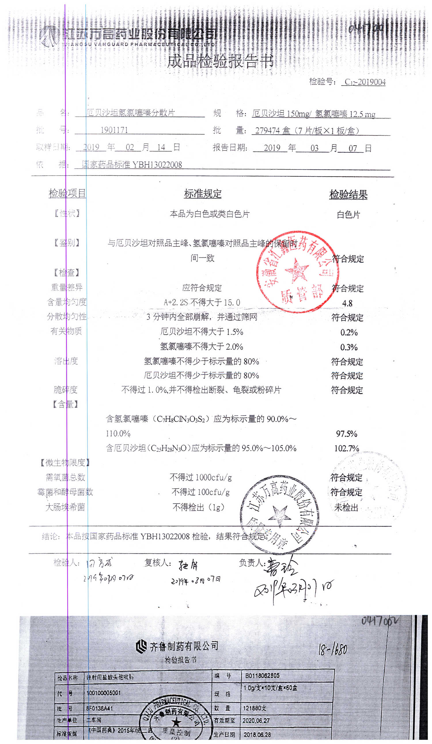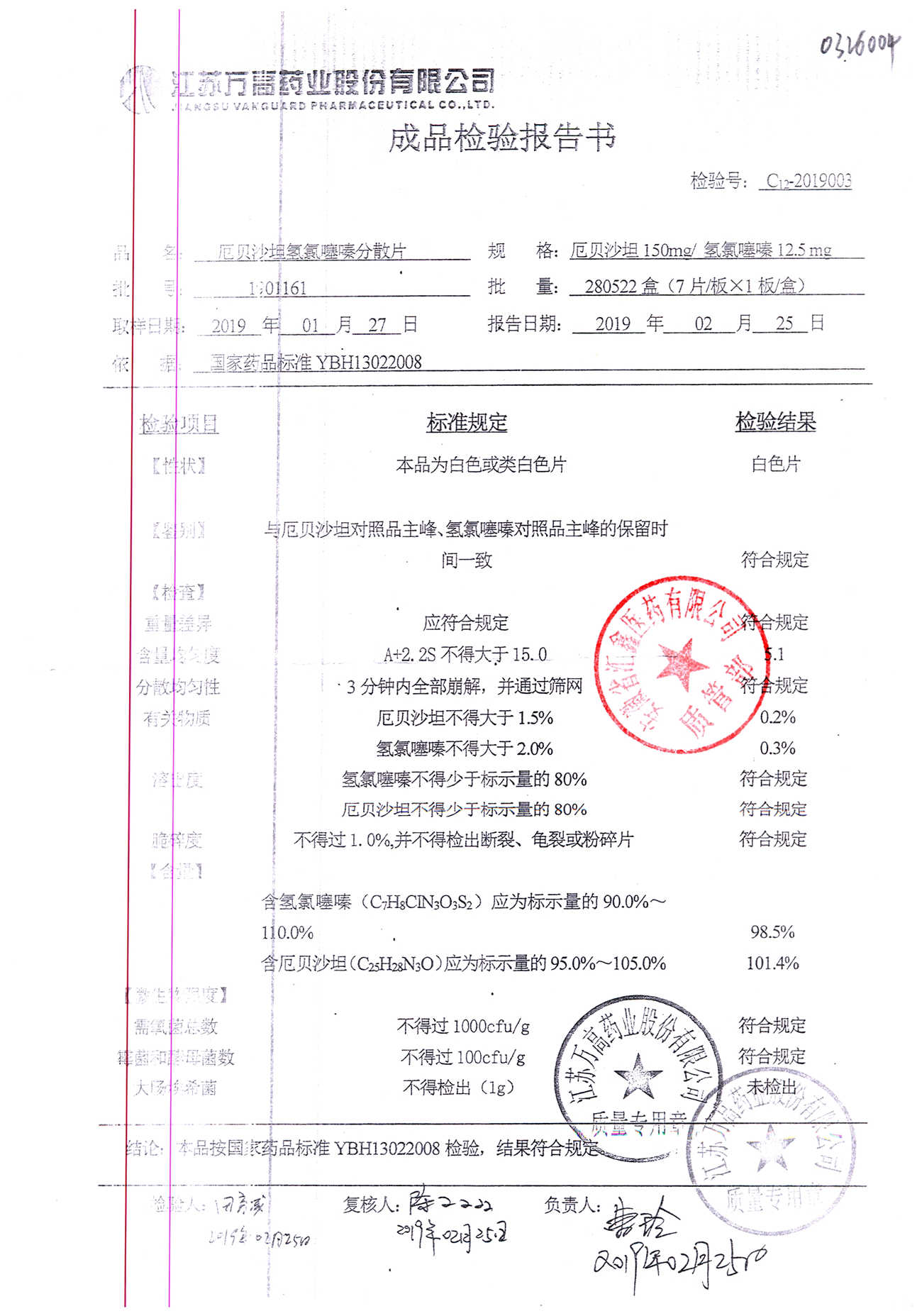 厄贝沙坦氢氯噻嗪分散片 | 150mg*7片 | 1904251 | 查看详情 |