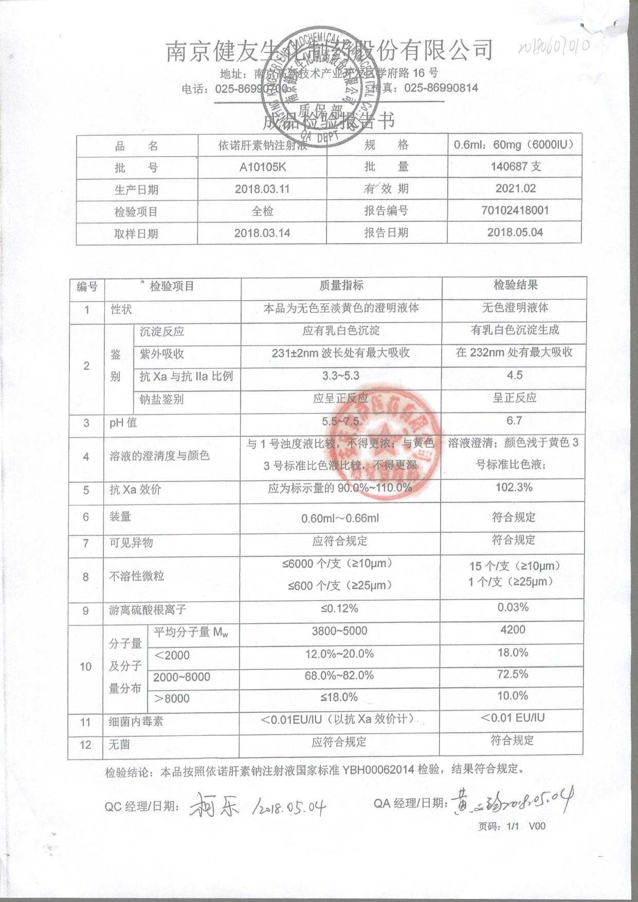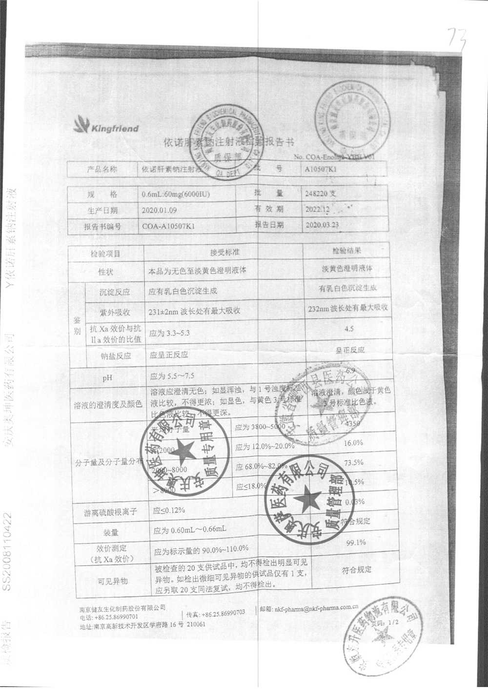 依诺肝素钠注射液 | 0.6ml:60mg | A10507KL(1/2) | 查看详情 |