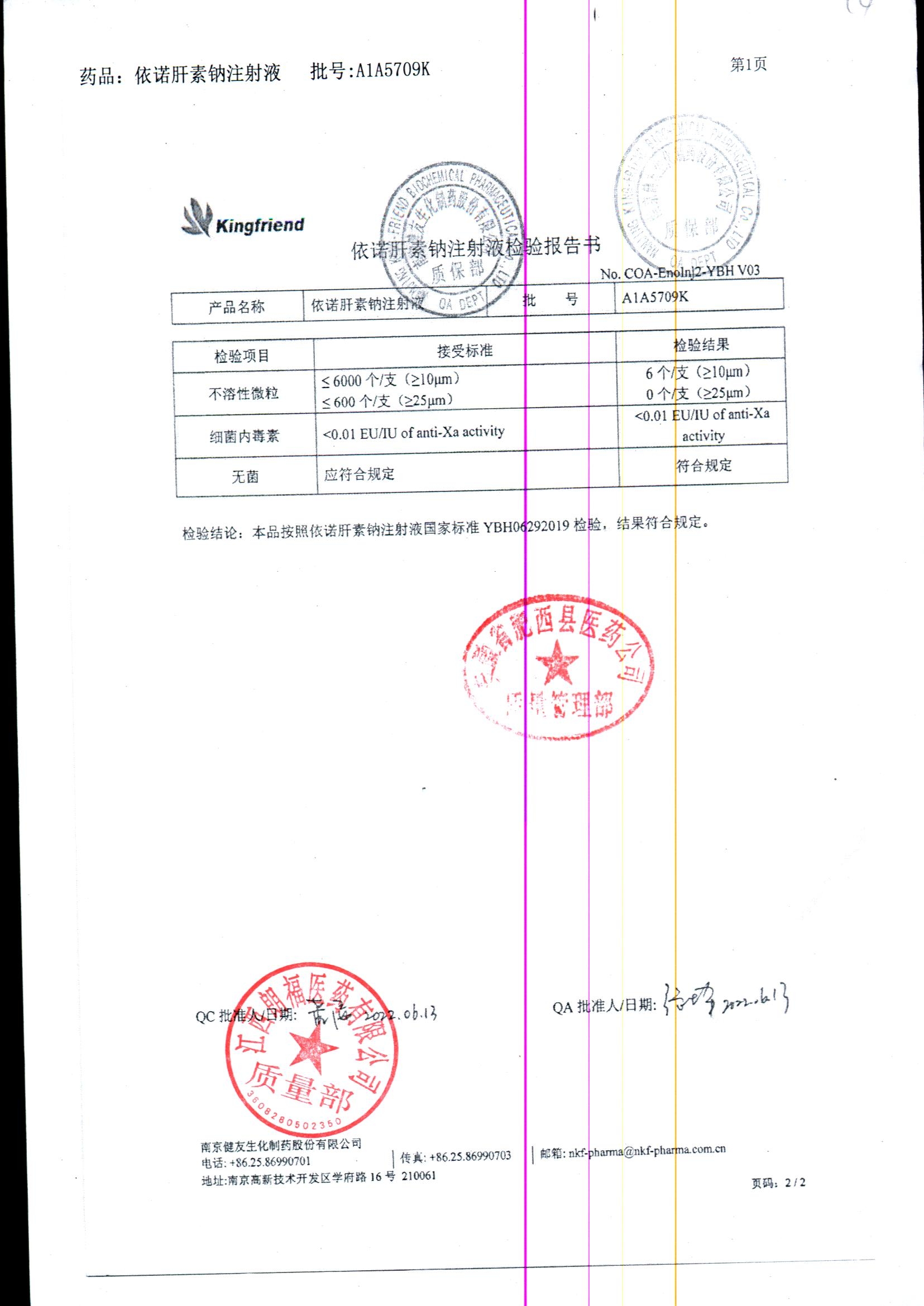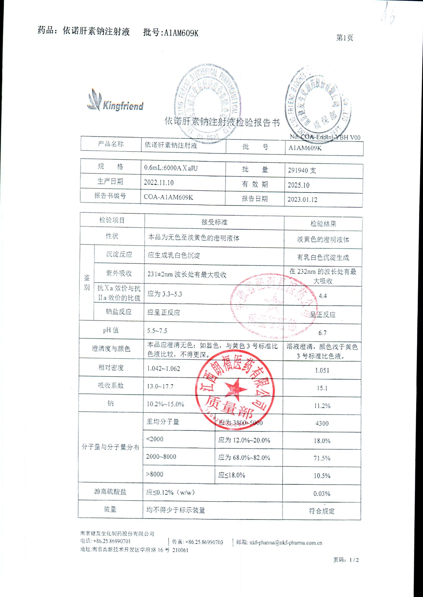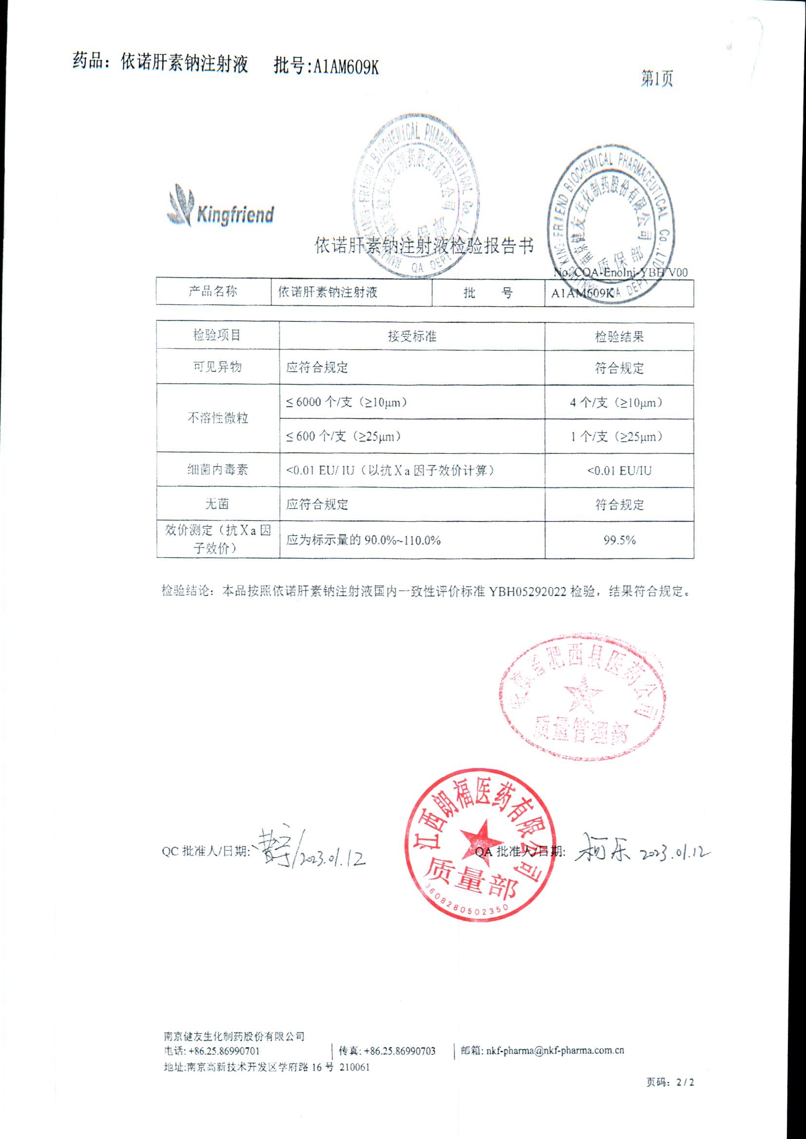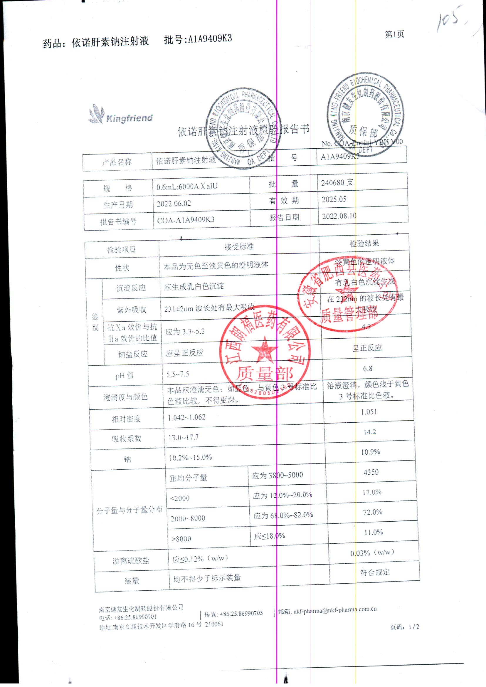 依诺肝素钠注射液 | 0.6ml:60mg | A1C607P2(2/2) | 查看详情 |
