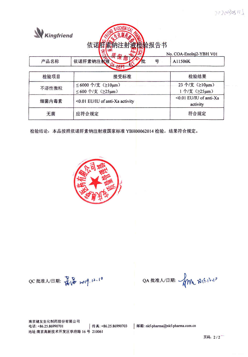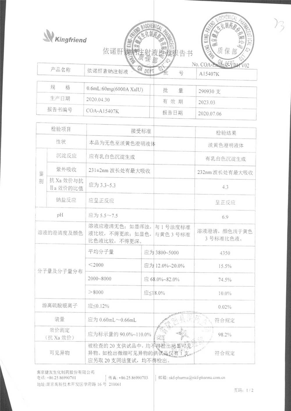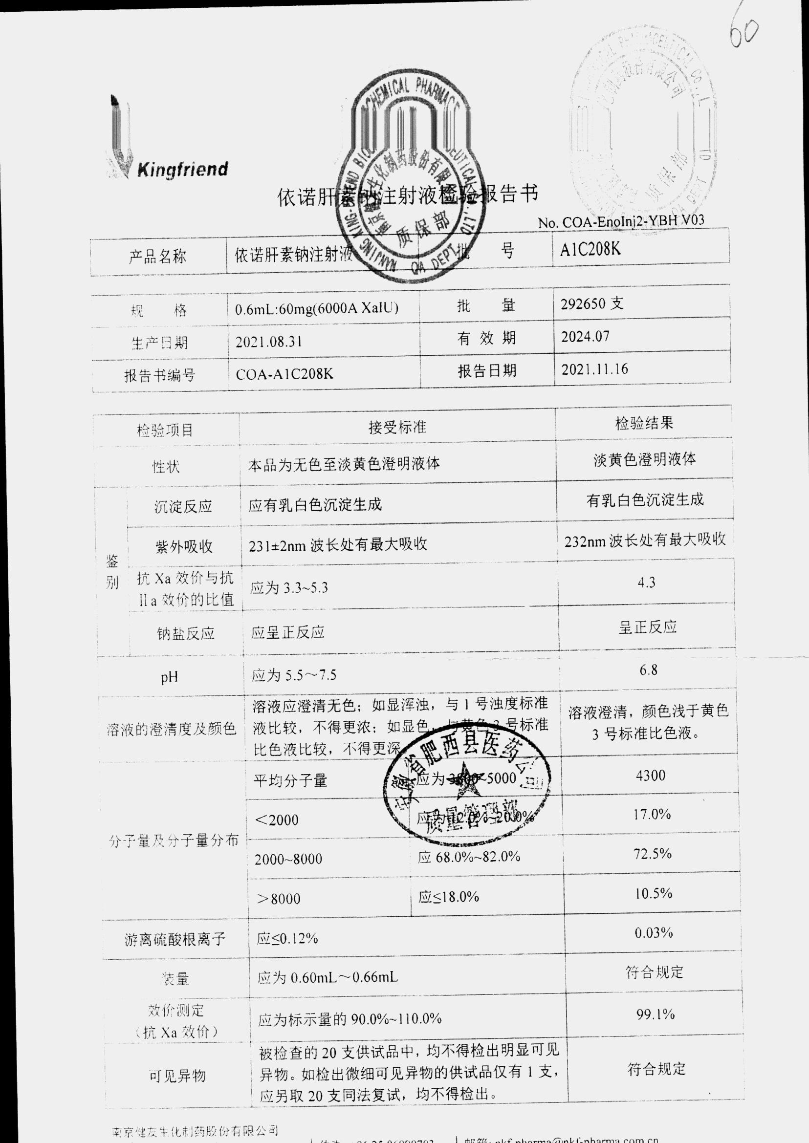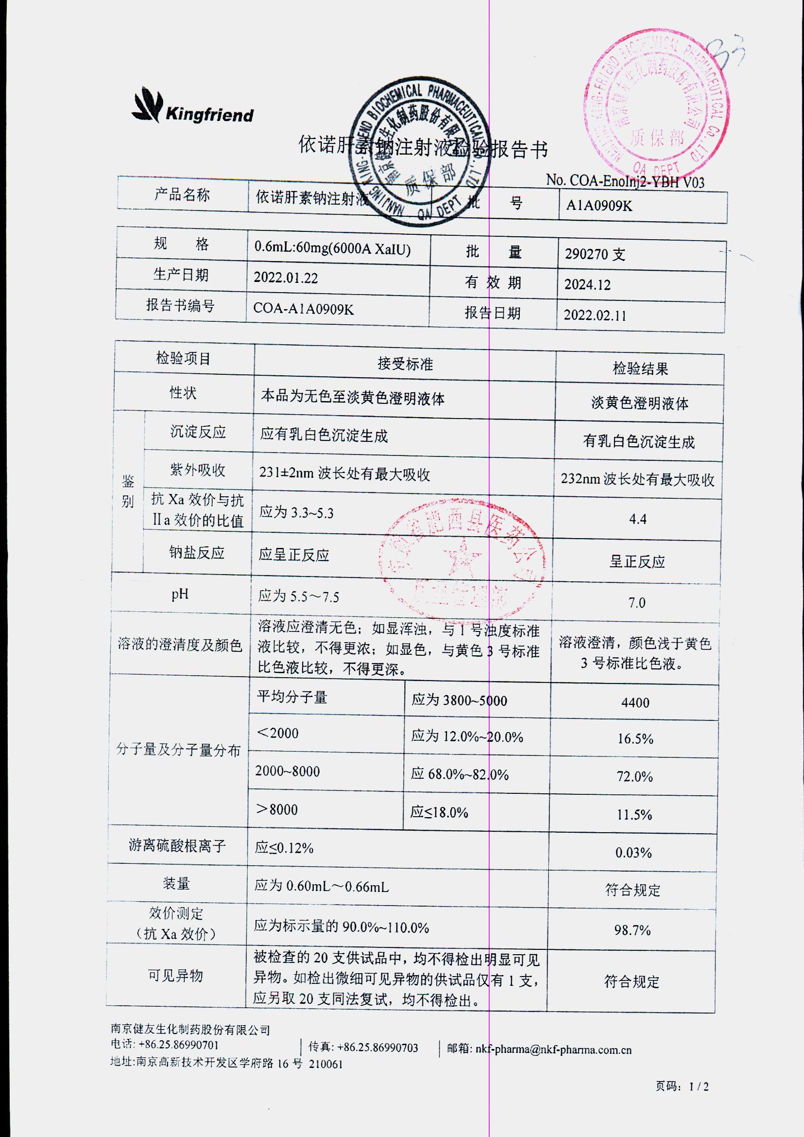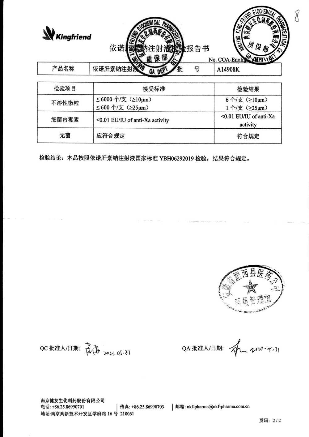 依诺肝素钠注射液 | 0.6ml:60mg | A1C607P2(2/2) | 查看详情 |