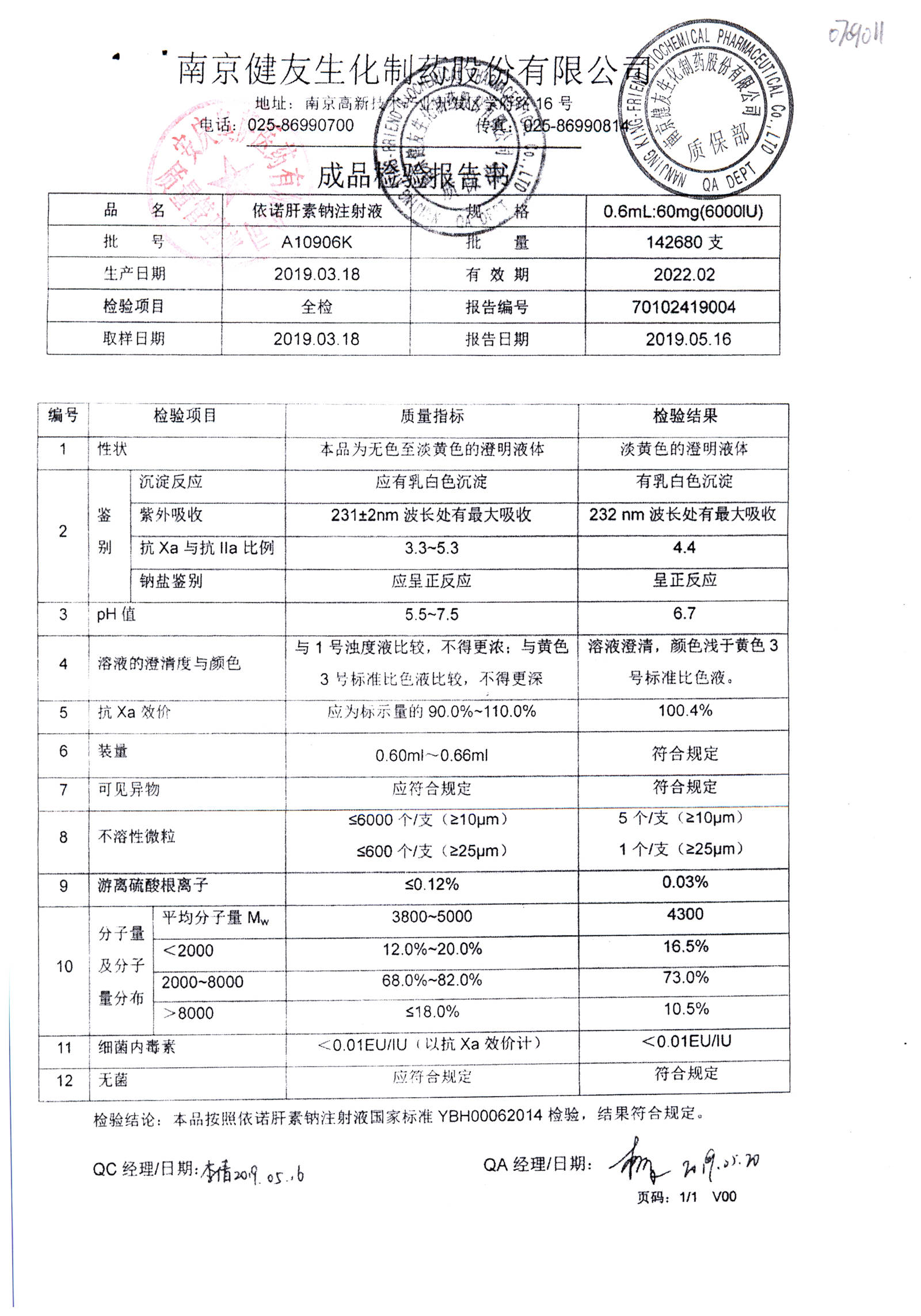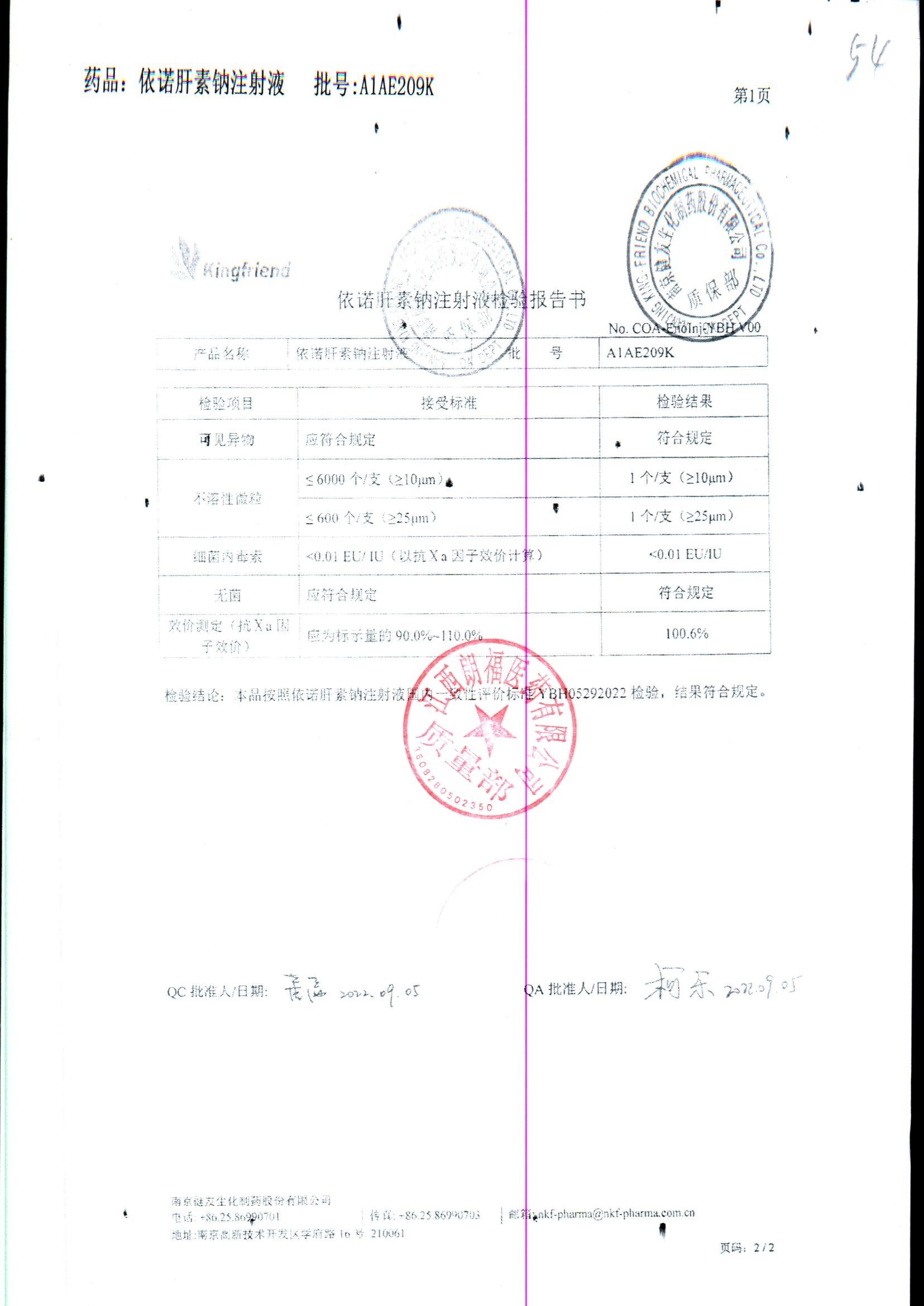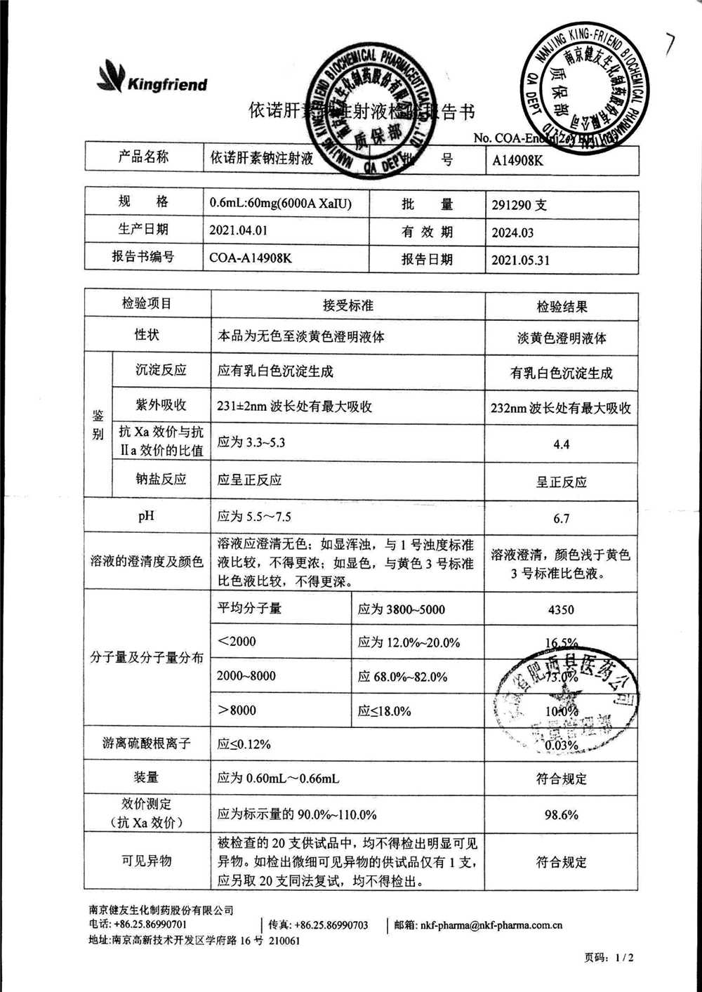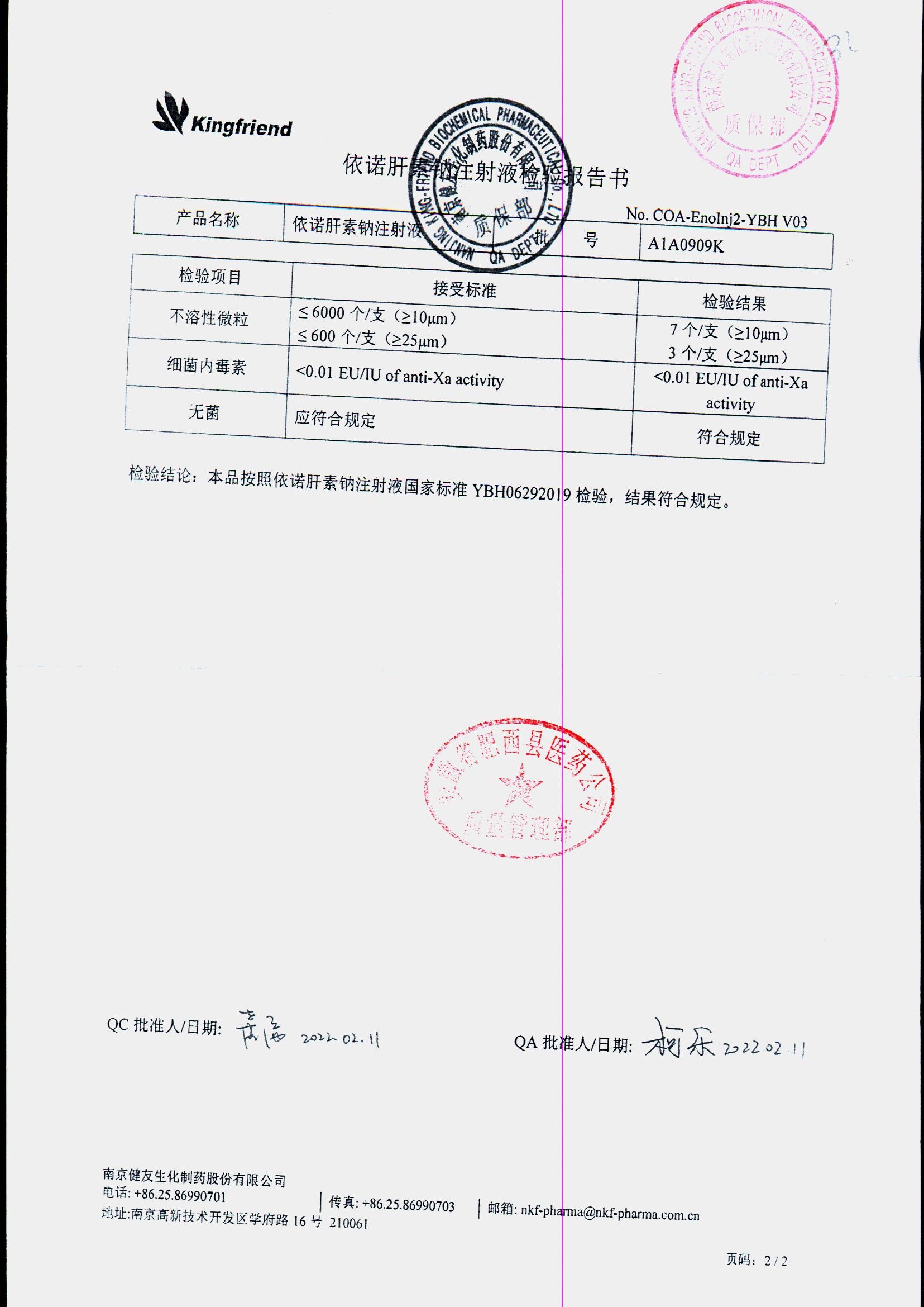 依诺肝素钠注射液 | 0.6ml:60mg | A1C607P2(2/2) | 查看详情 |