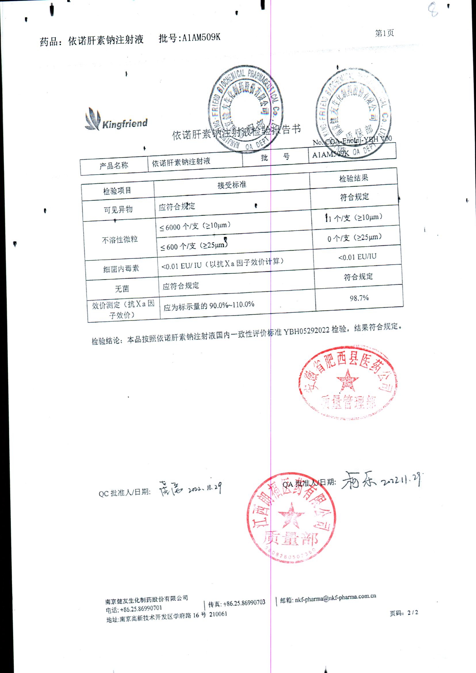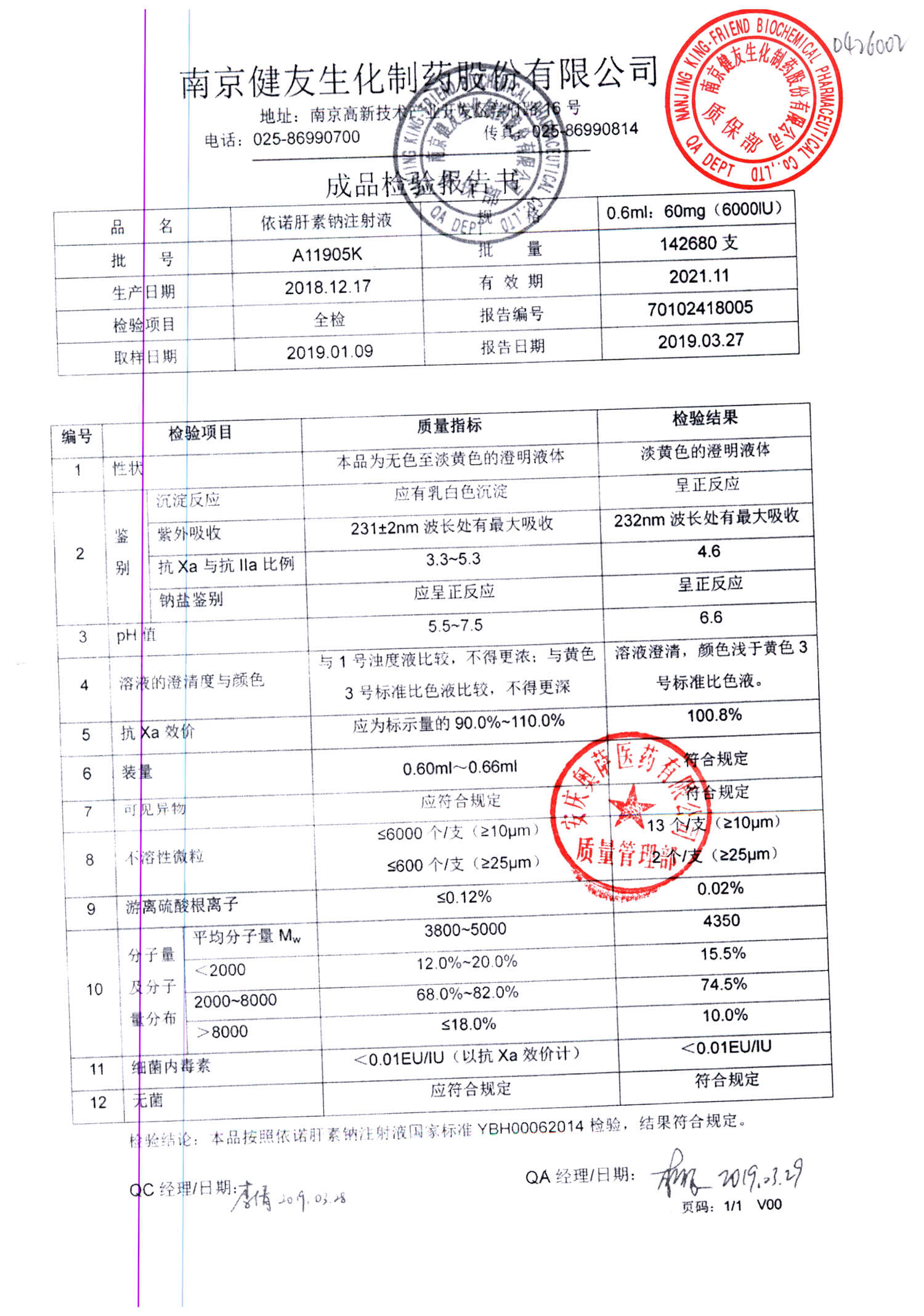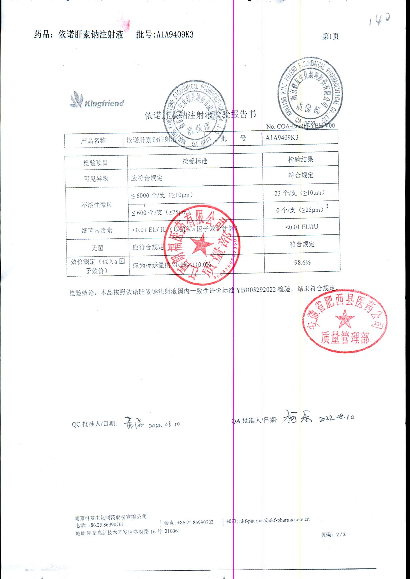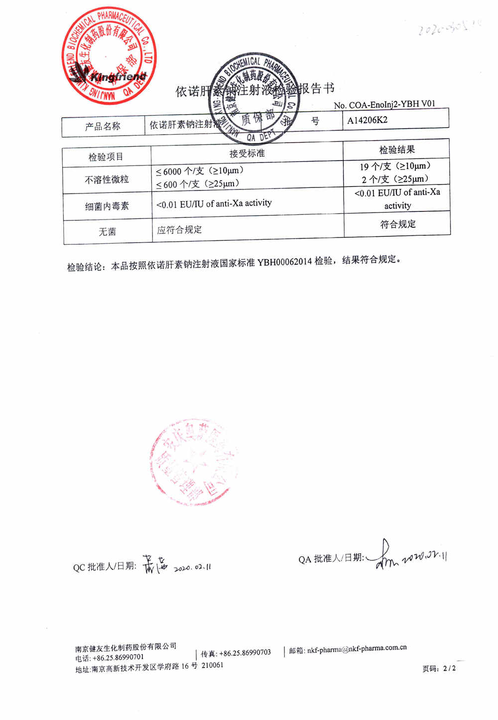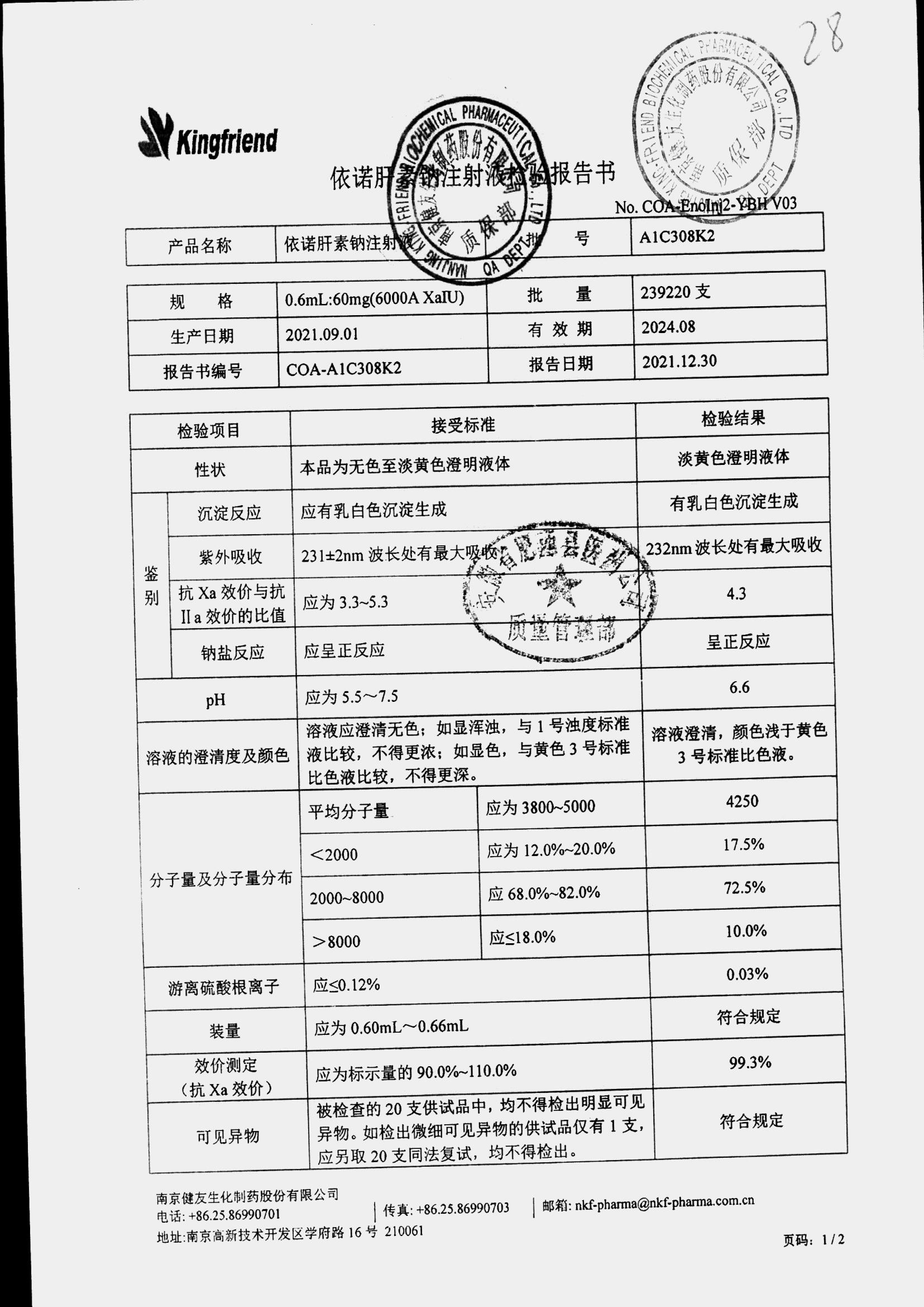 依诺肝素钠注射液 | 0.6ml:60mg | A1C607P2(2/2) | 查看详情 |