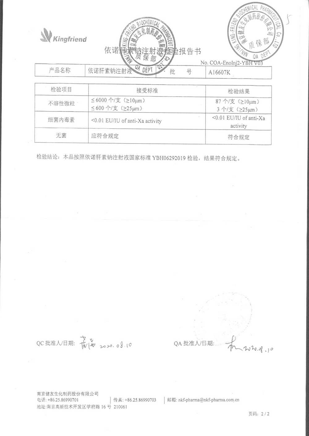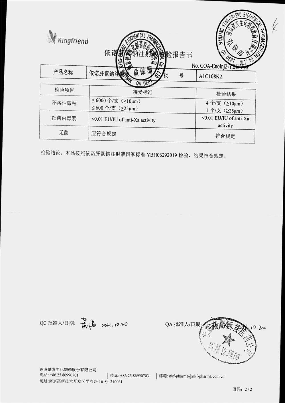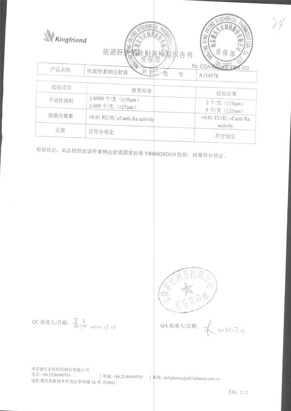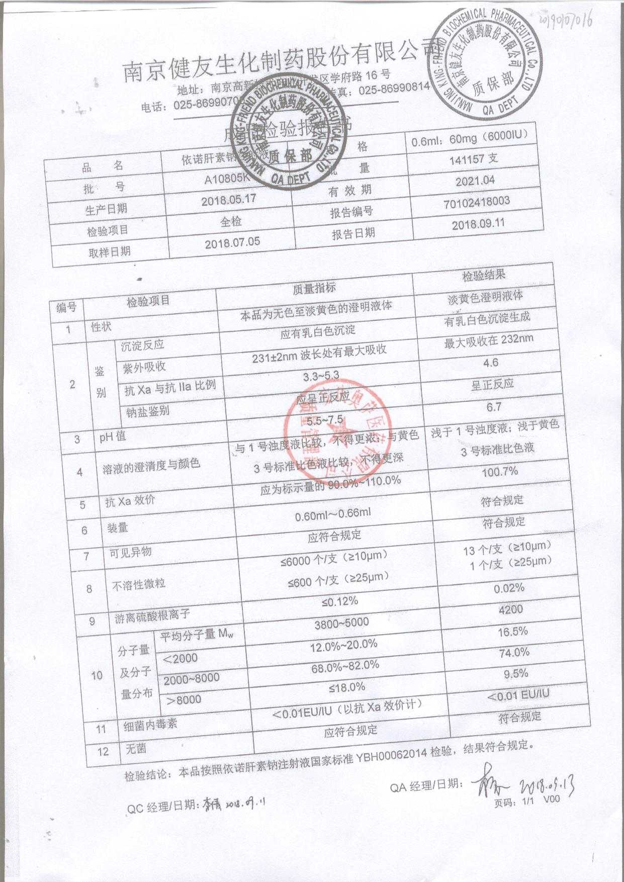 依诺肝素钠注射液 | 0.6ml:60mg | A1C607P2(2/2) | 查看详情 |