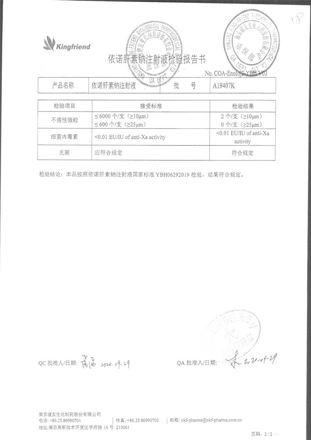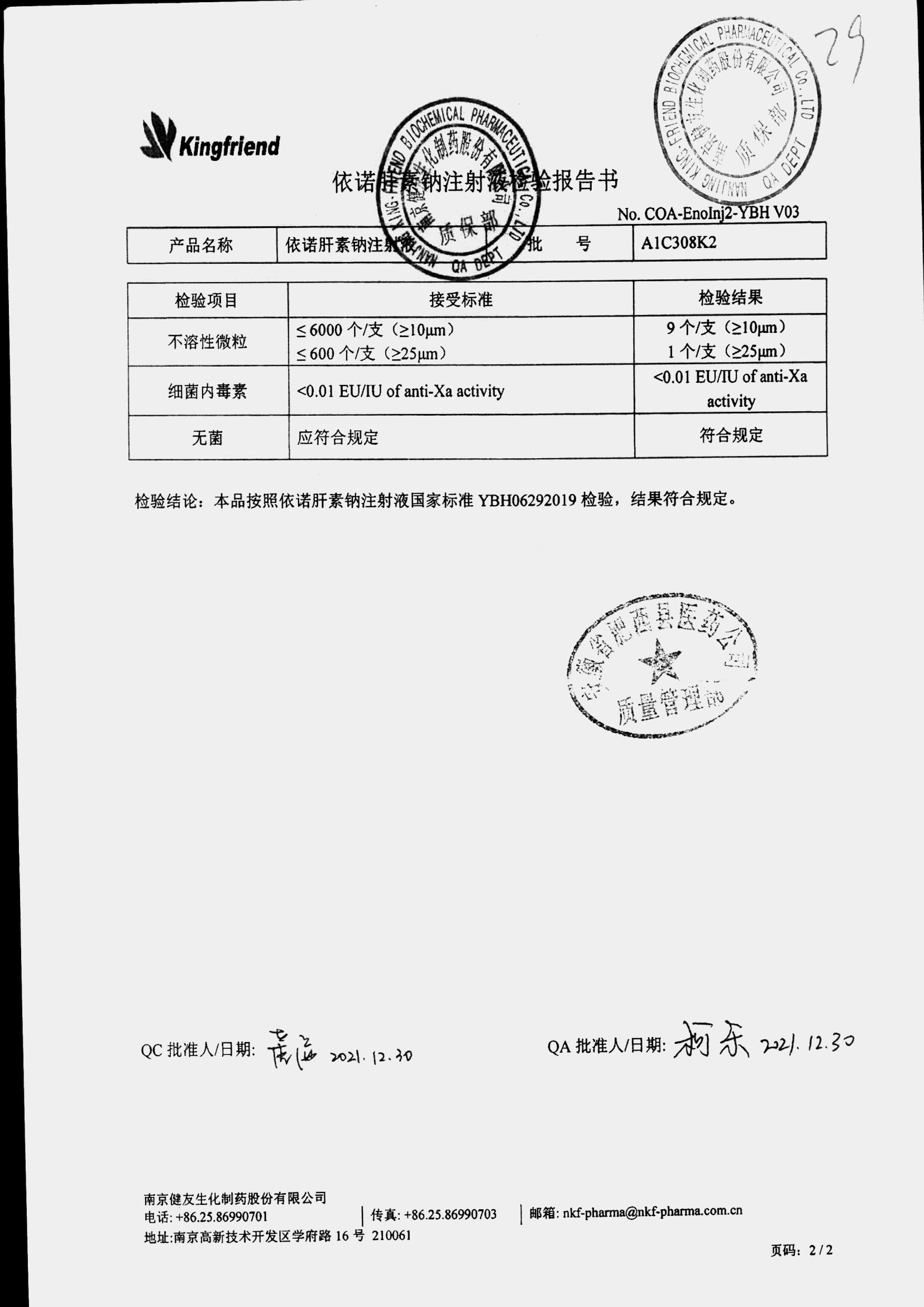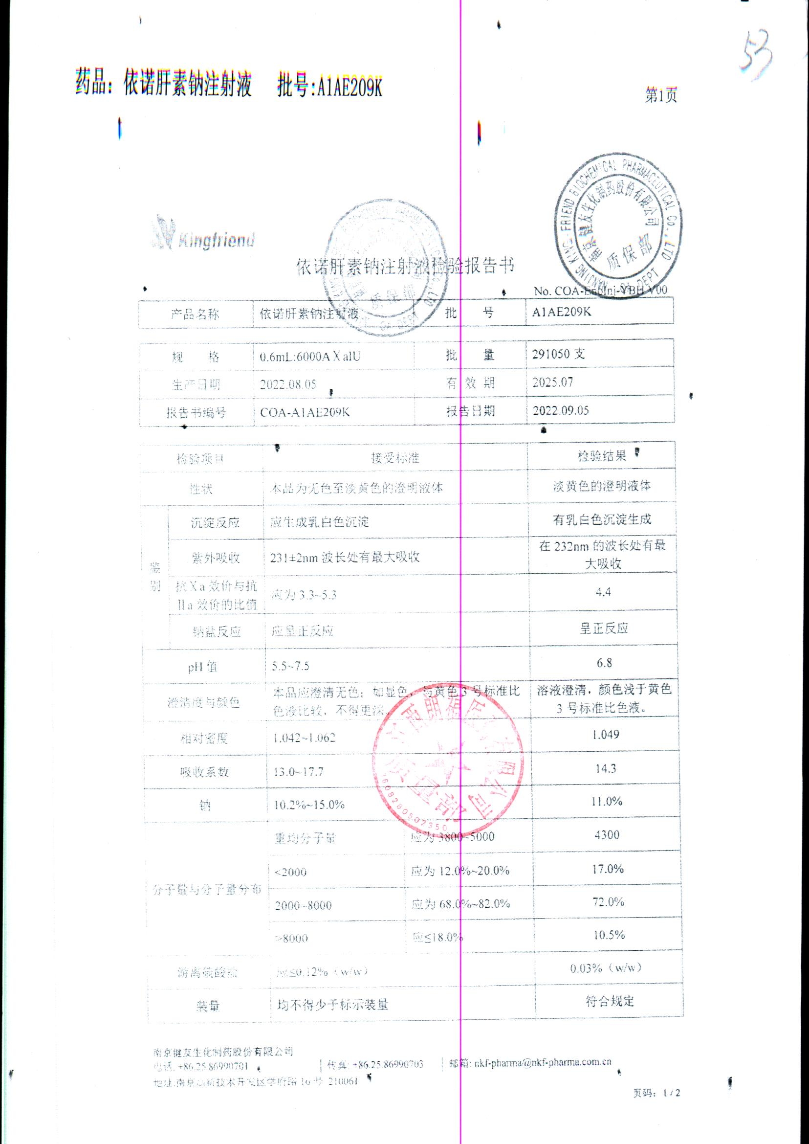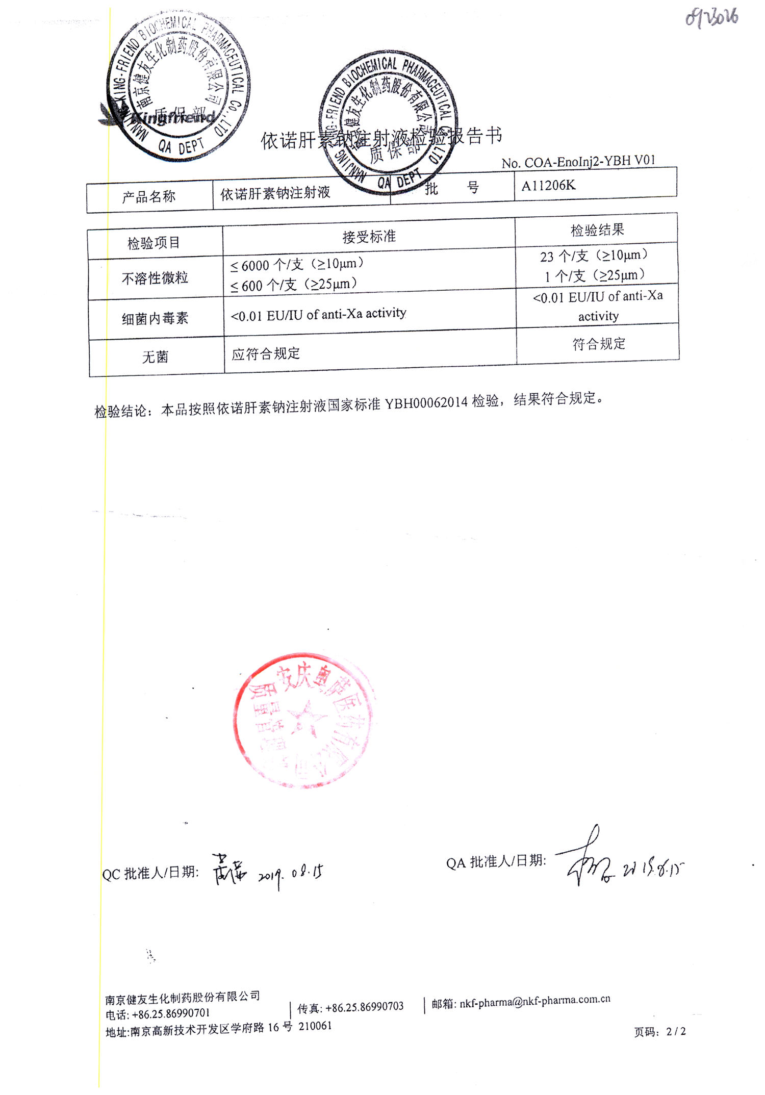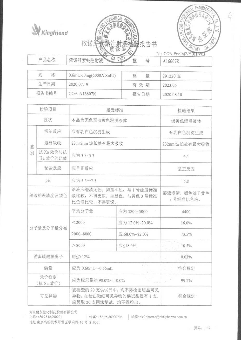 依诺肝素钠注射液 | 0.6ml:60mg | A1C607P2(2/2) | 查看详情 |
