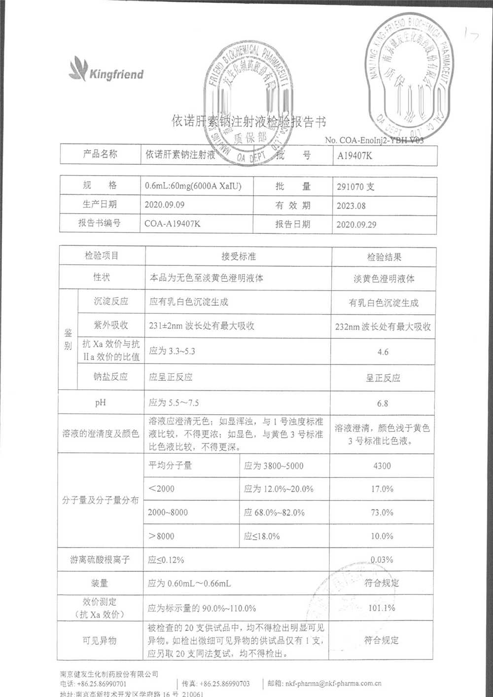 依诺肝素钠注射液 | 0.6ml:60mg | A16607K(2/2) | 查看详情 |