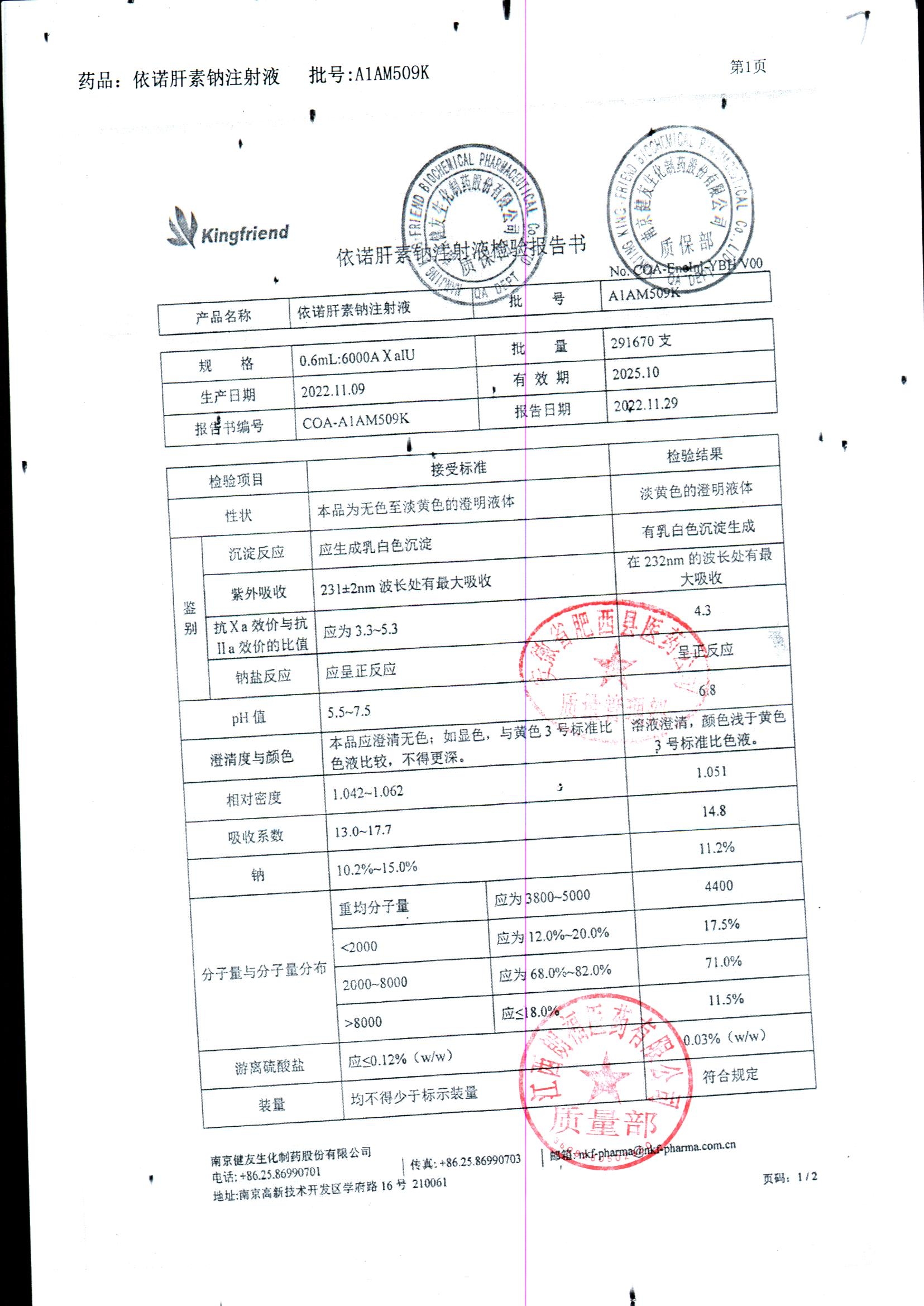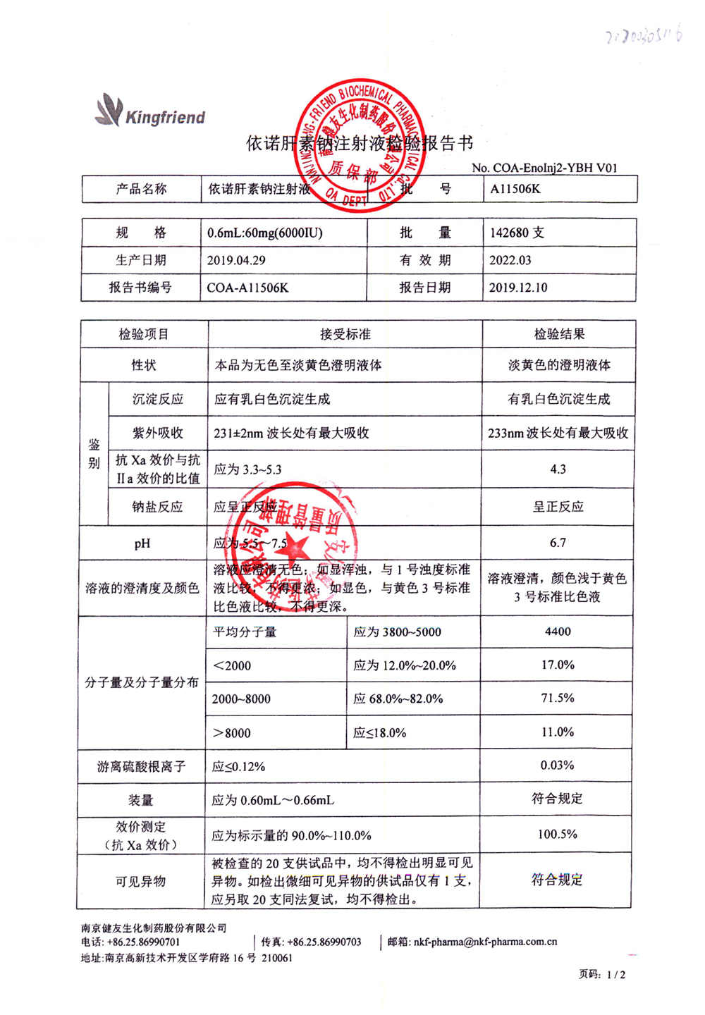 依诺肝素钠注射液 | 0.6ml:60mg | A11506K(2/2) | 查看详情 |
