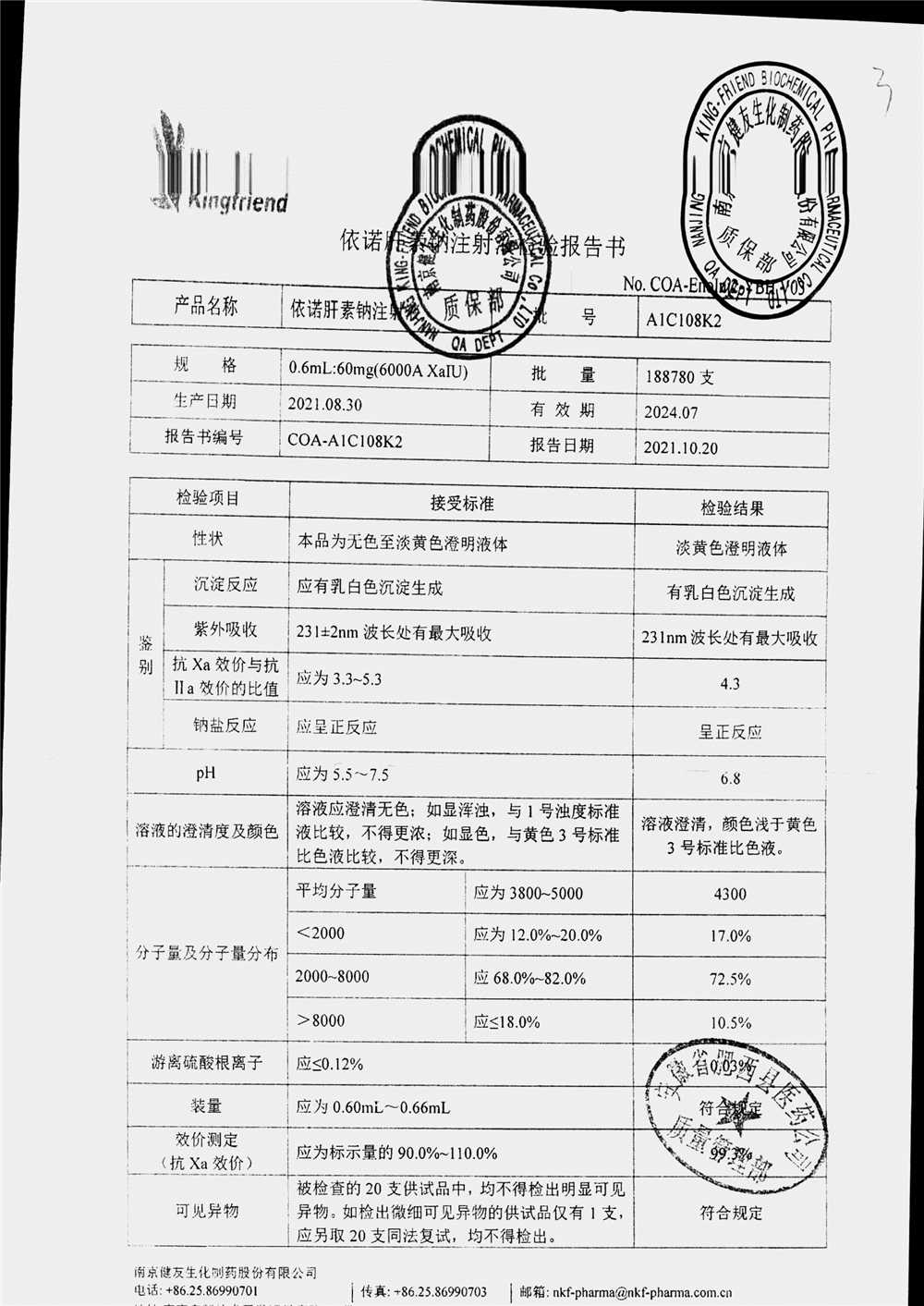 依诺肝素钠注射液 | 0.6ml:60mg | A19407k(2/2) | 查看详情 |