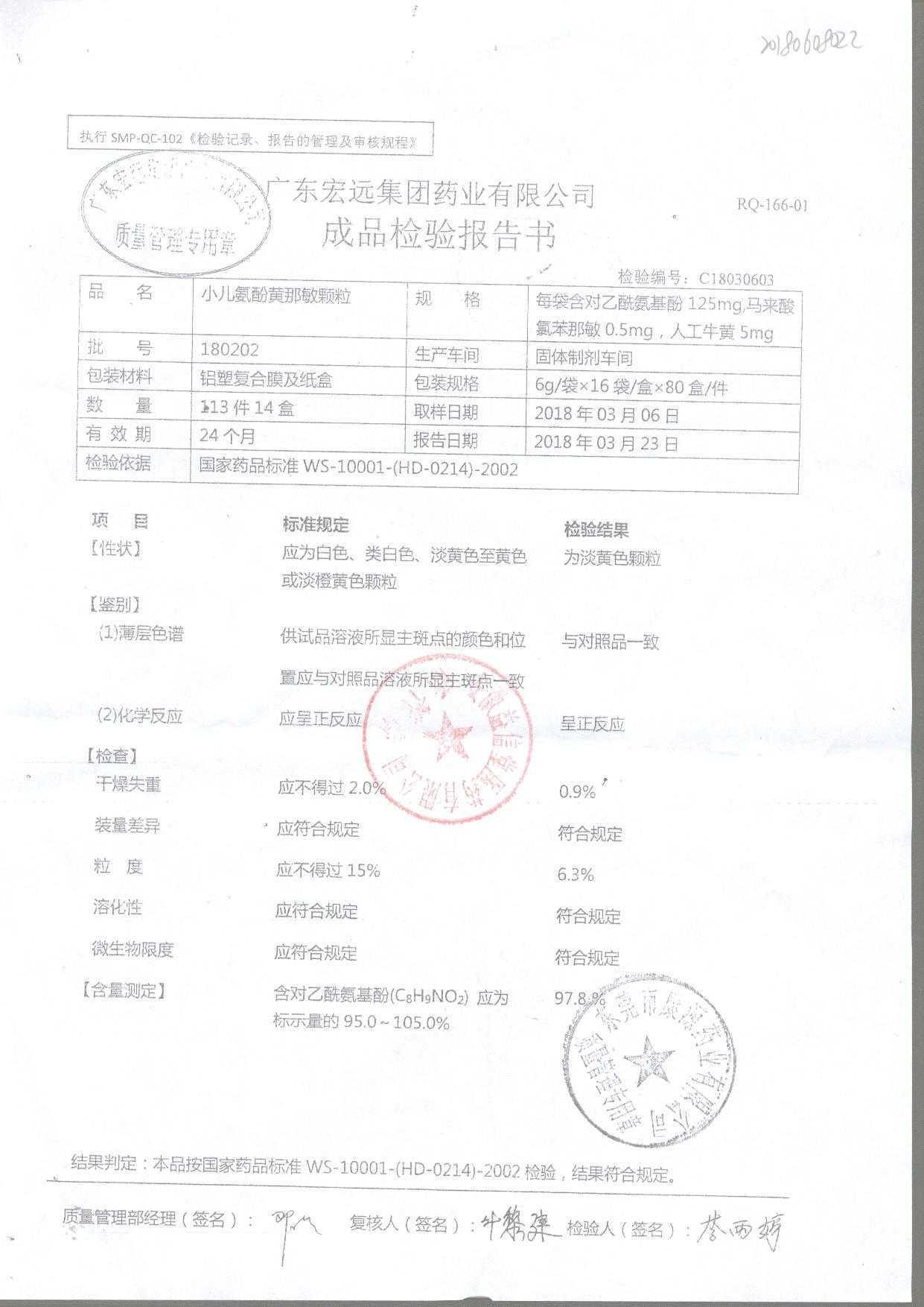 小儿氨酚黄那敏颗粒