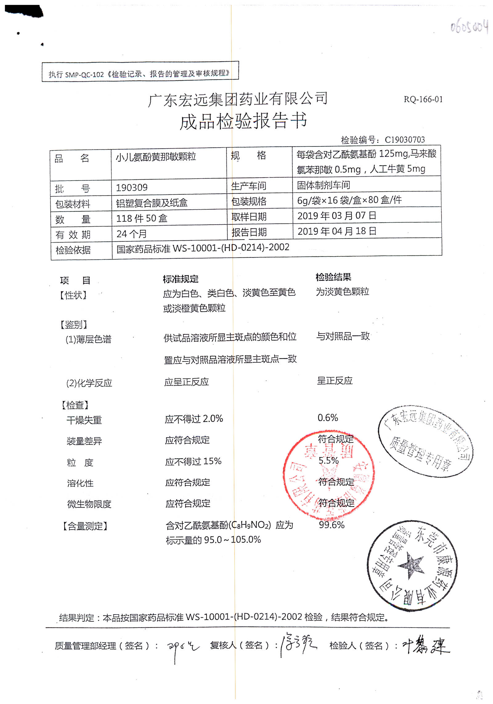 药检报告