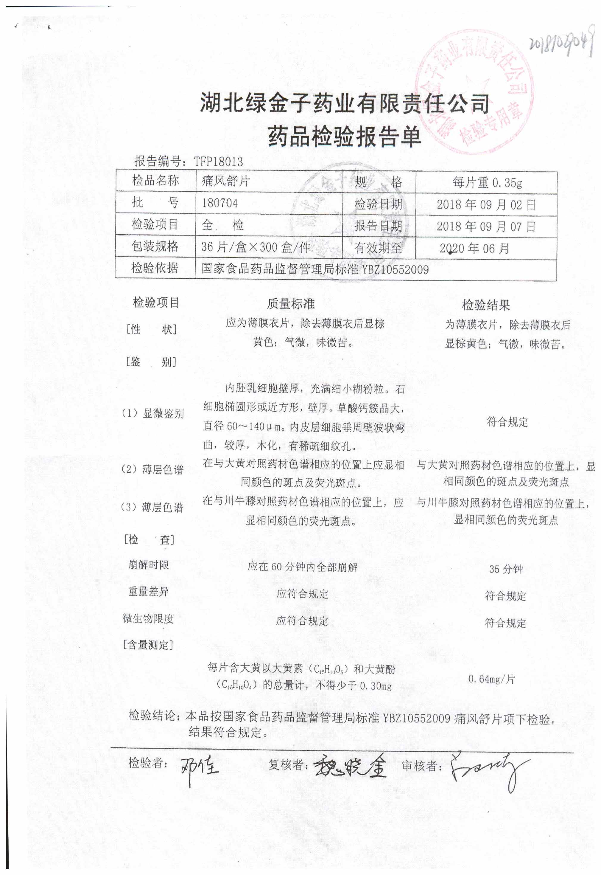 药检报告