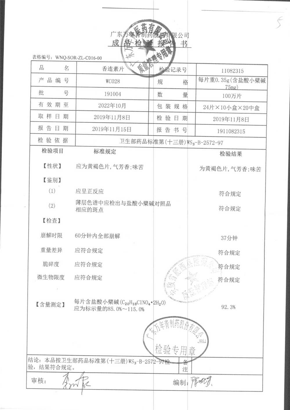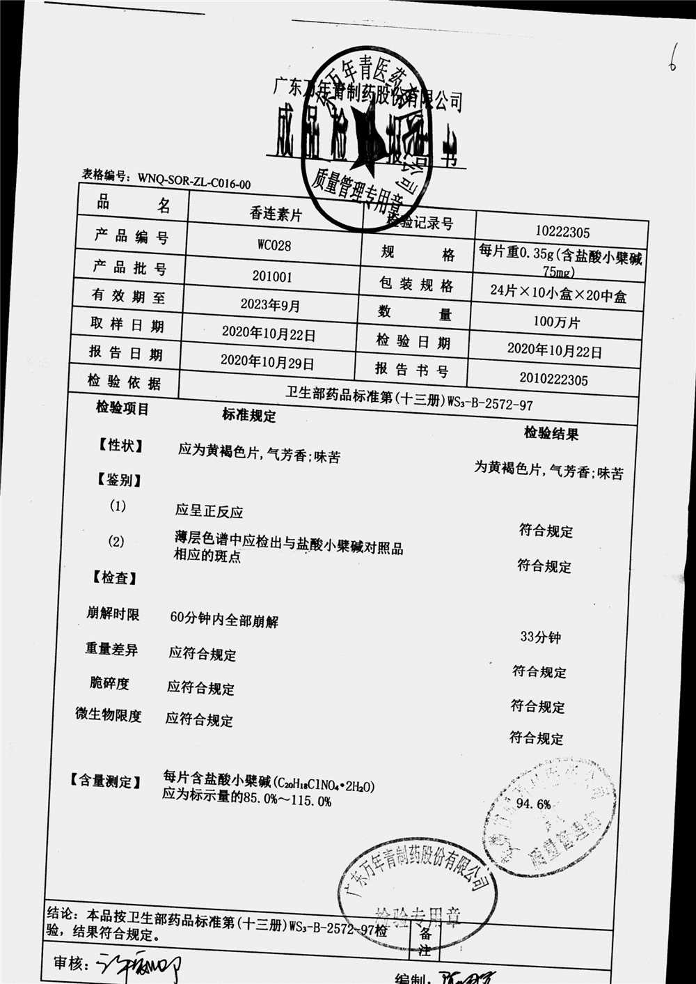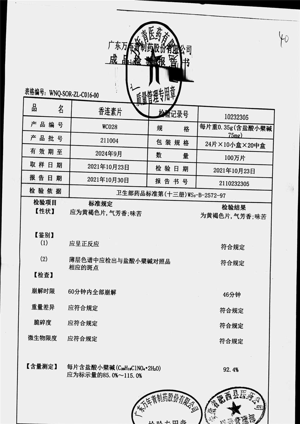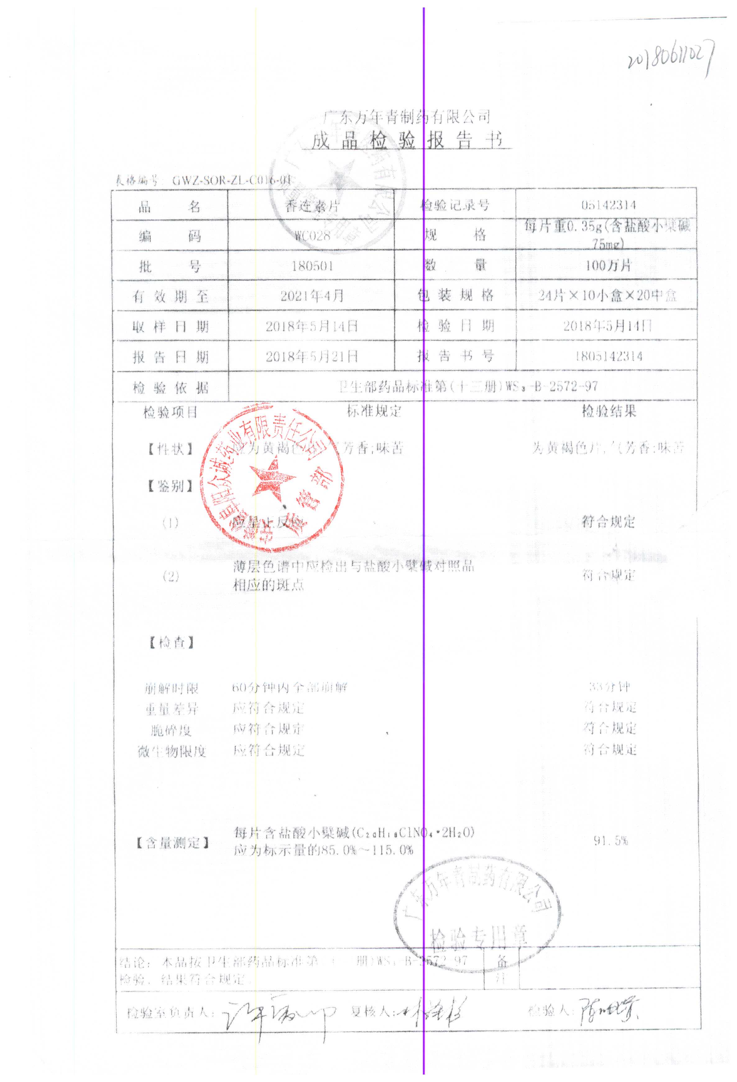 香连素片 | 0.35g*24片 | 190402 | 查看详情 |