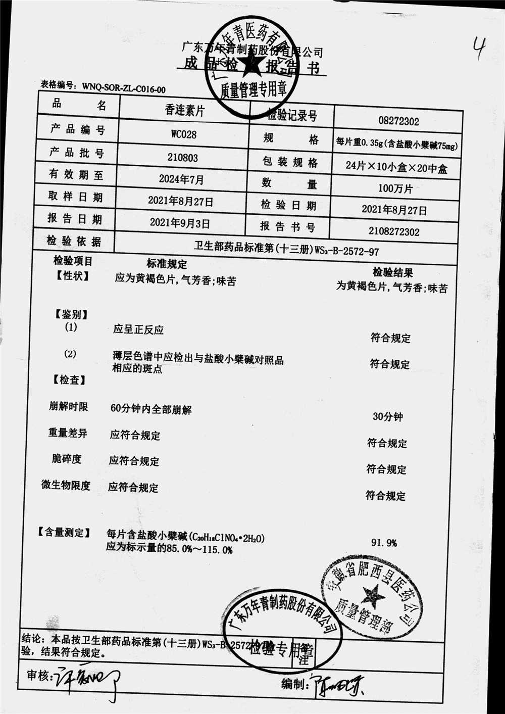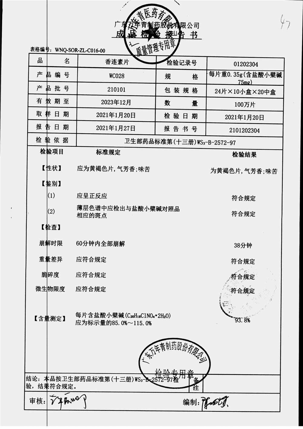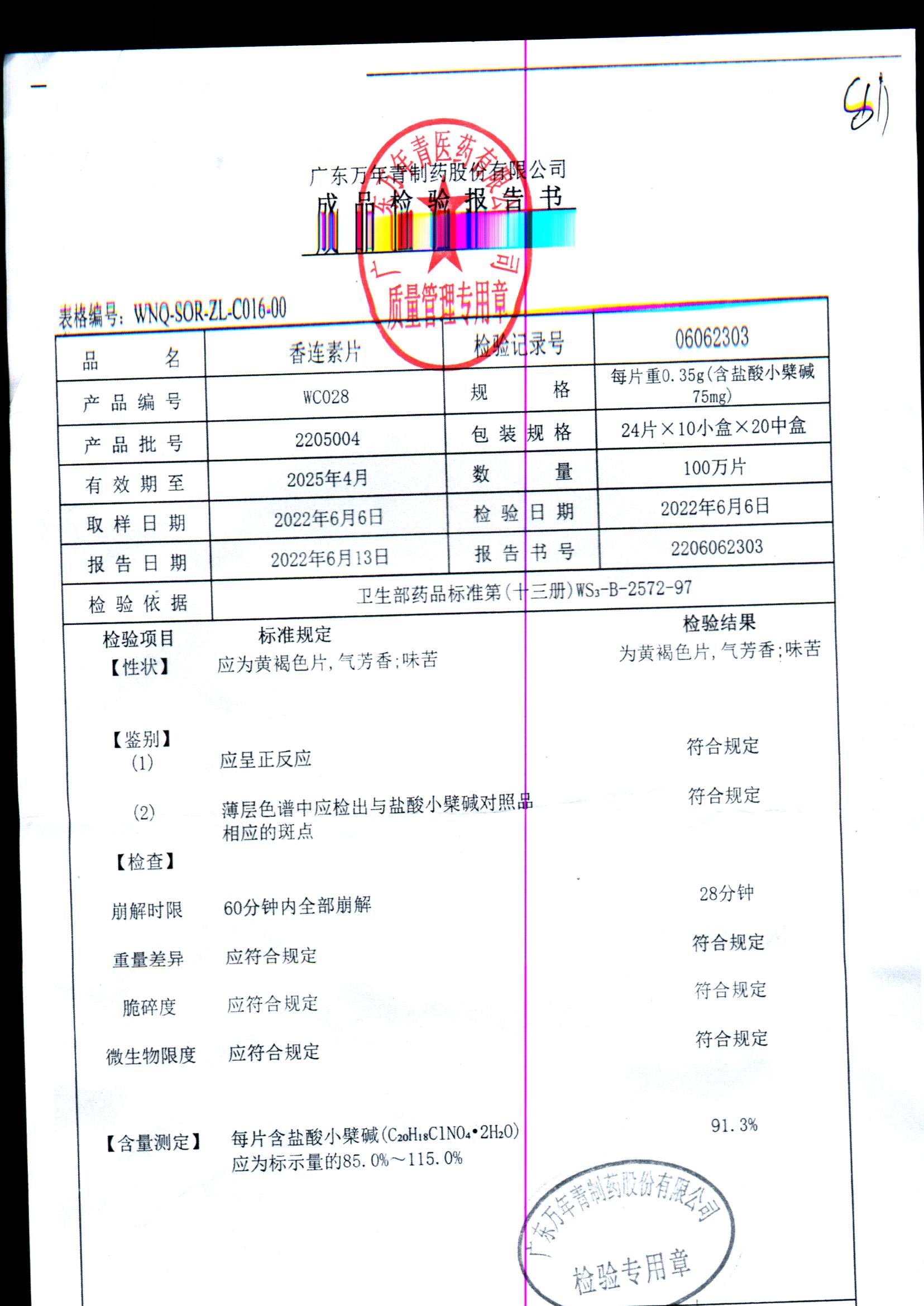 香连素片 | 0.35g*24片 | 210502 | 查看详情 |