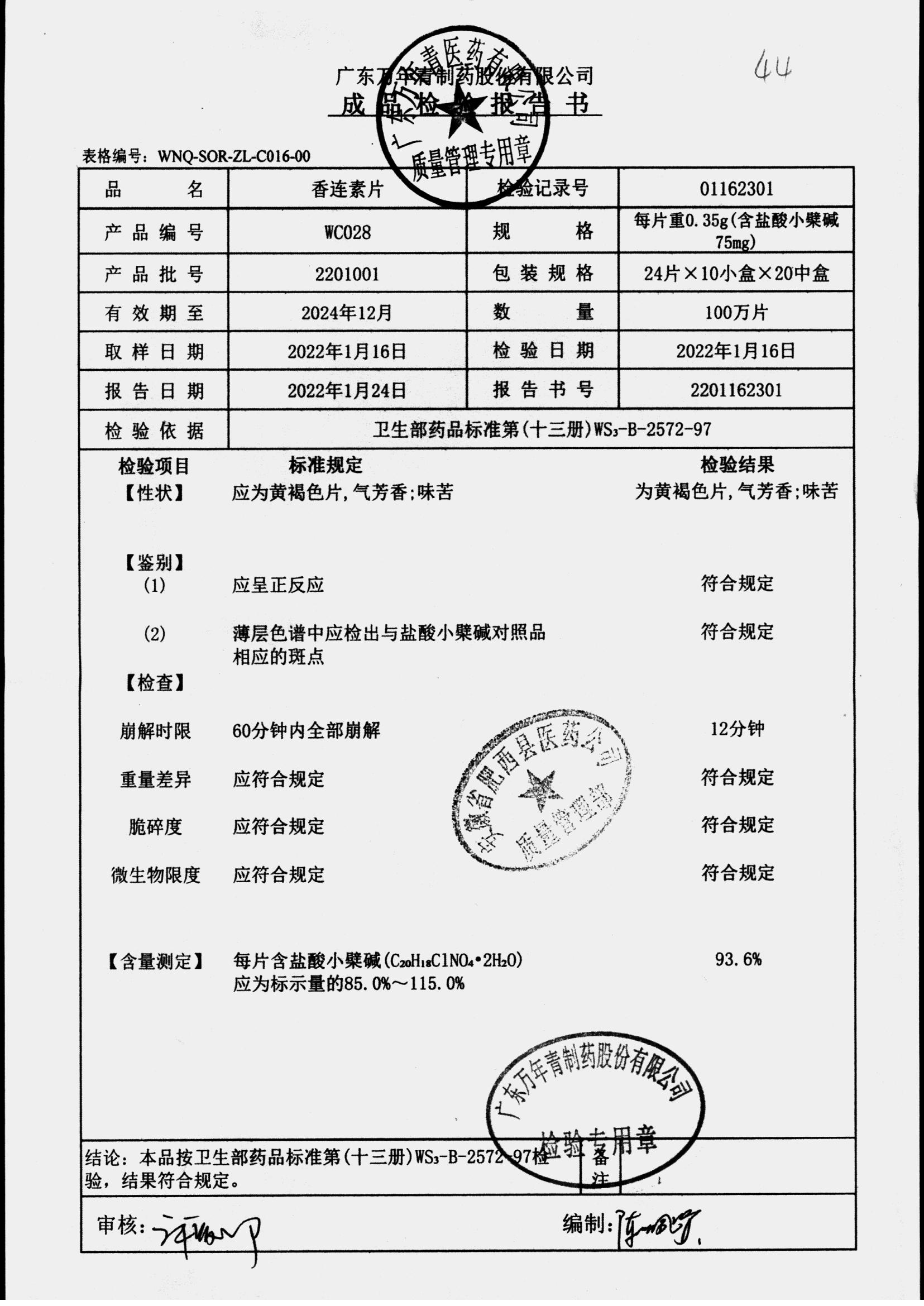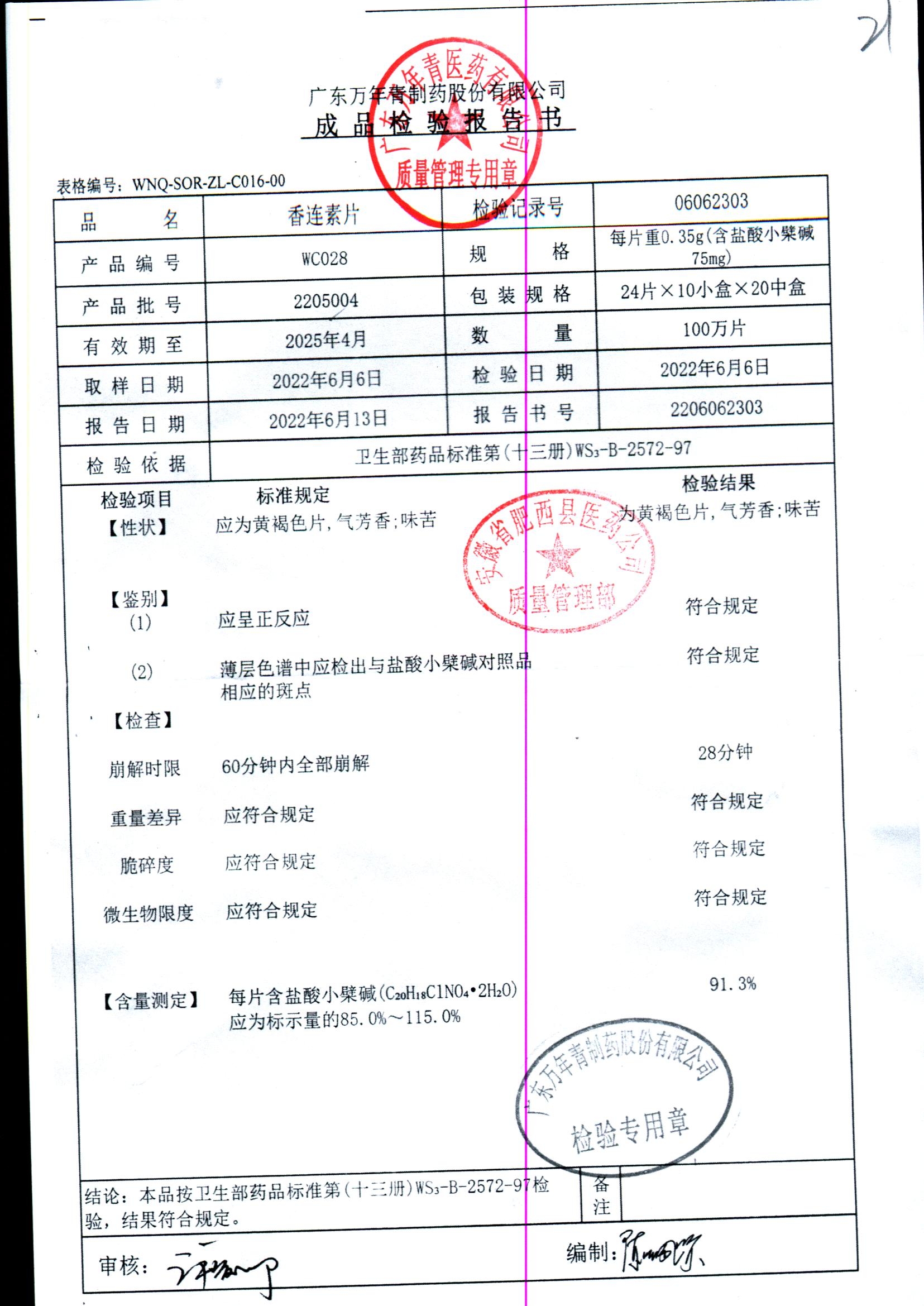 香连素片 | 0.35g*24片 | 211004 | 查看详情 |