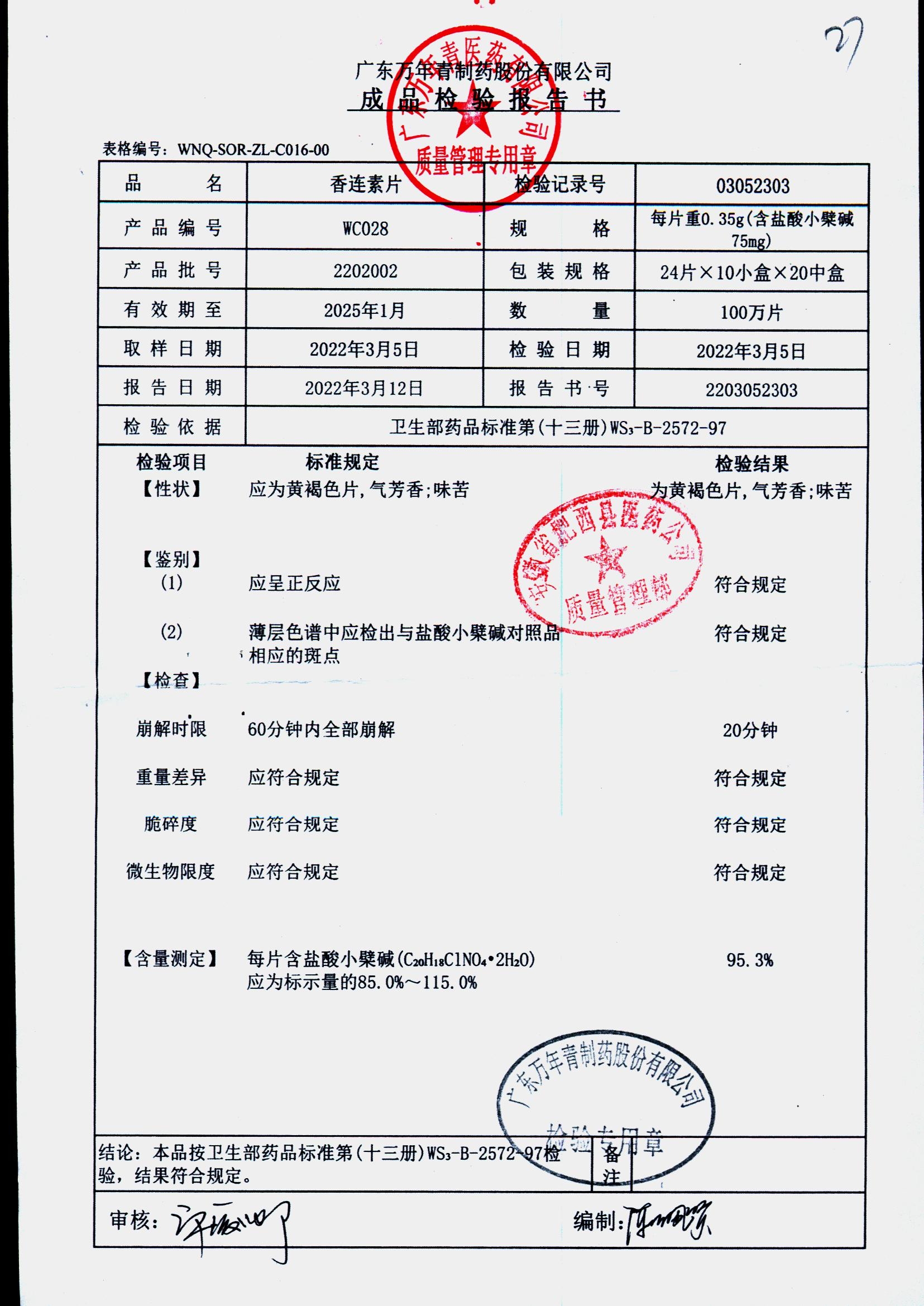 香连素片 | 0.35g*24片 | 2202002 | 查看详情 |