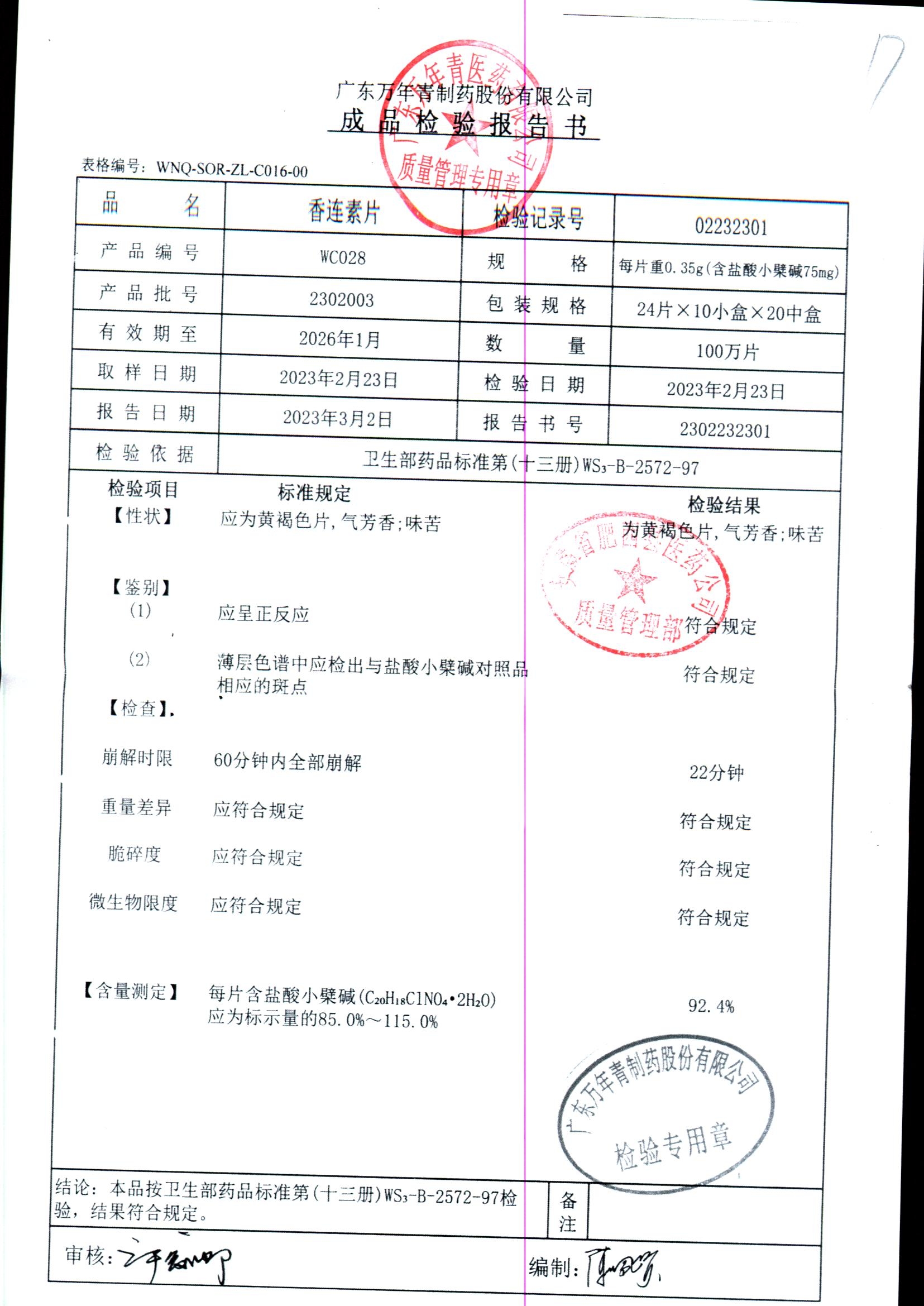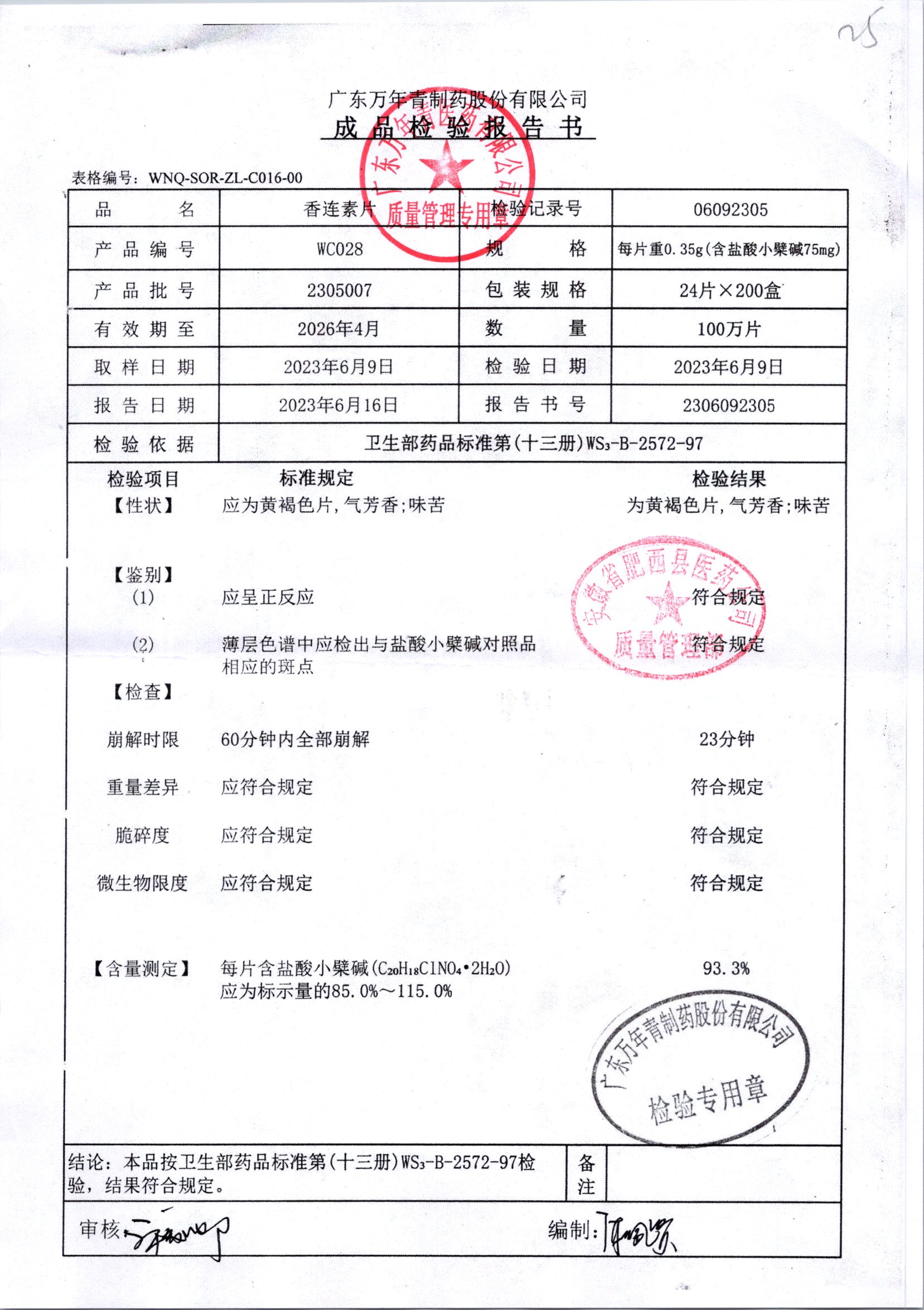 香连素片 | 0.35g*24片 | 2306008 | 查看详情 |