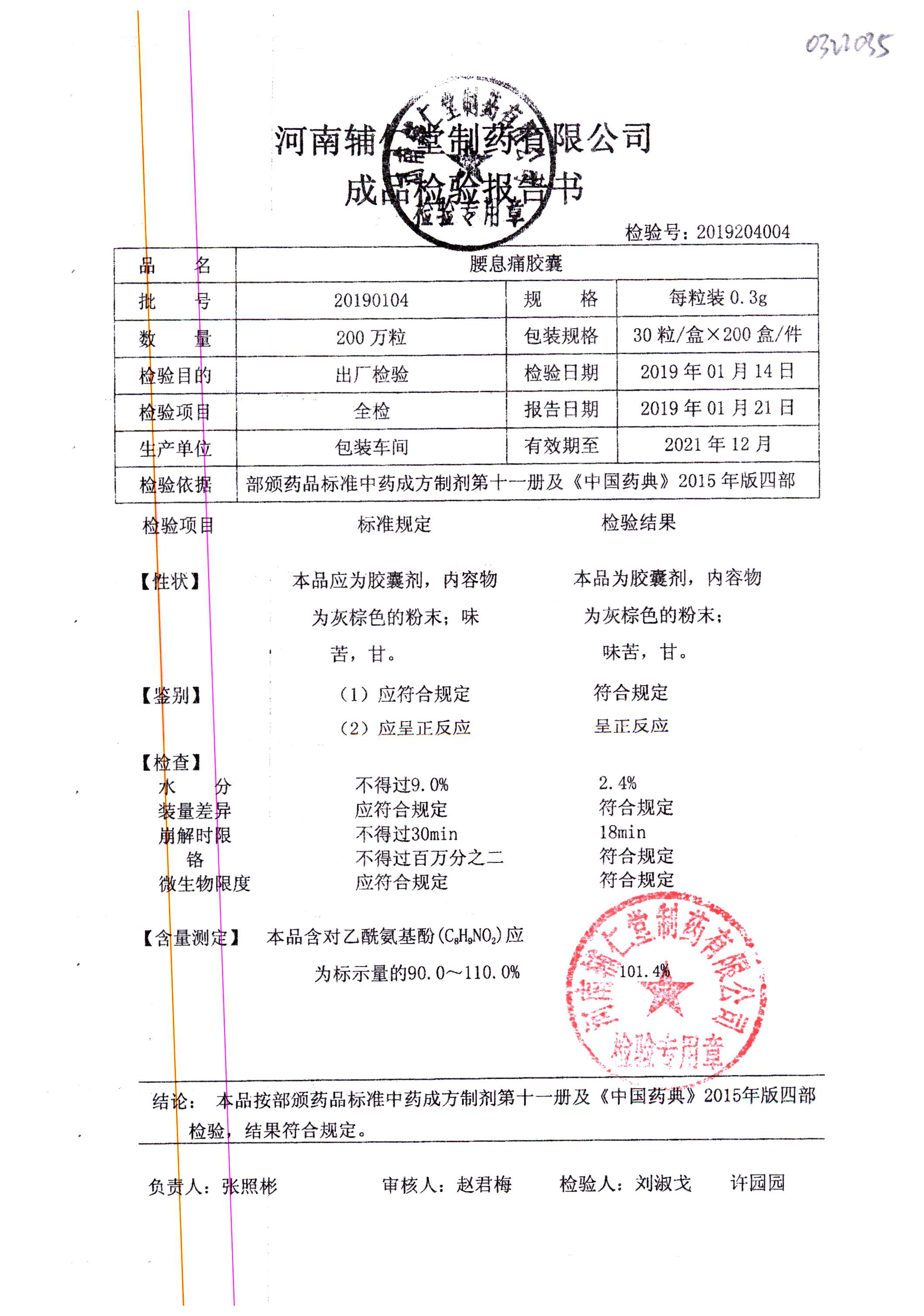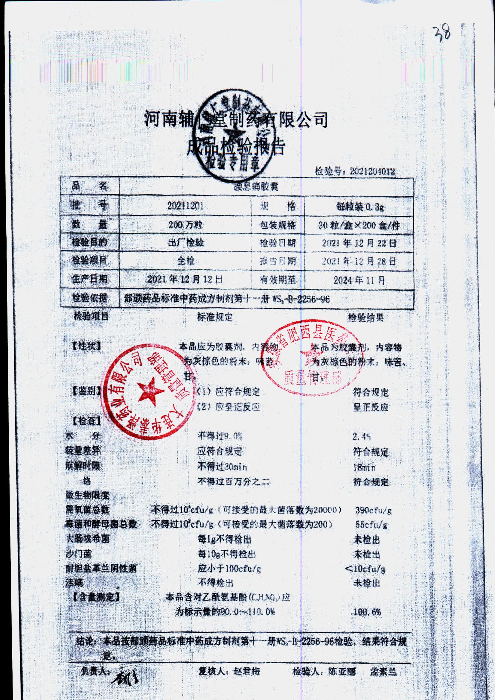 药检报告