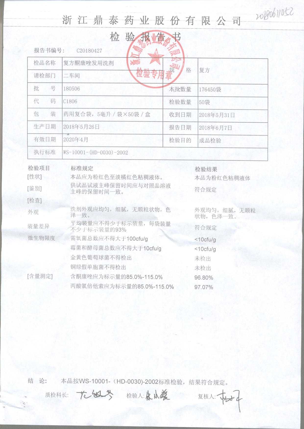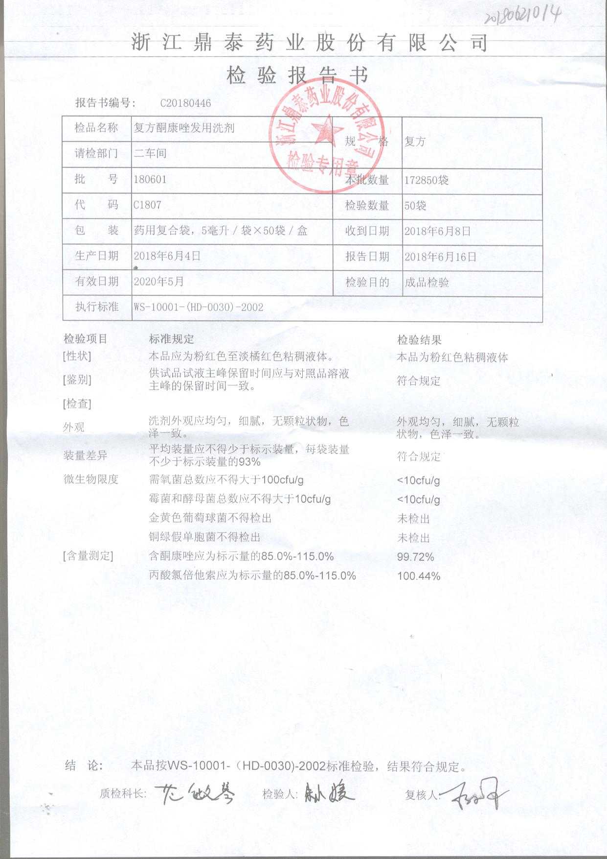 复方酮康唑发用洗剂 | 5ml | 180601 | 查看详情 |