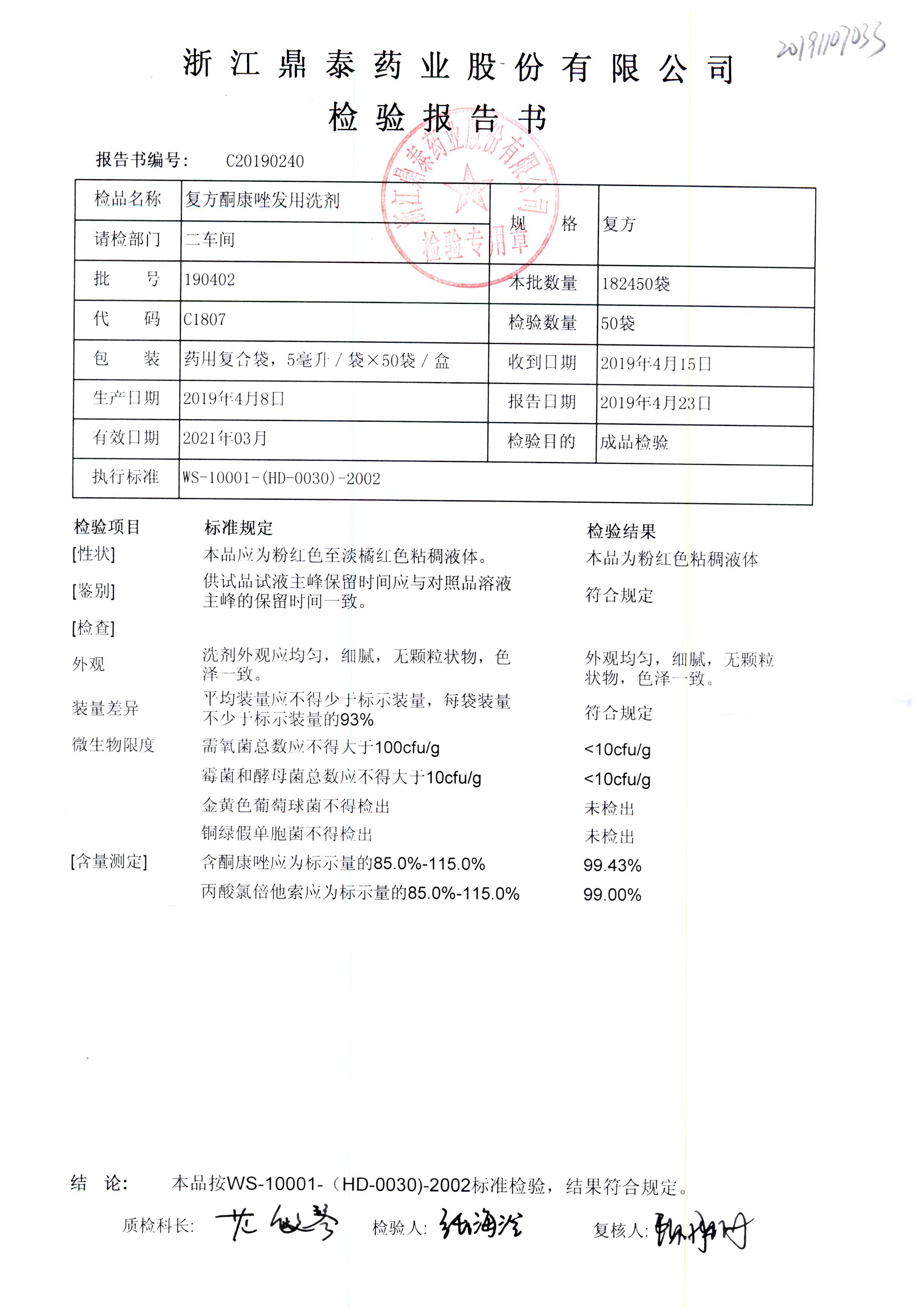 复方酮康唑发用洗剂 | 5ml | 190201 | 查看详情 |