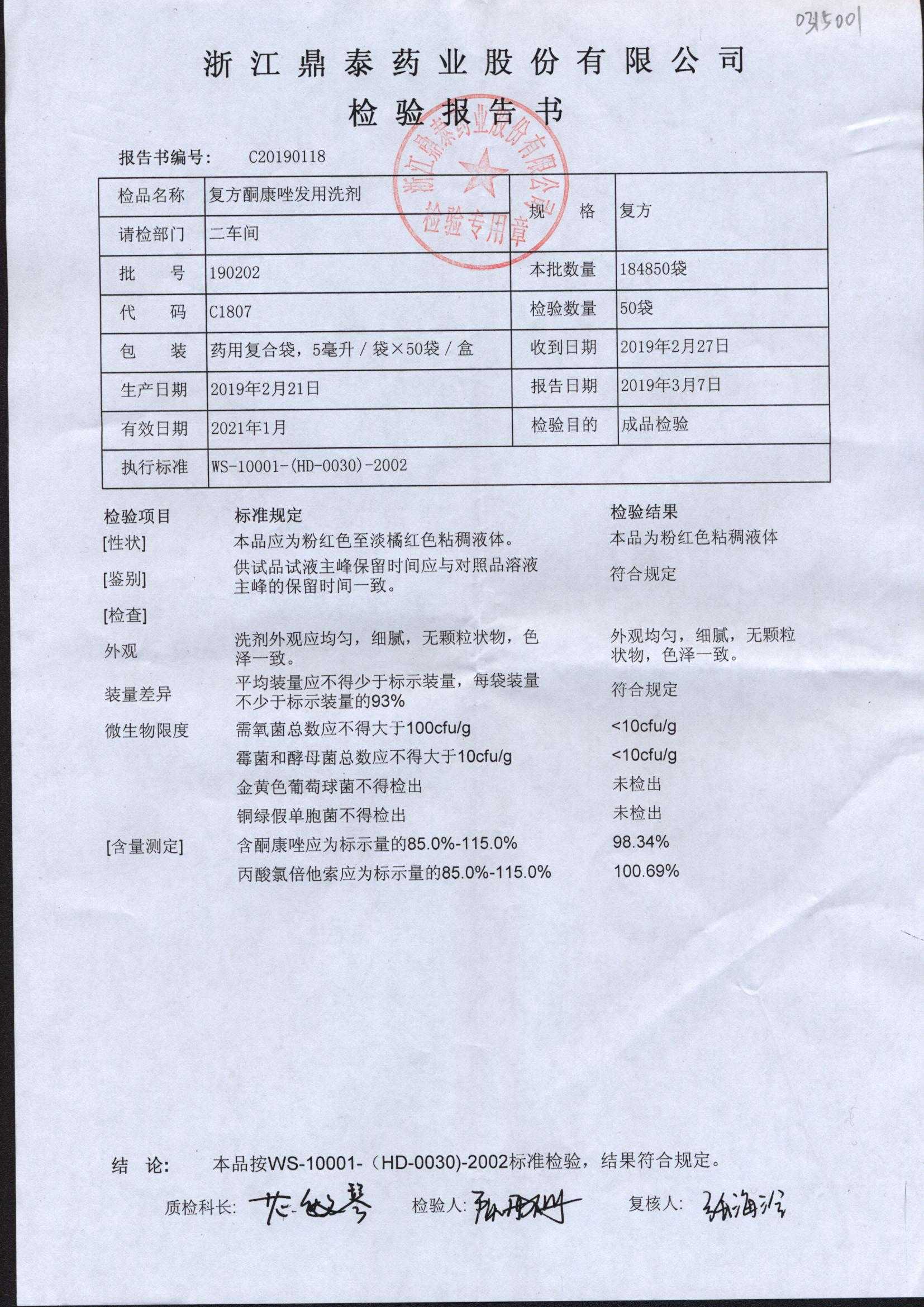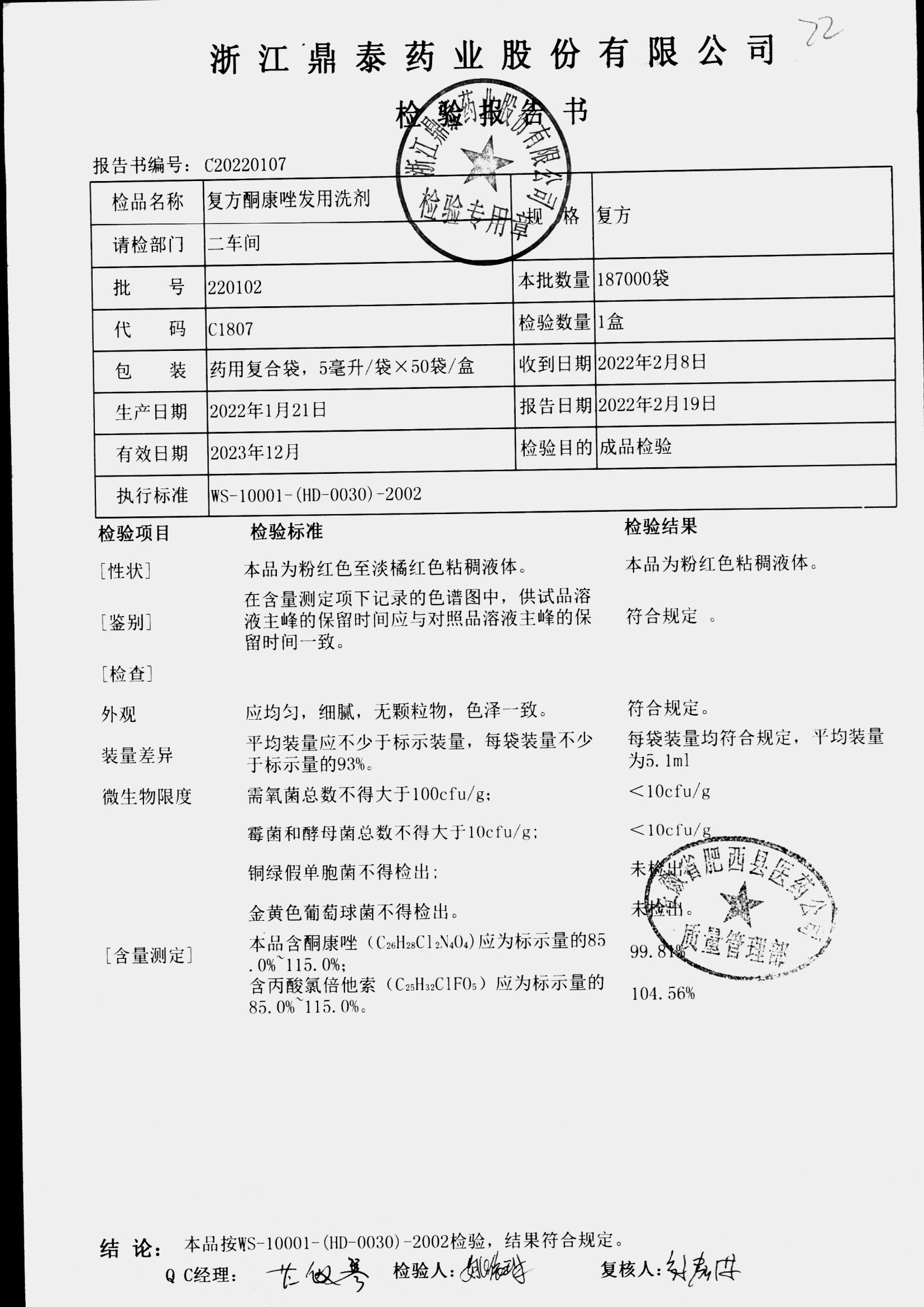 复方酮康唑发用洗剂 | 5ml | 210201 | 查看详情 |