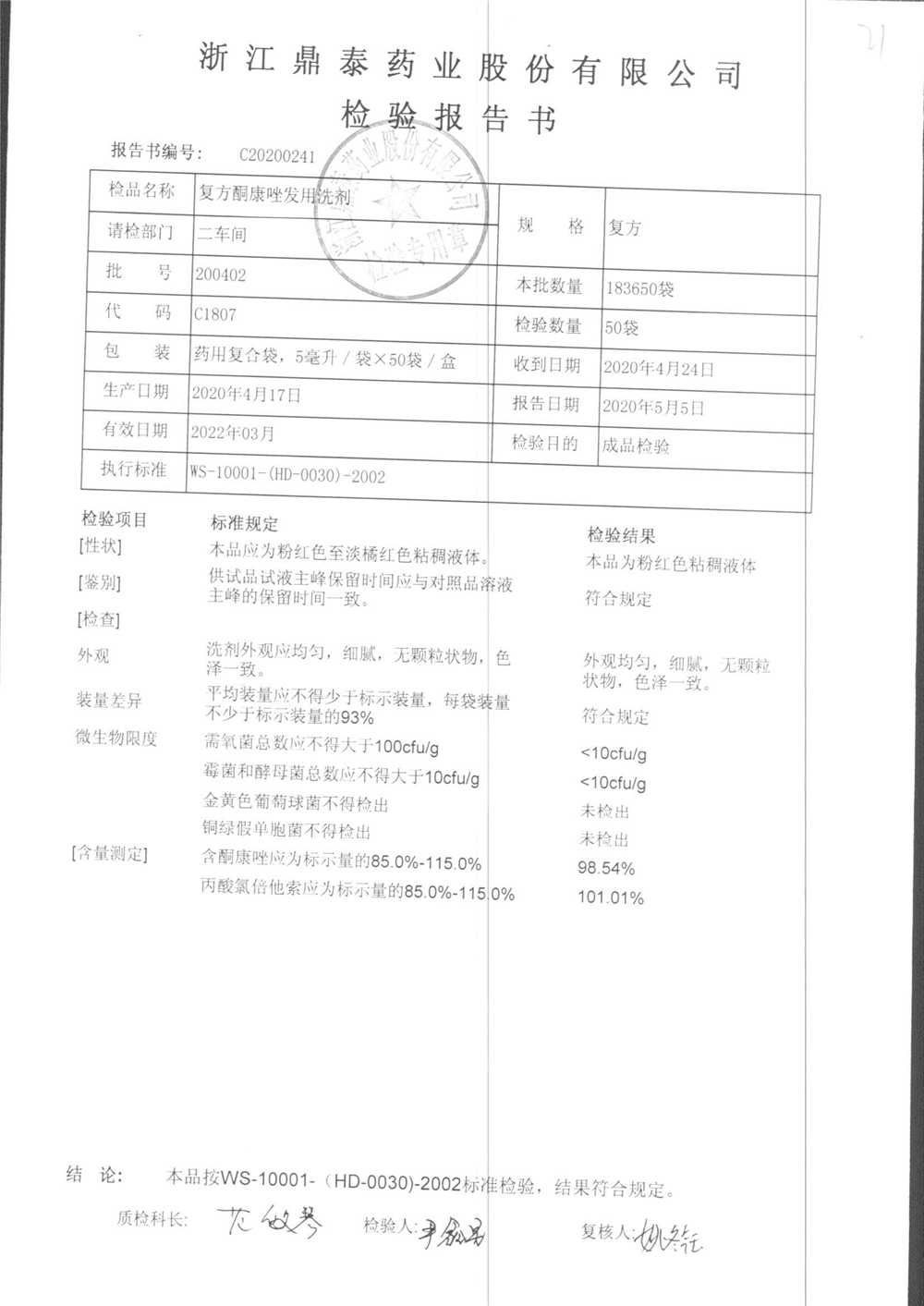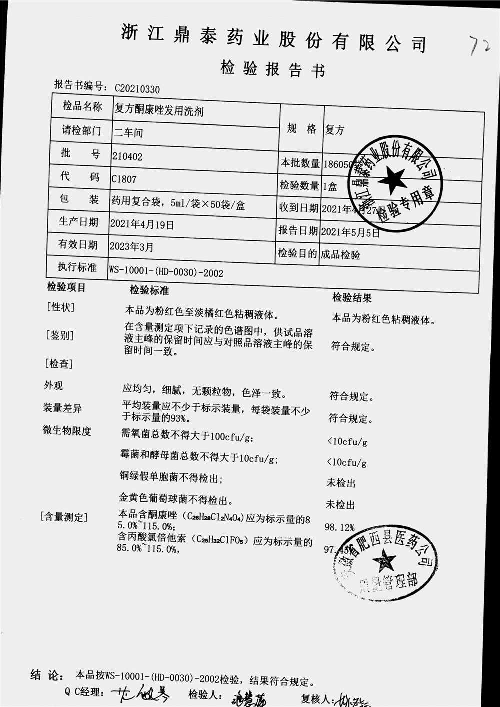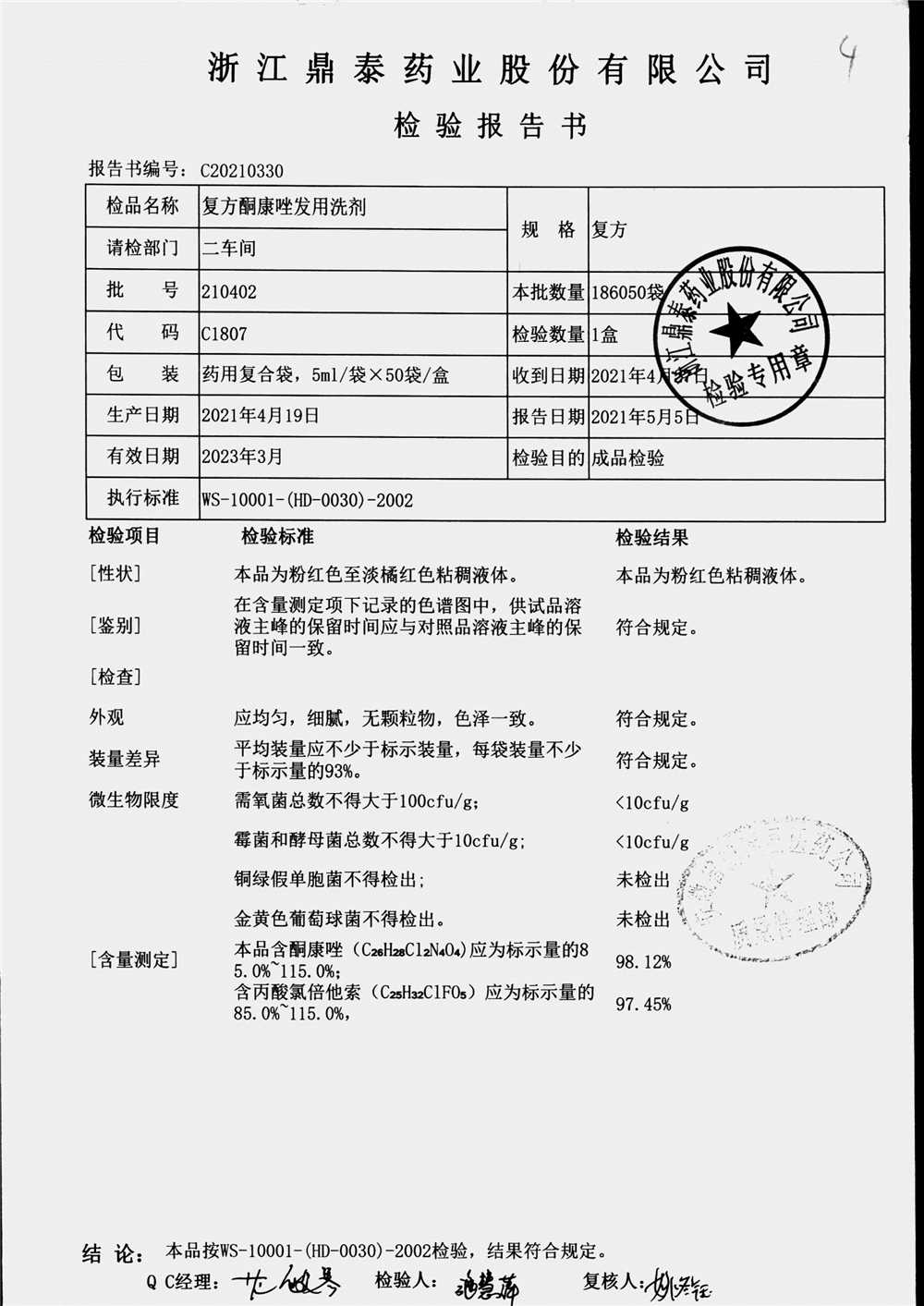 复方酮康唑发用洗剂 | 5ml | 210402 | 查看详情 |