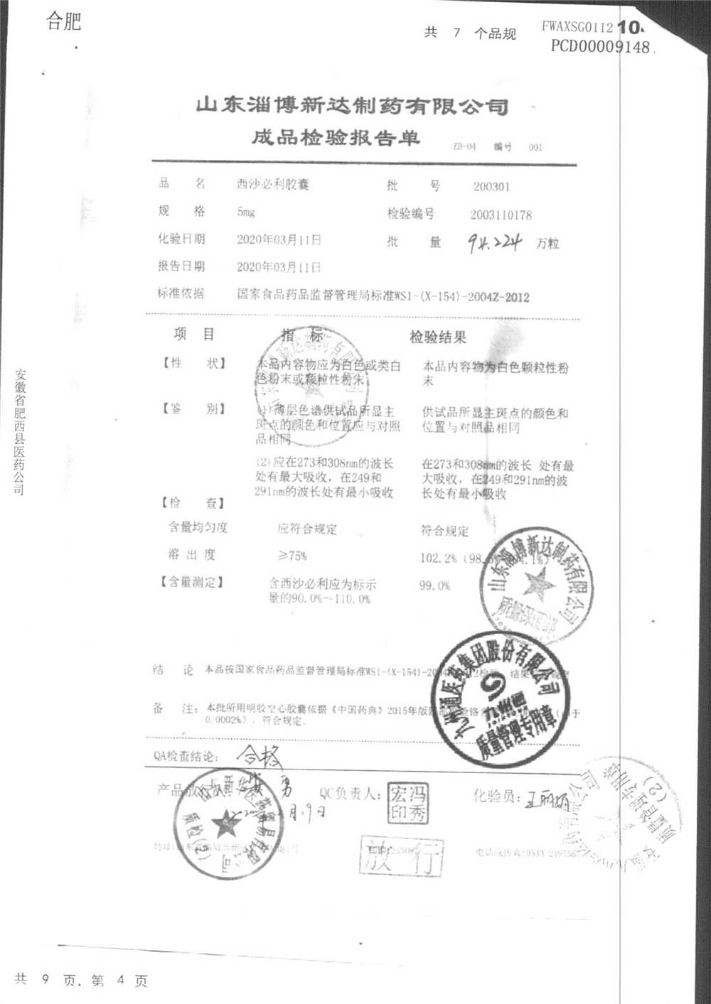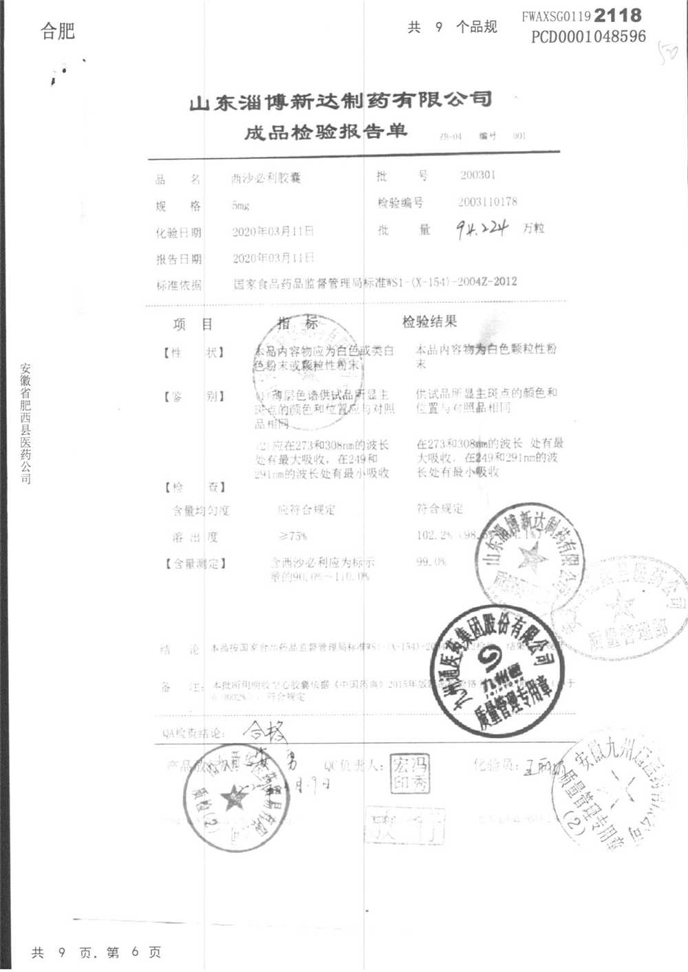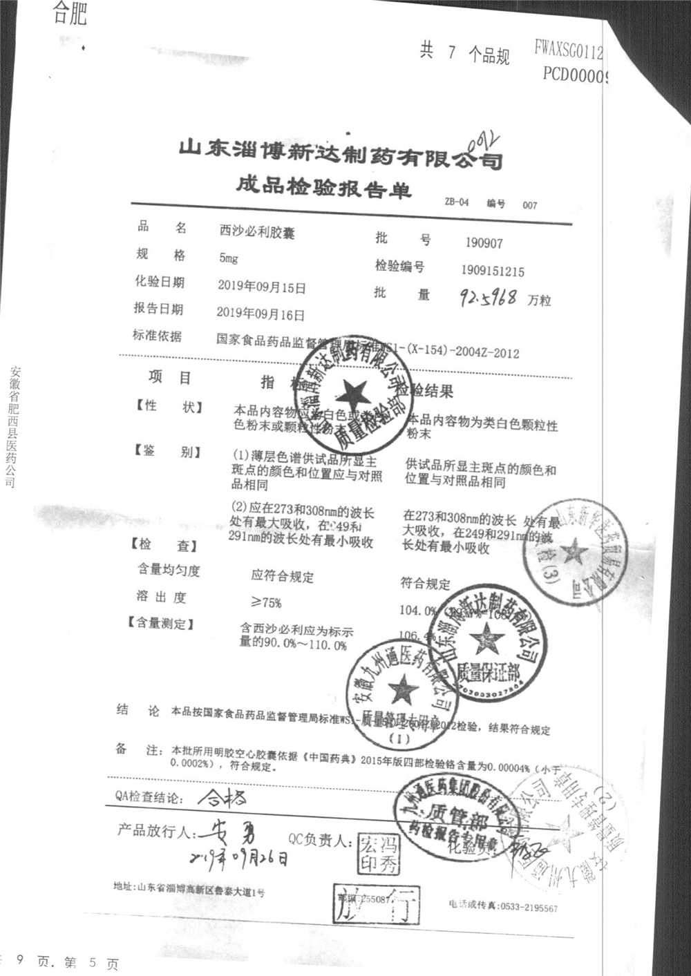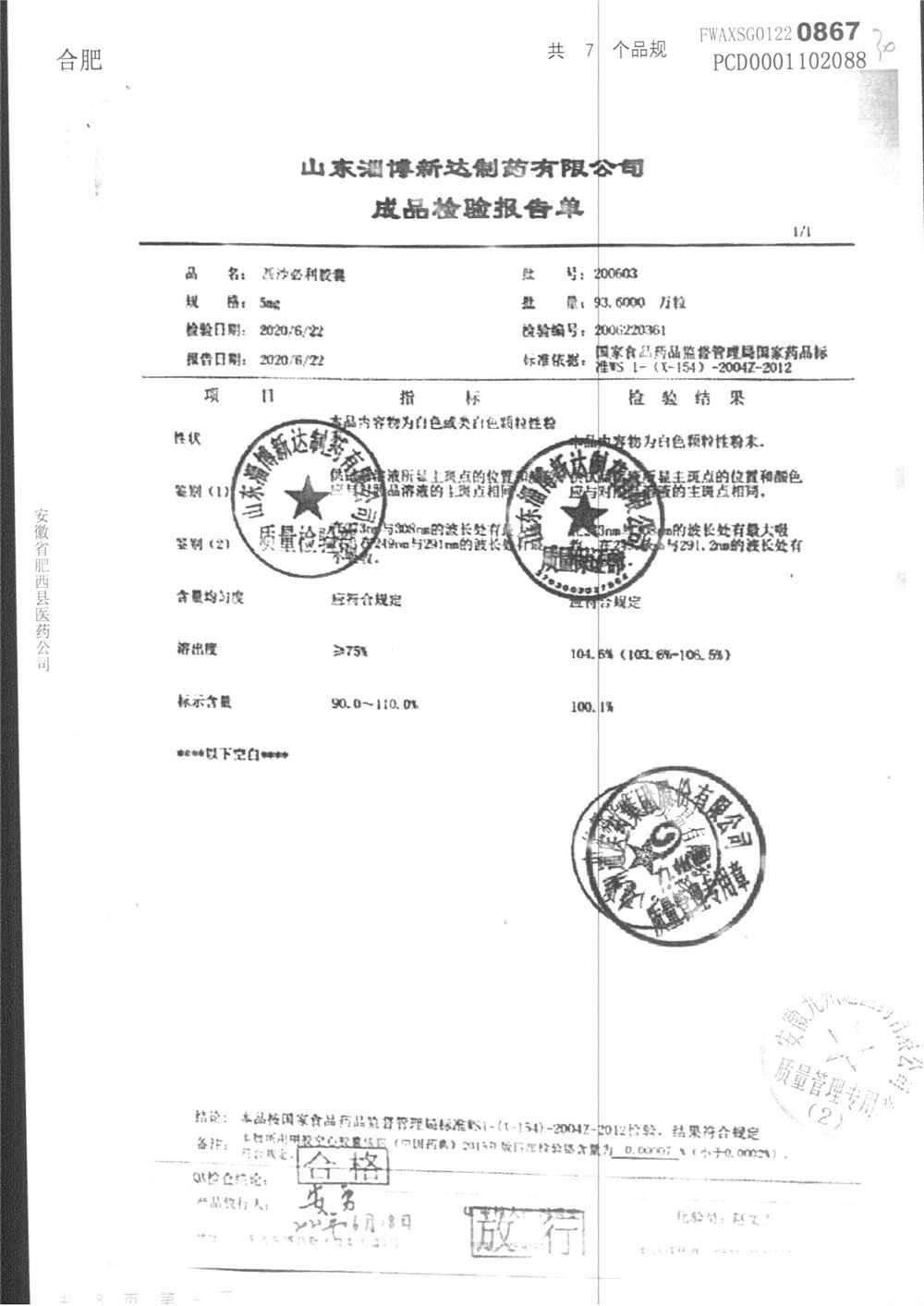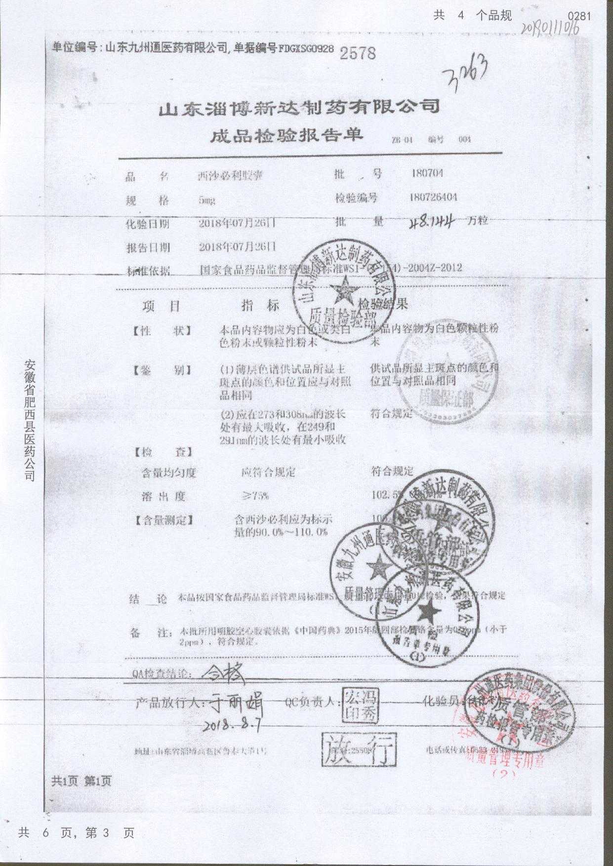 西沙必利胶囊 | 5mg | 180704 | 查看详情 |
