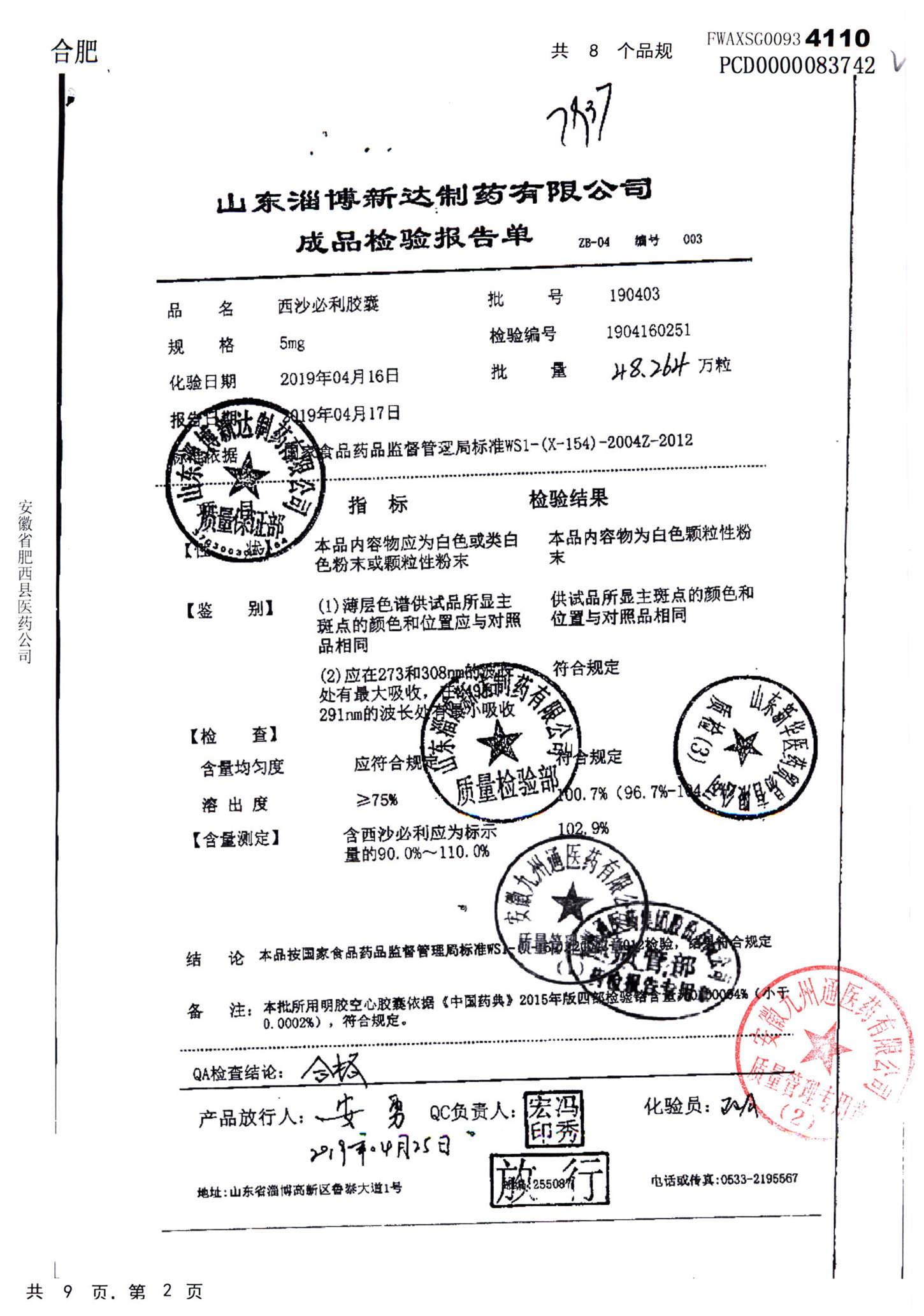 西沙必利胶囊 | 5mg | 190403 | 查看详情 |