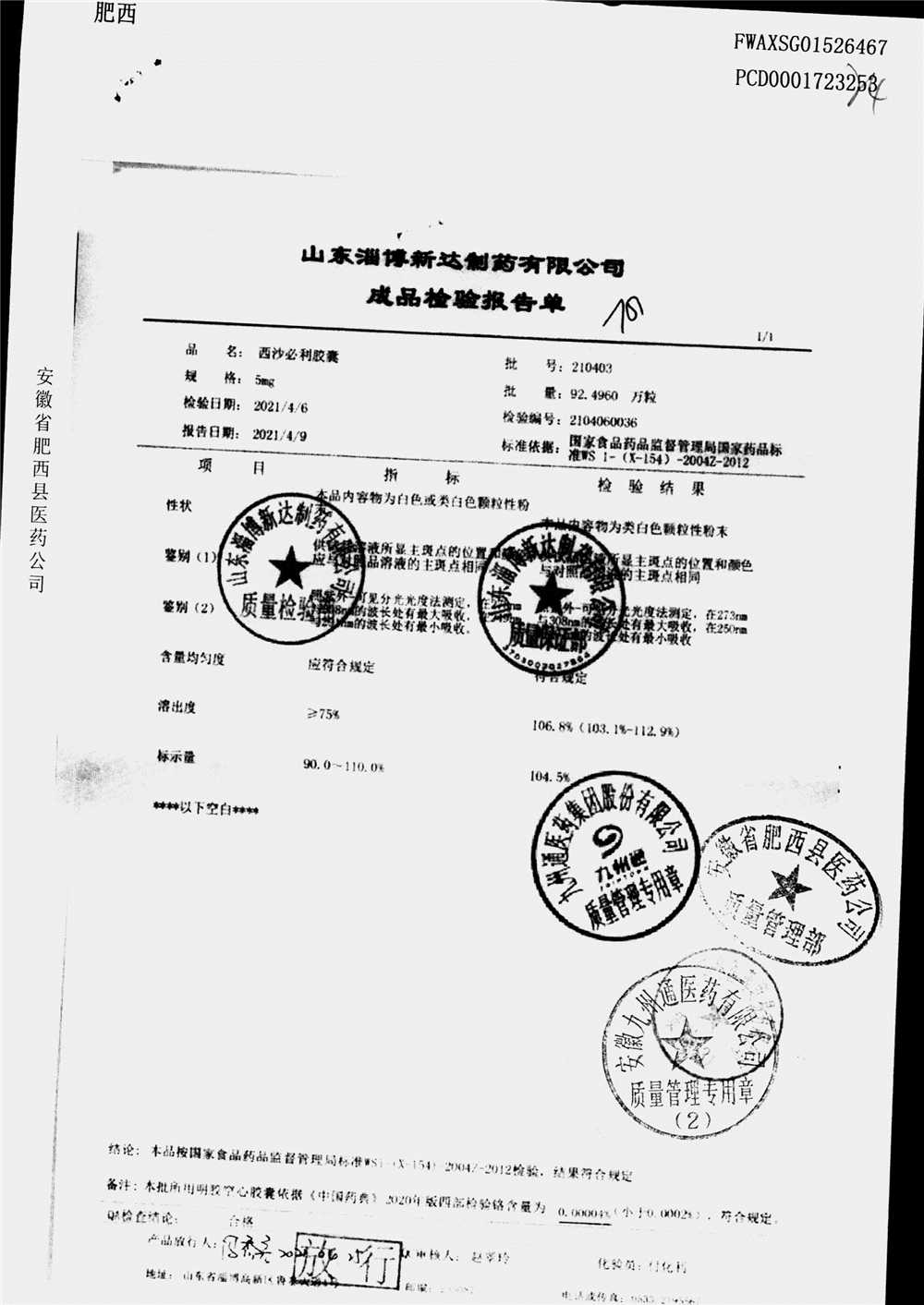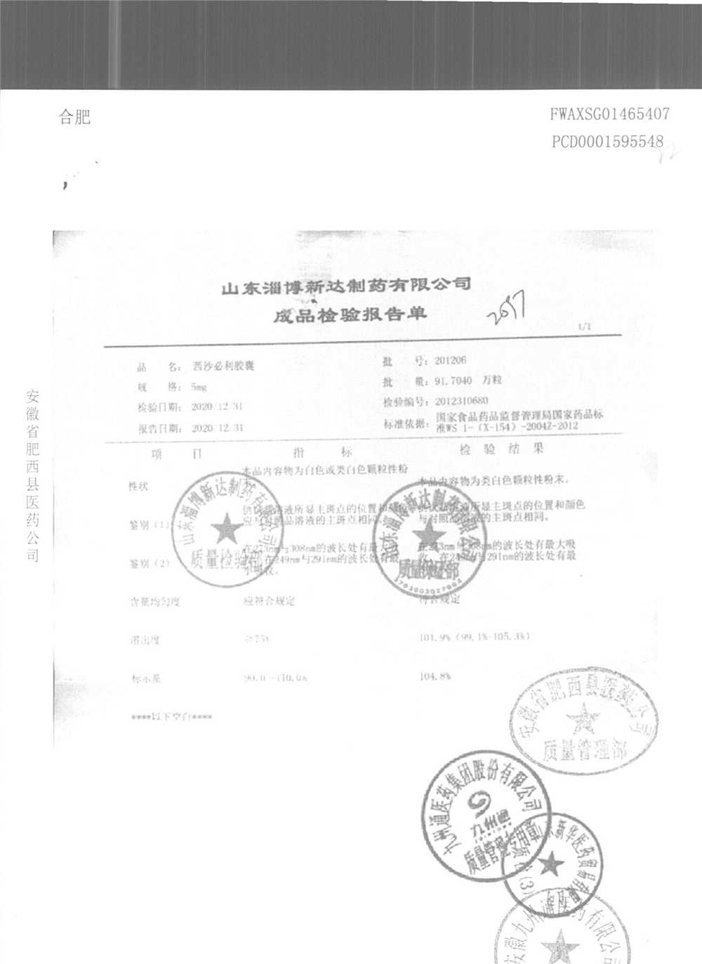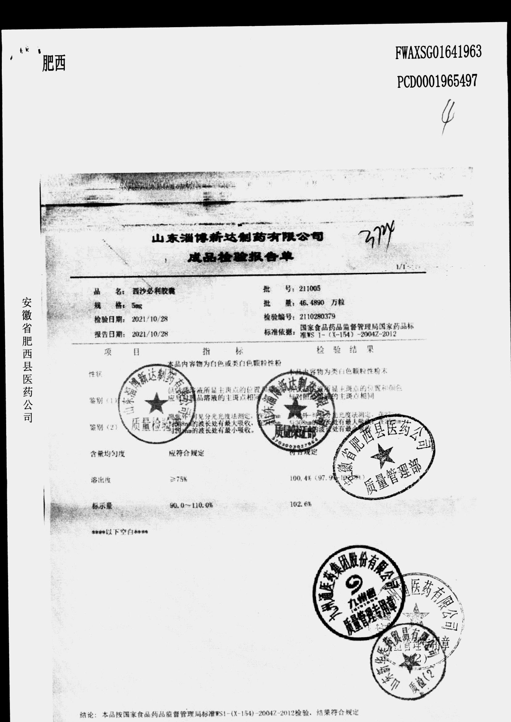 西沙必利胶囊 | 5mg | 210403 | 查看详情 |