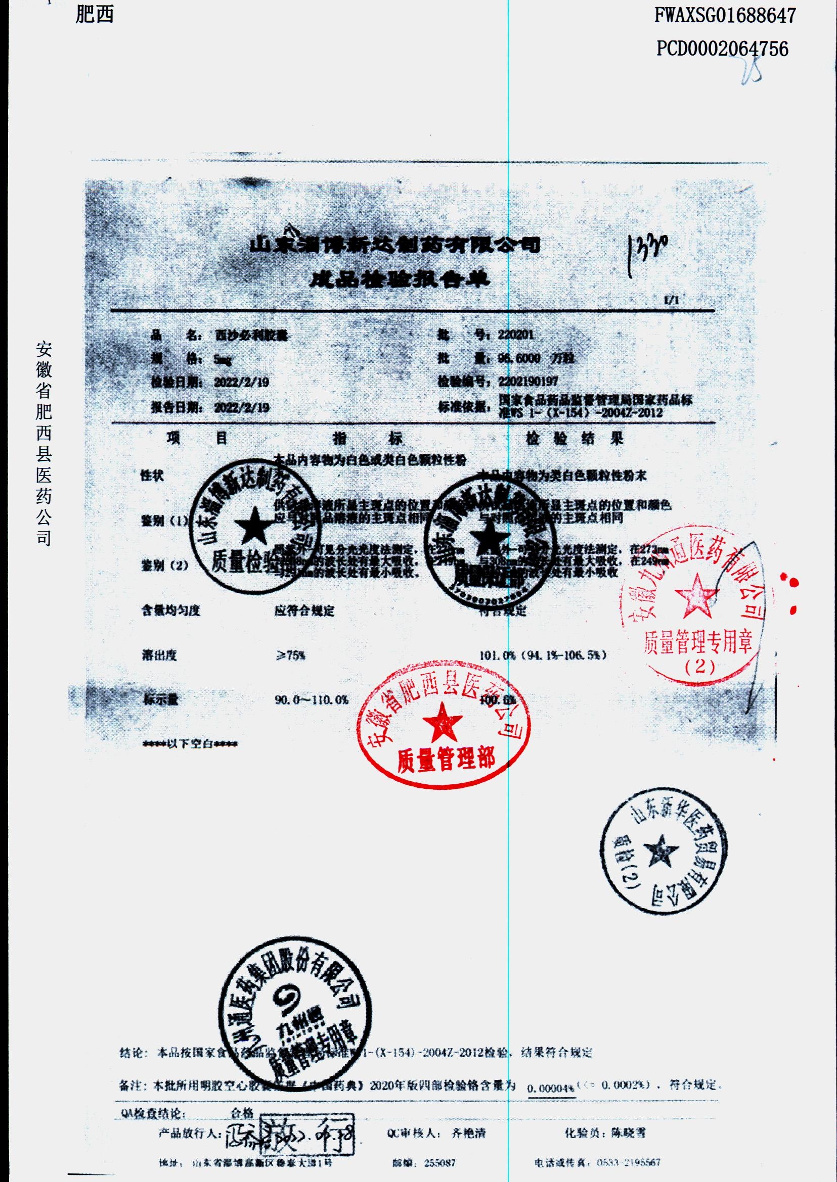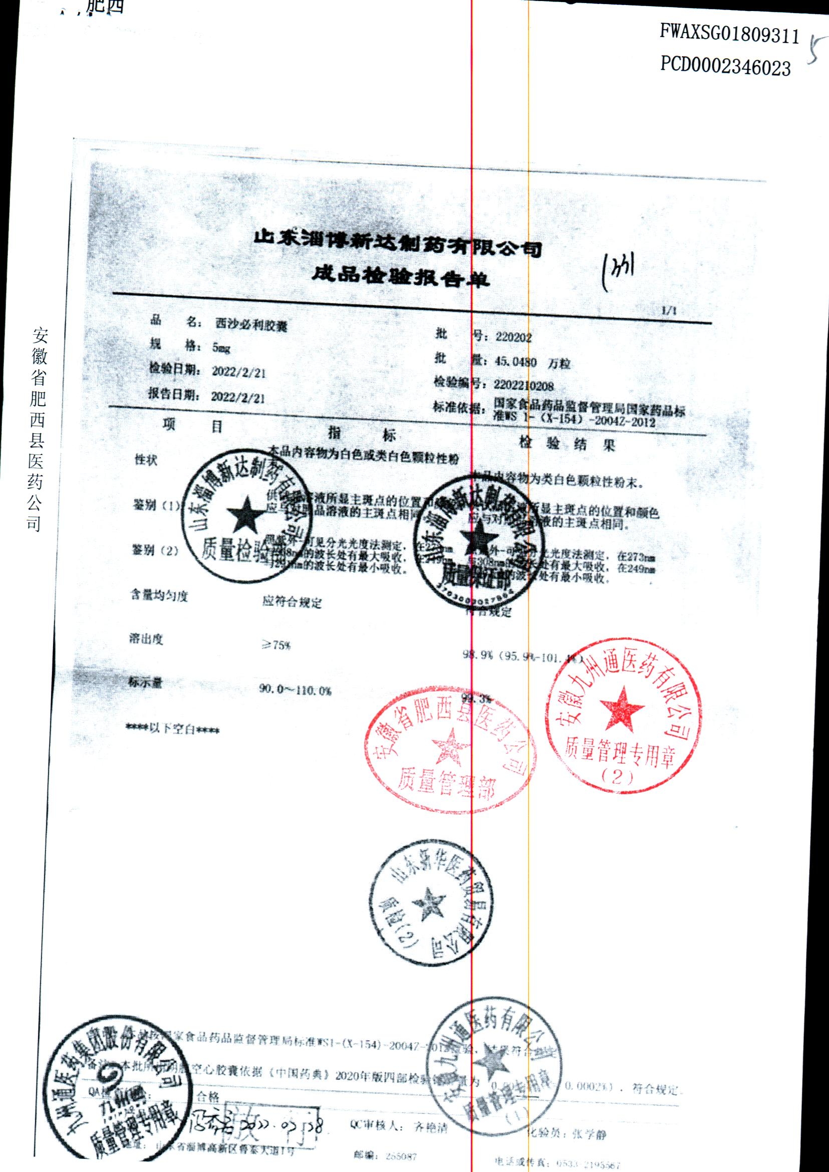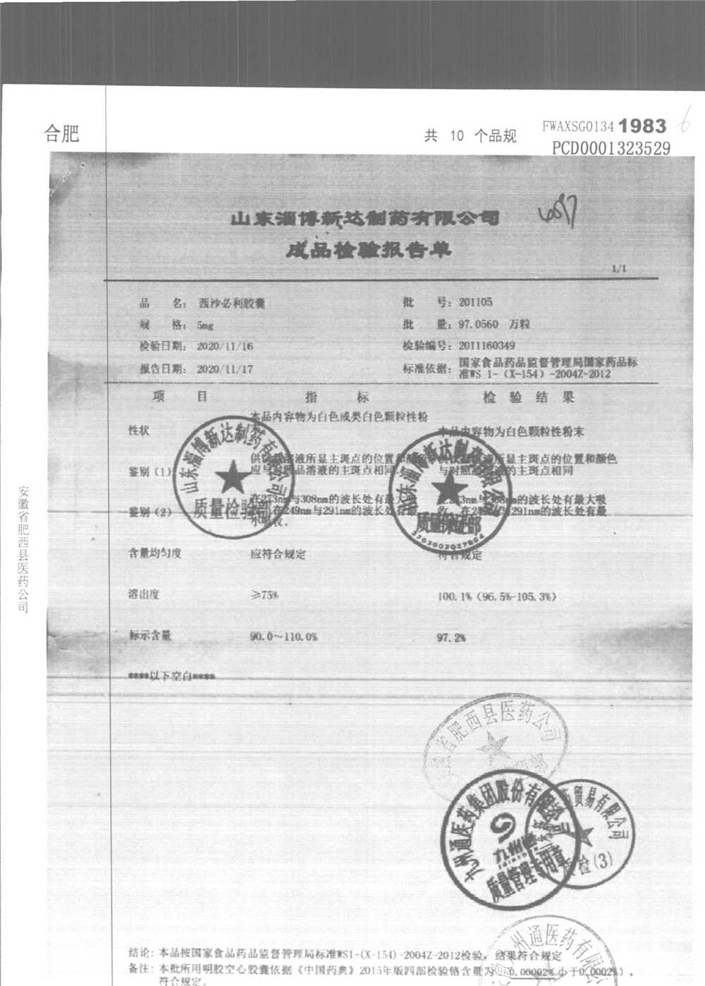 西沙必利胶囊 | 5mg | 210403 | 查看详情 |
