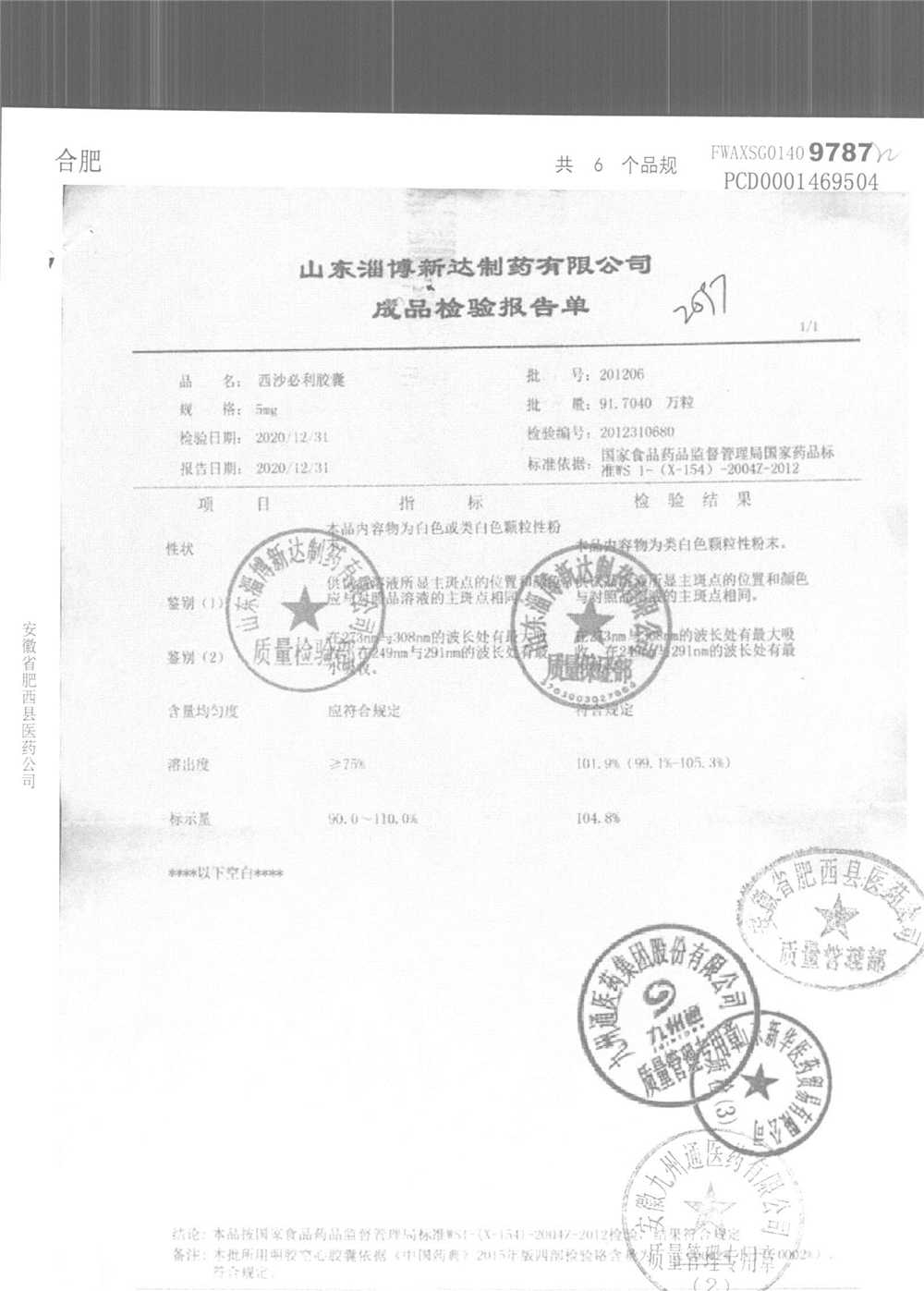 西沙必利胶囊 | 5mg | 201206 | 查看详情 |
