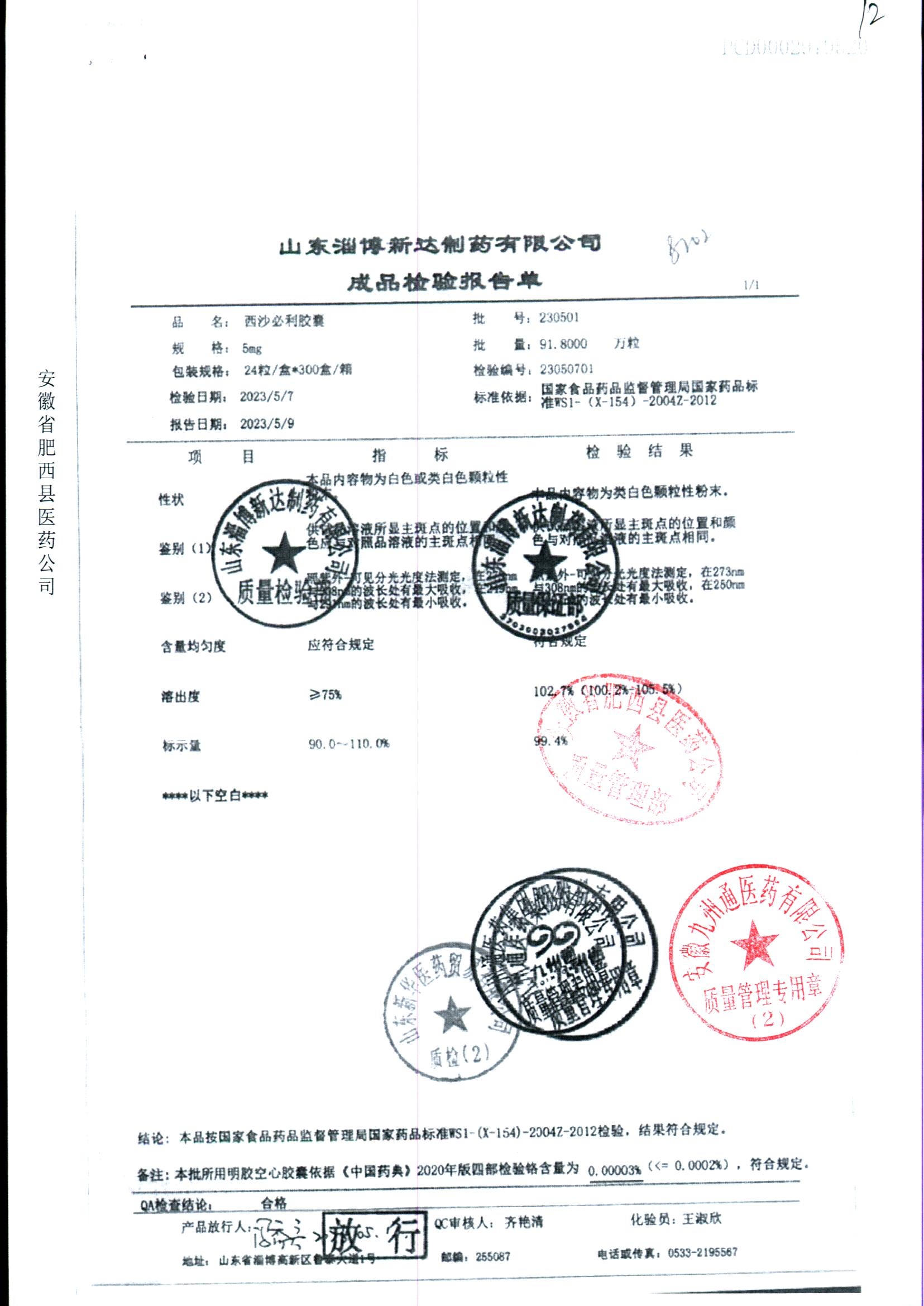 西沙必利胶囊 | 5mg | 230501 | 查看详情 |