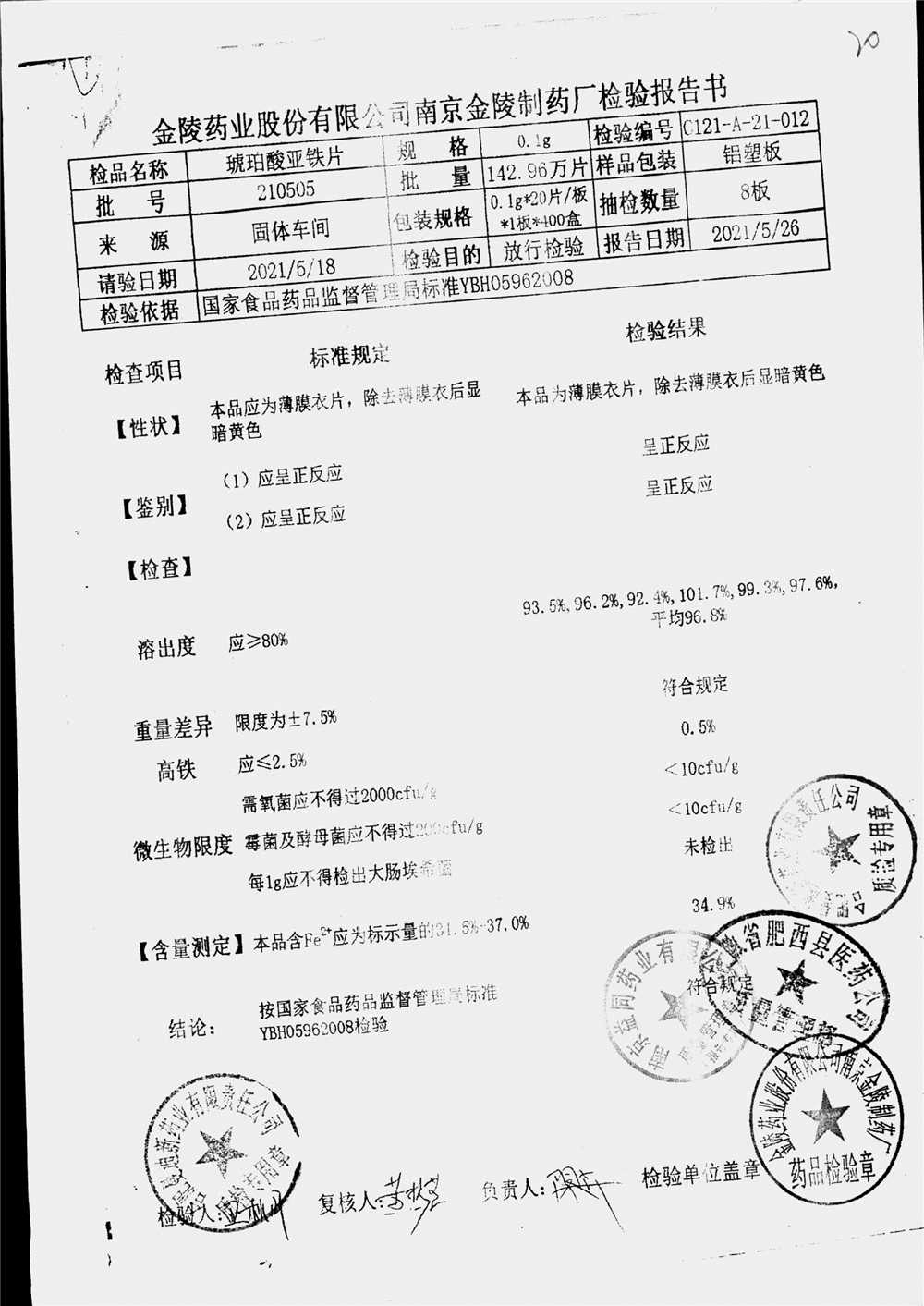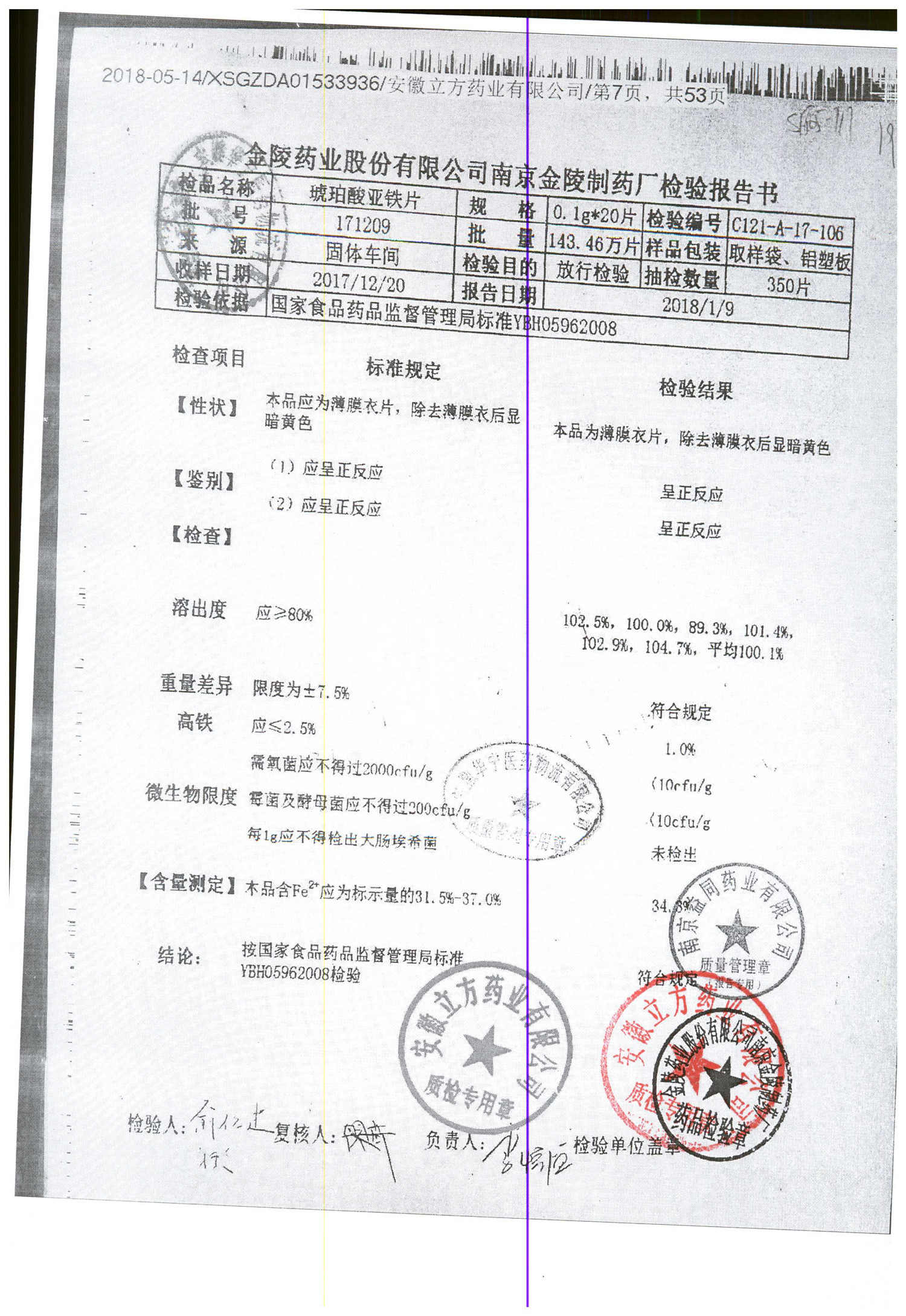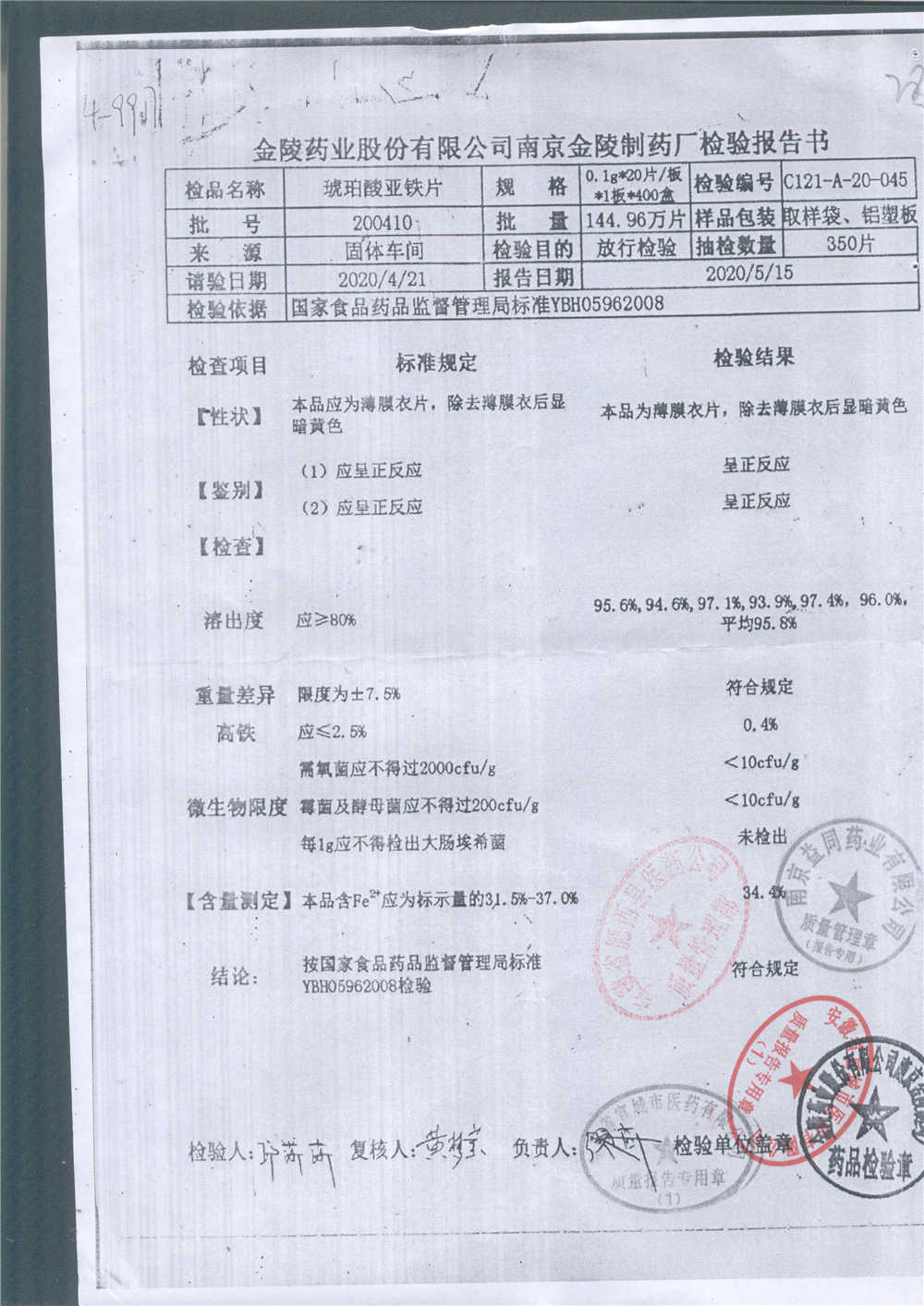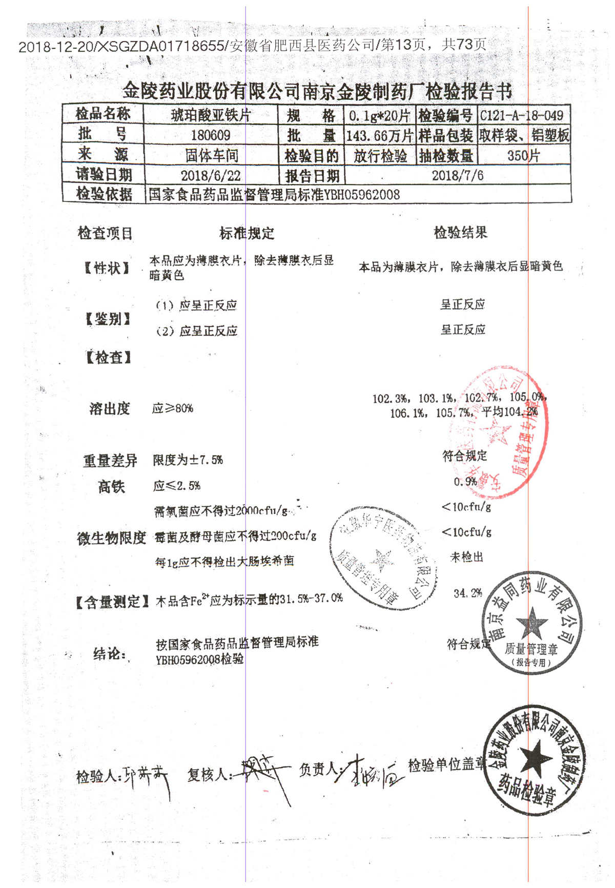 琥珀酸亚铁片 | 0.1g*20片 | 190806 | 查看详情 |