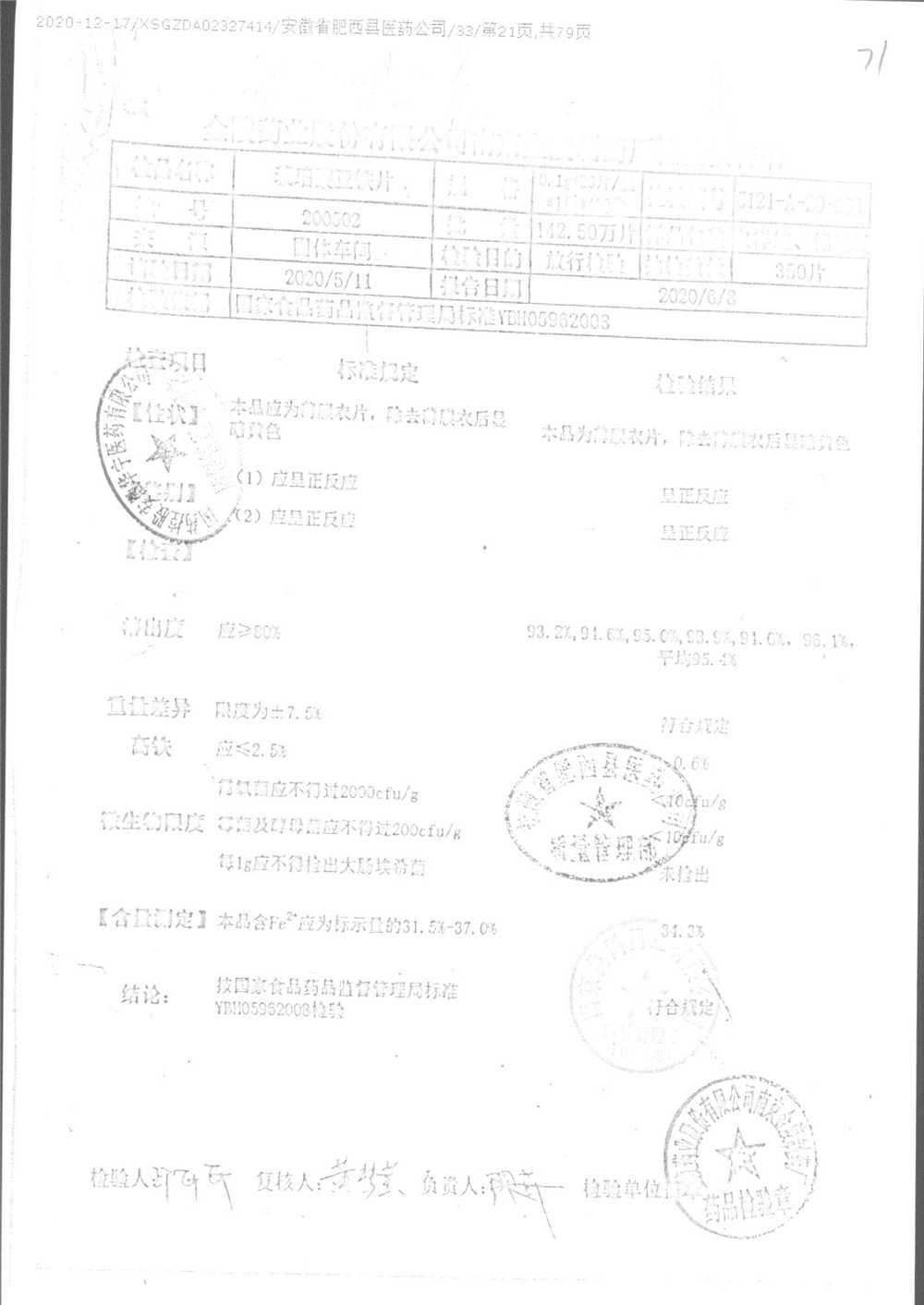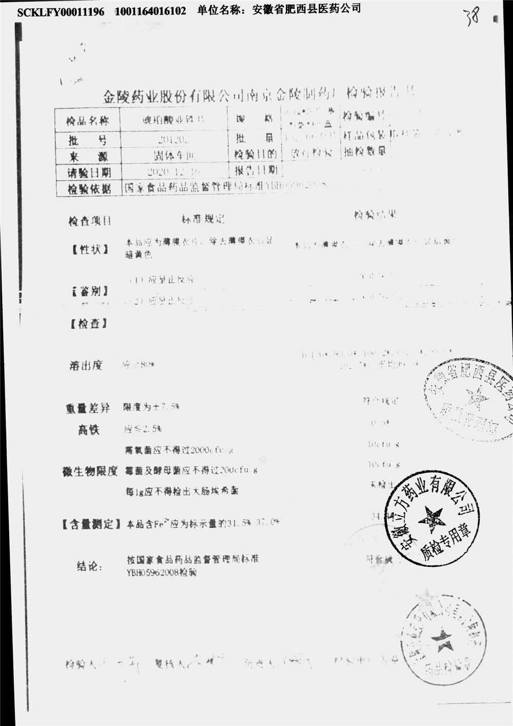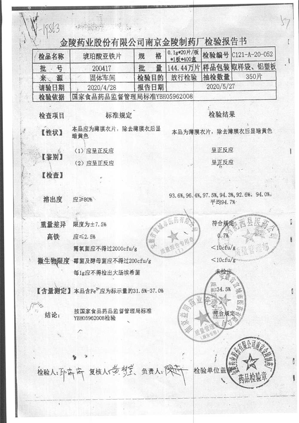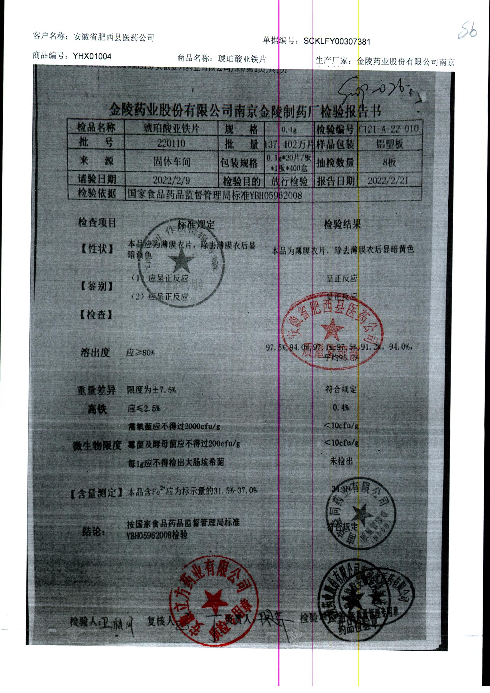 琥珀酸亚铁片 | 0.1g*20片 | 190806 | 查看详情 |