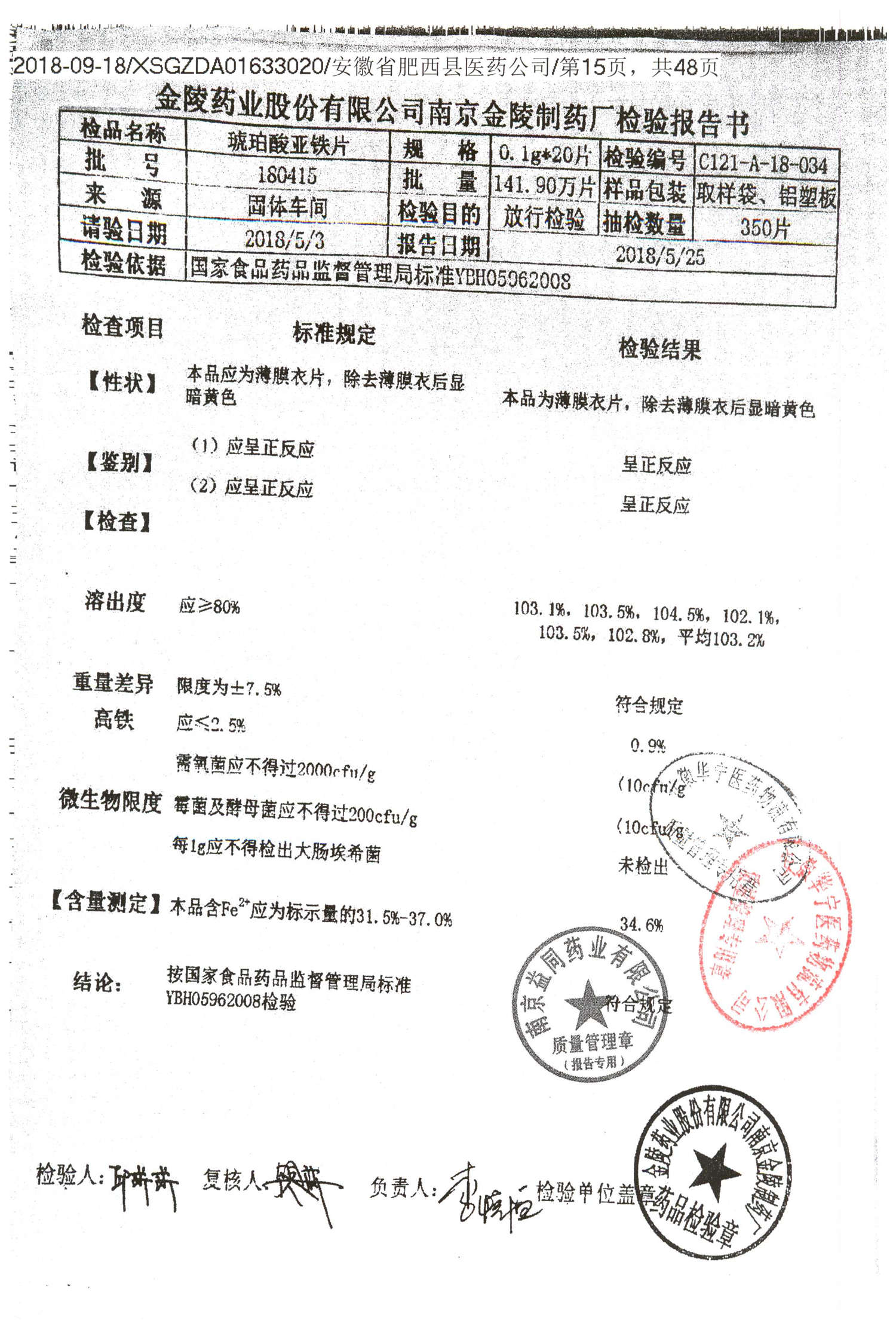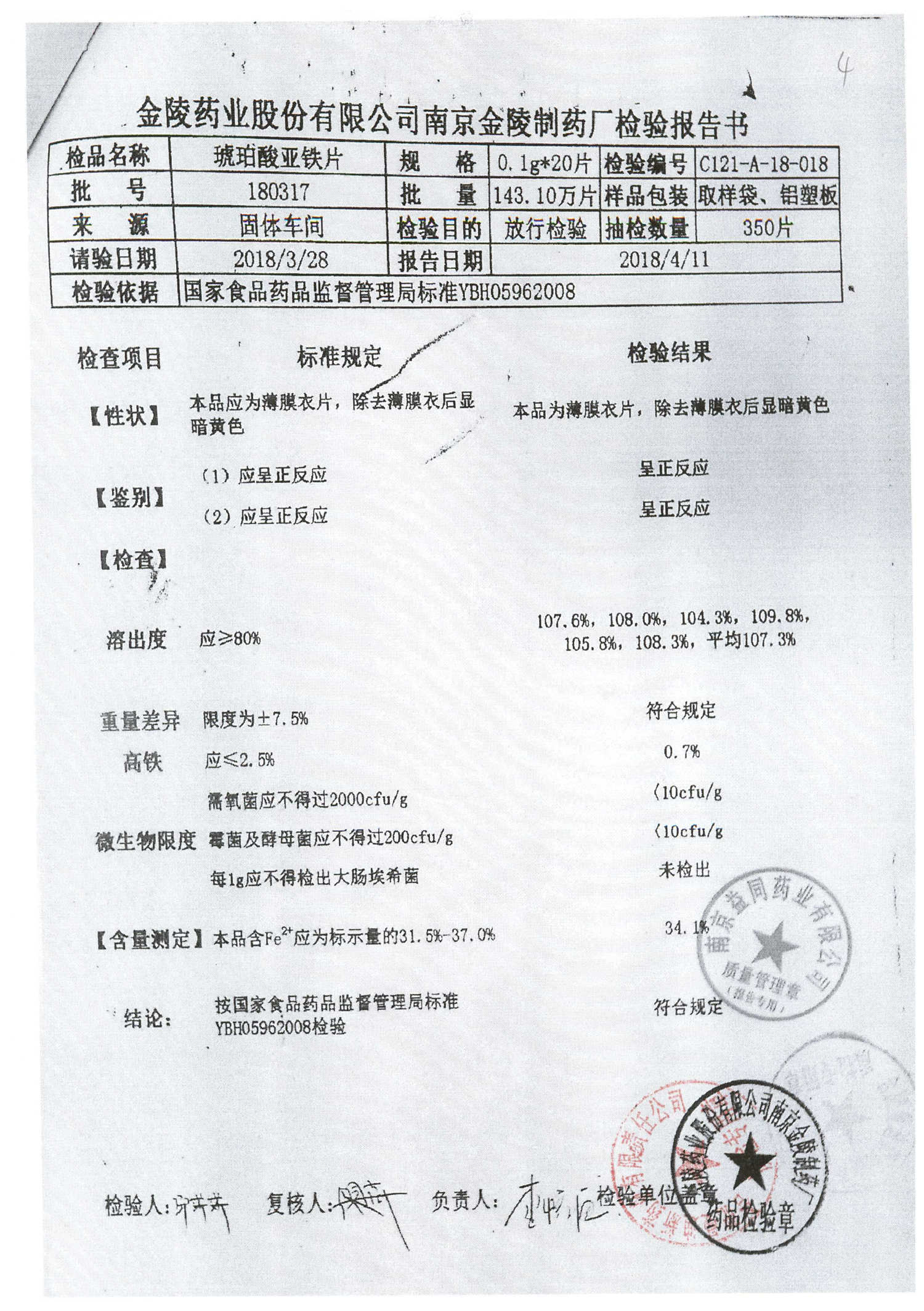 琥珀酸亚铁片 | 0.1g*20片 | 180415 | 查看详情 |