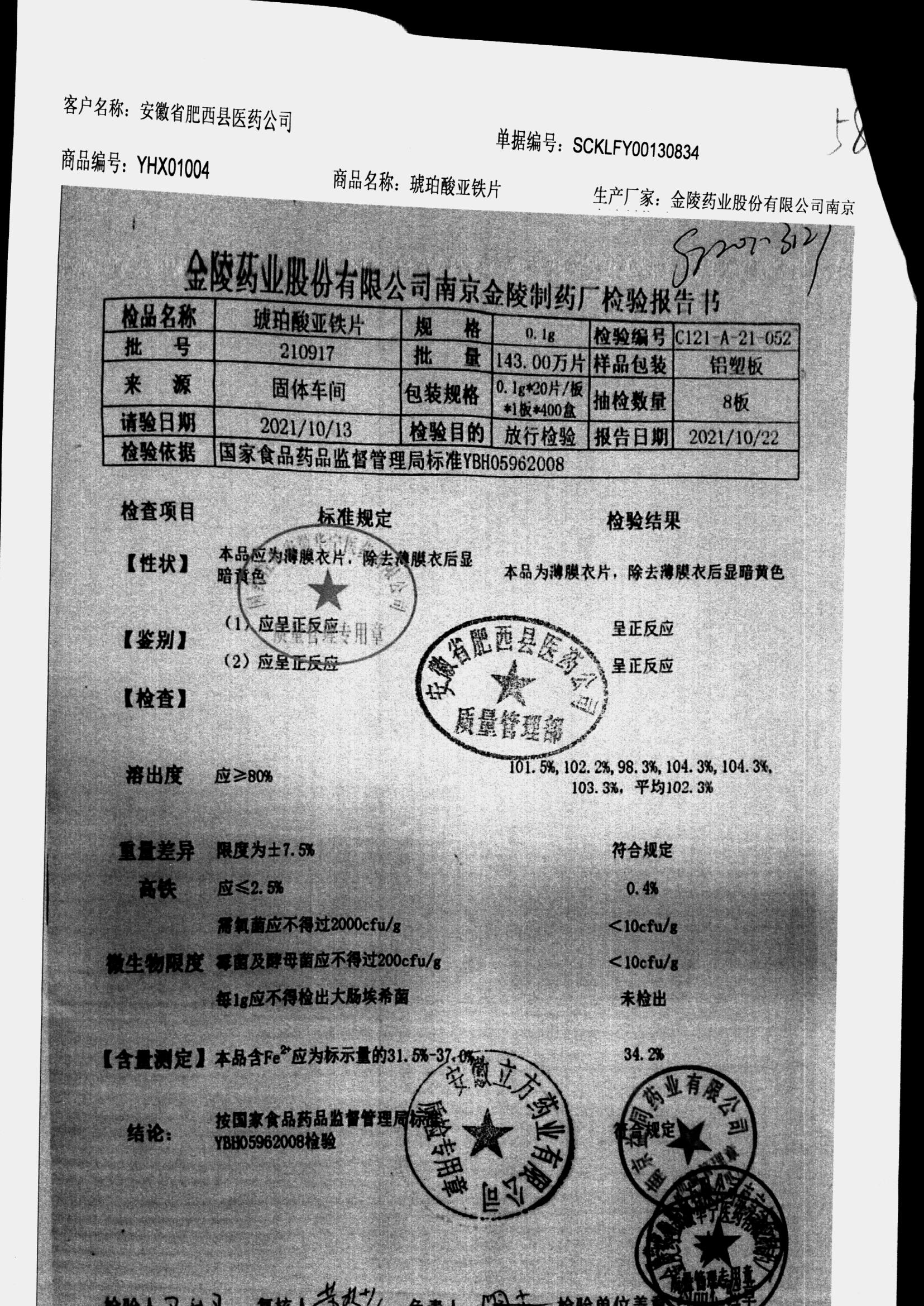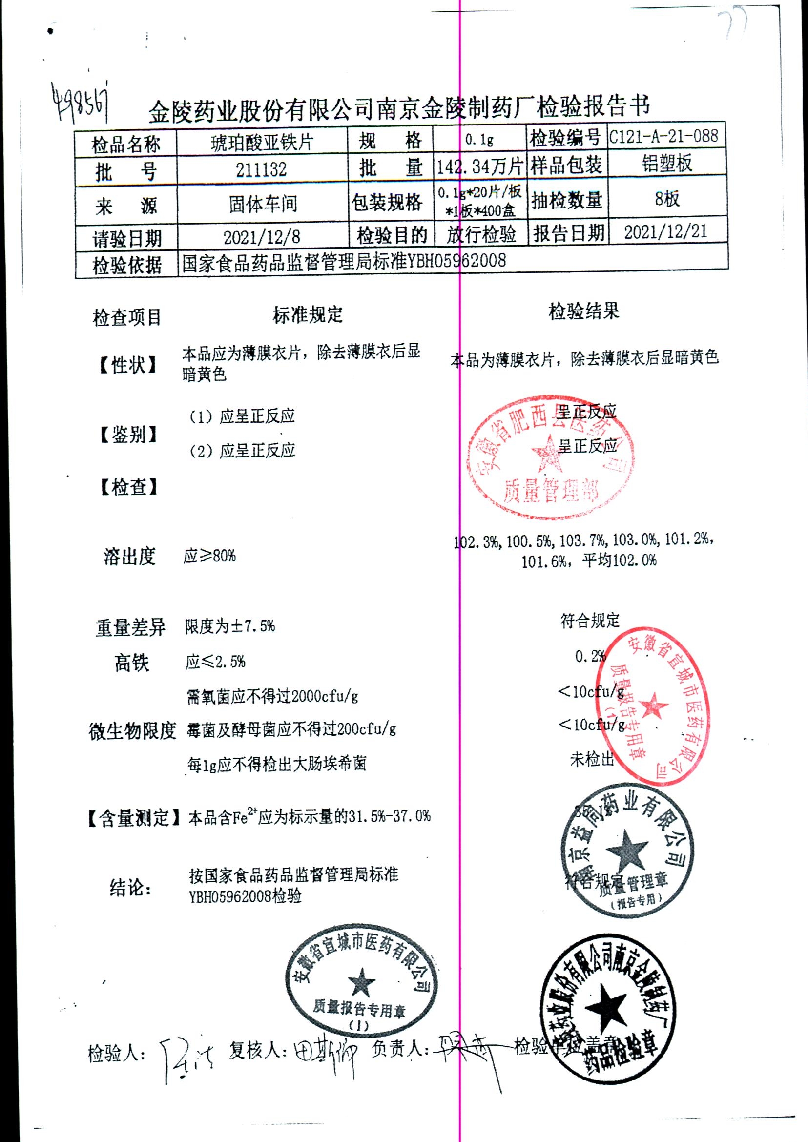 琥珀酸亚铁片 | 0.1g*20片 | 210917 | 查看详情 |