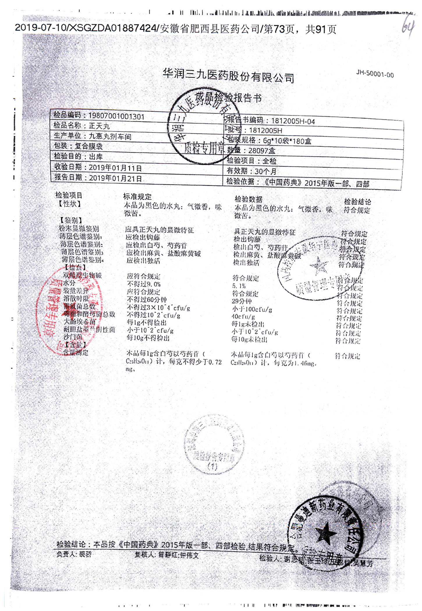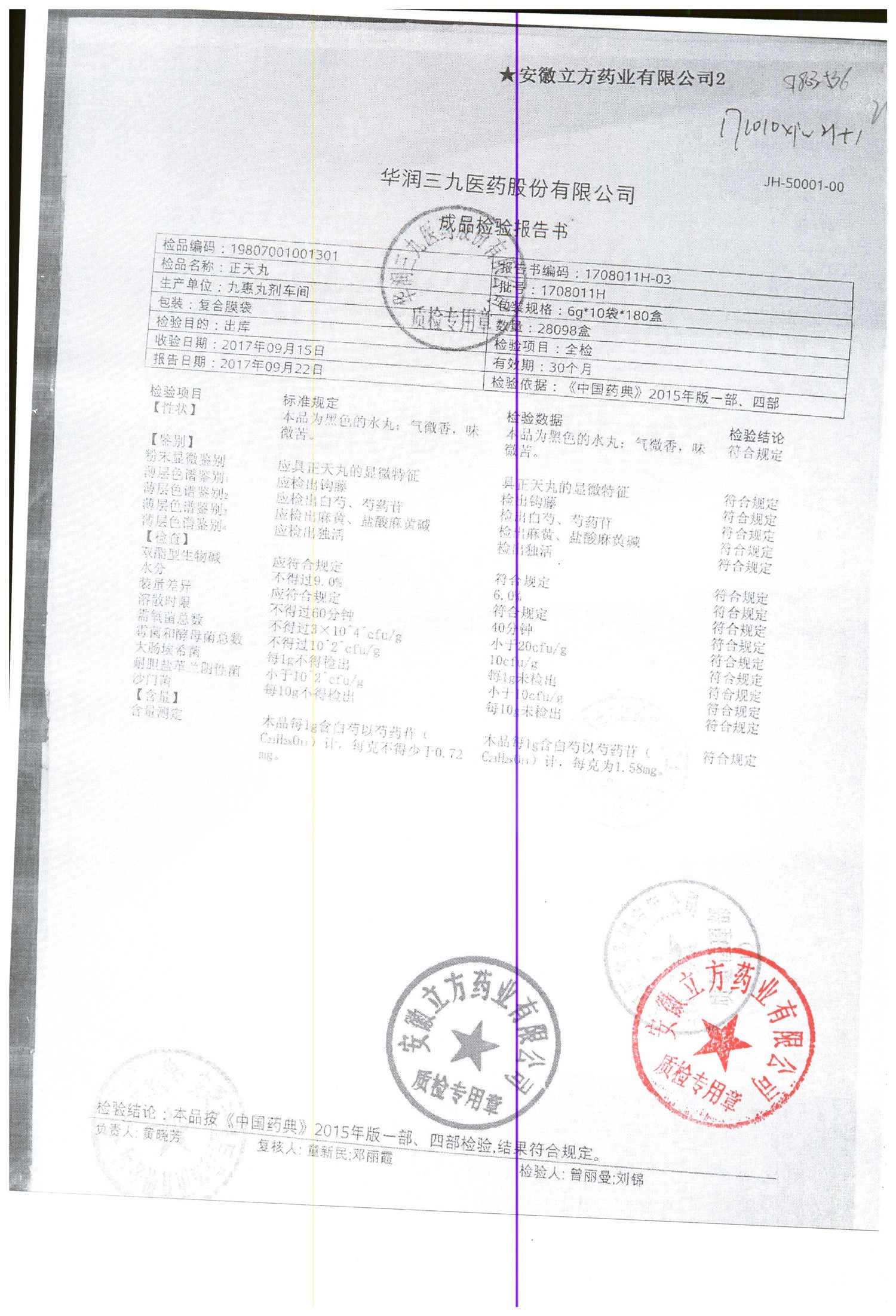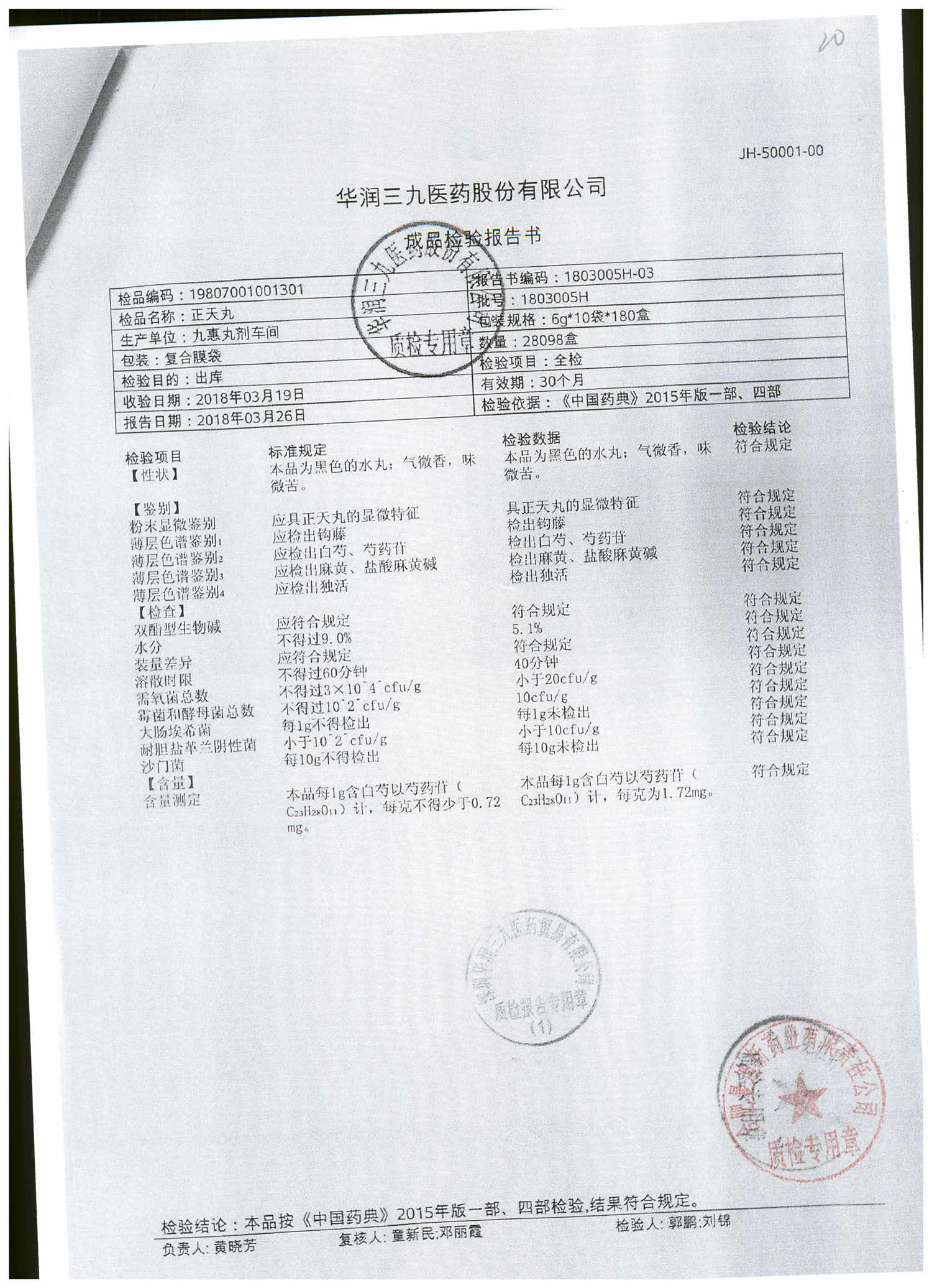 名称 | 规格 | 批号 | 药检报告 |