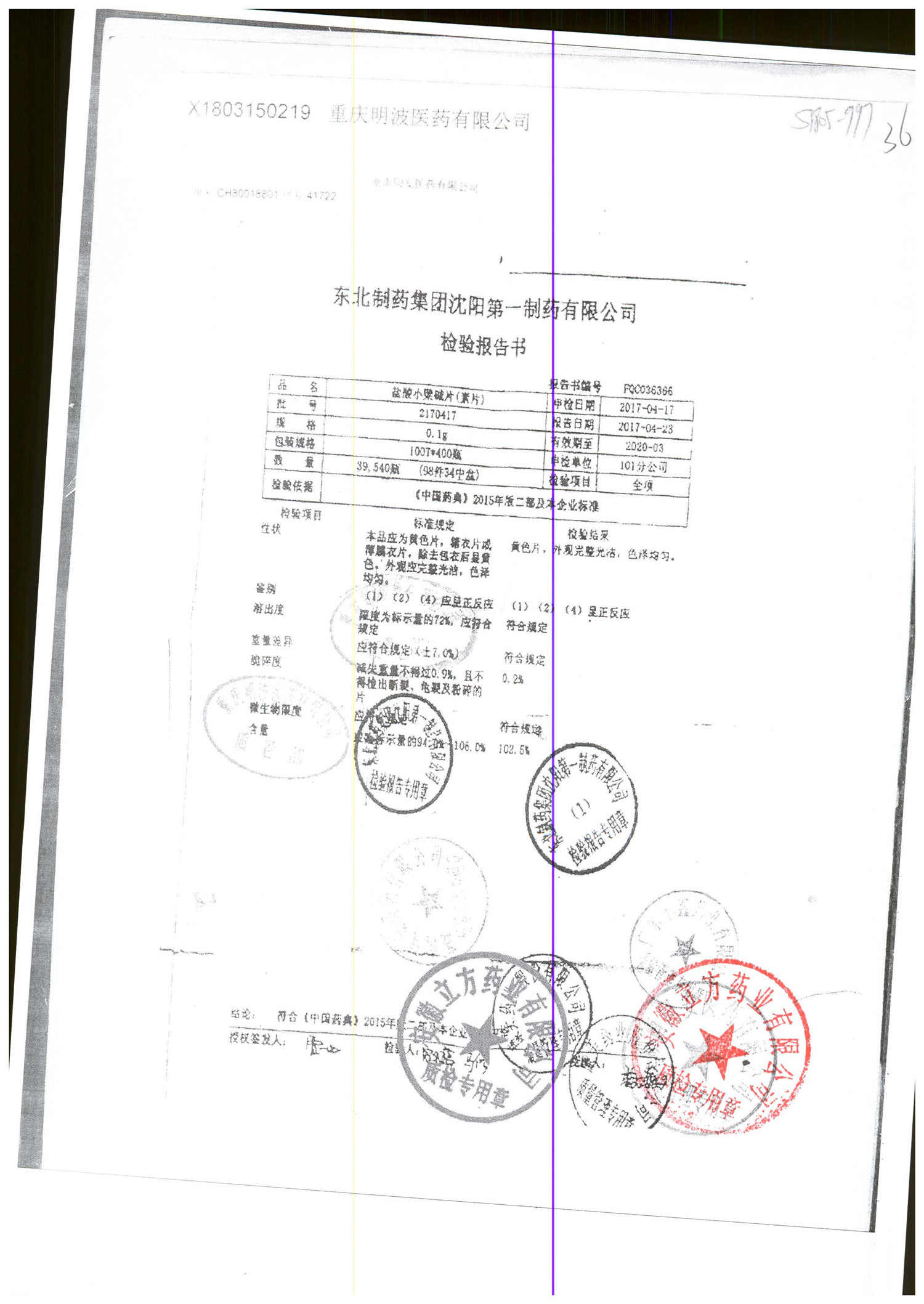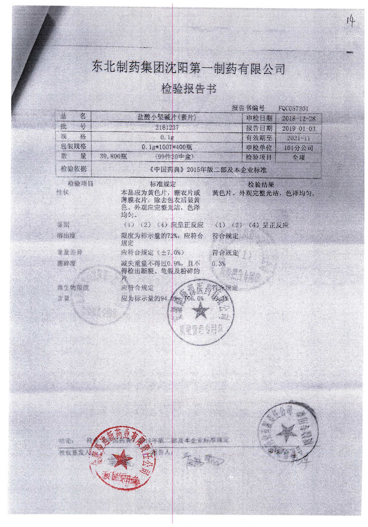 名称 | 规格 | 批号 | 药检报告 |