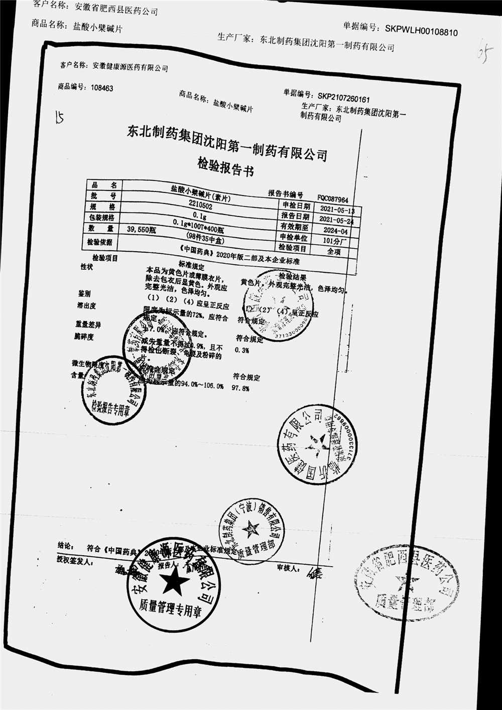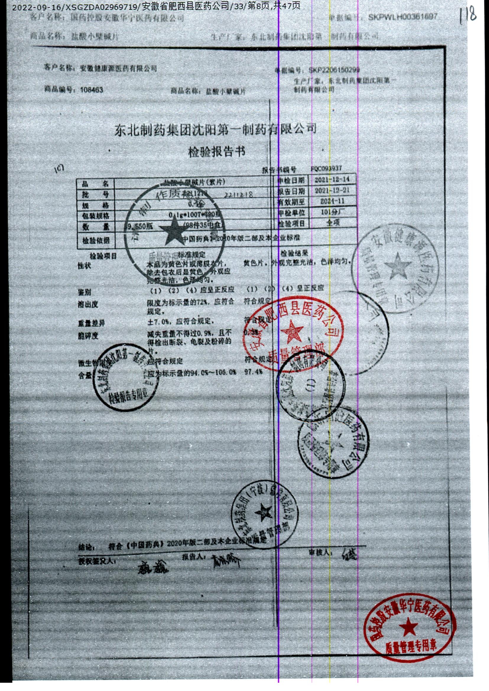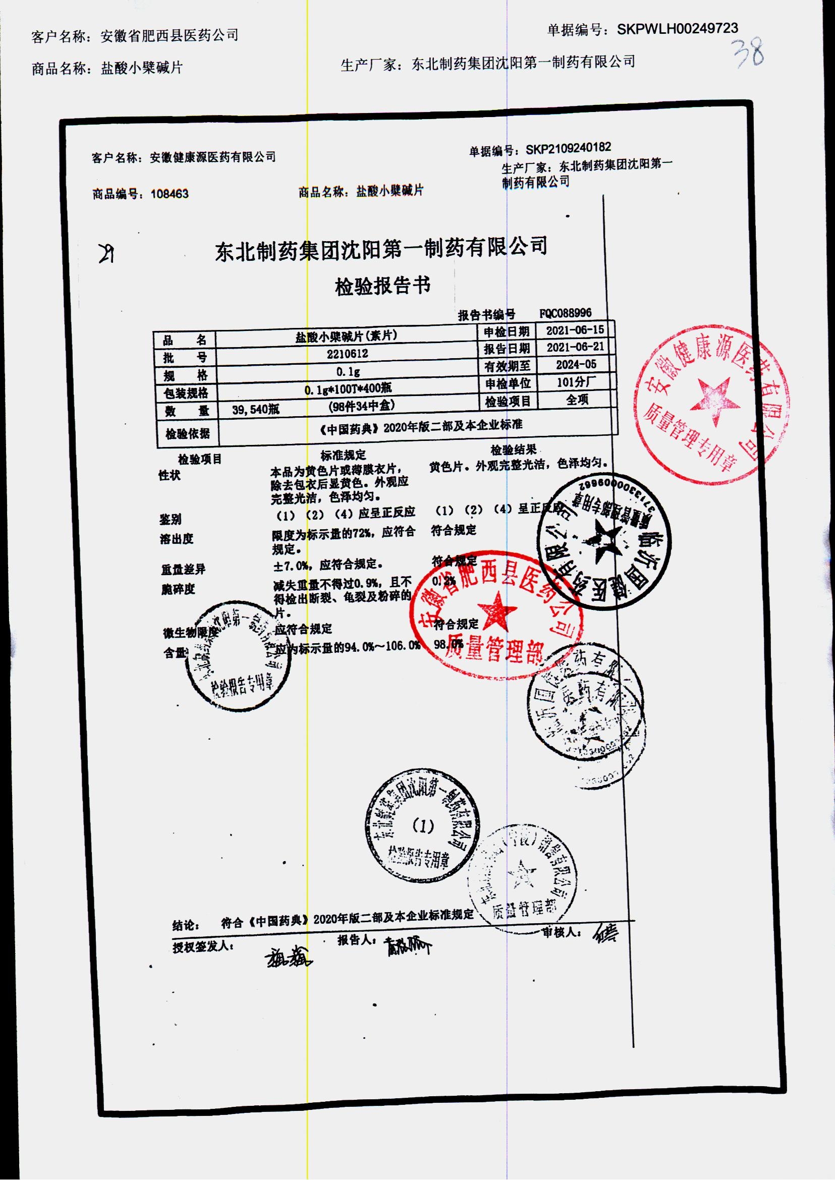 盐酸小檗碱片 | 0.1g*100片 | 2210502 | 查看详情 |