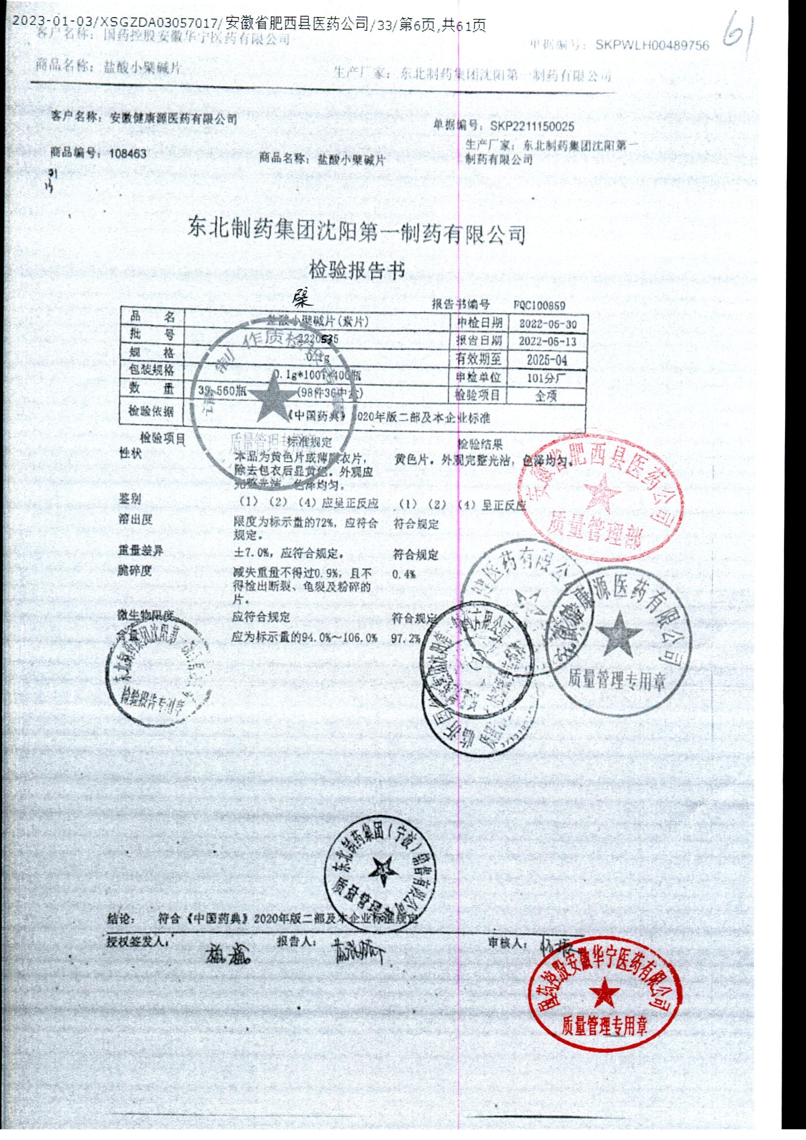盐酸小檗碱片 | 0.1g*100片 | 2170629 | 查看详情 |