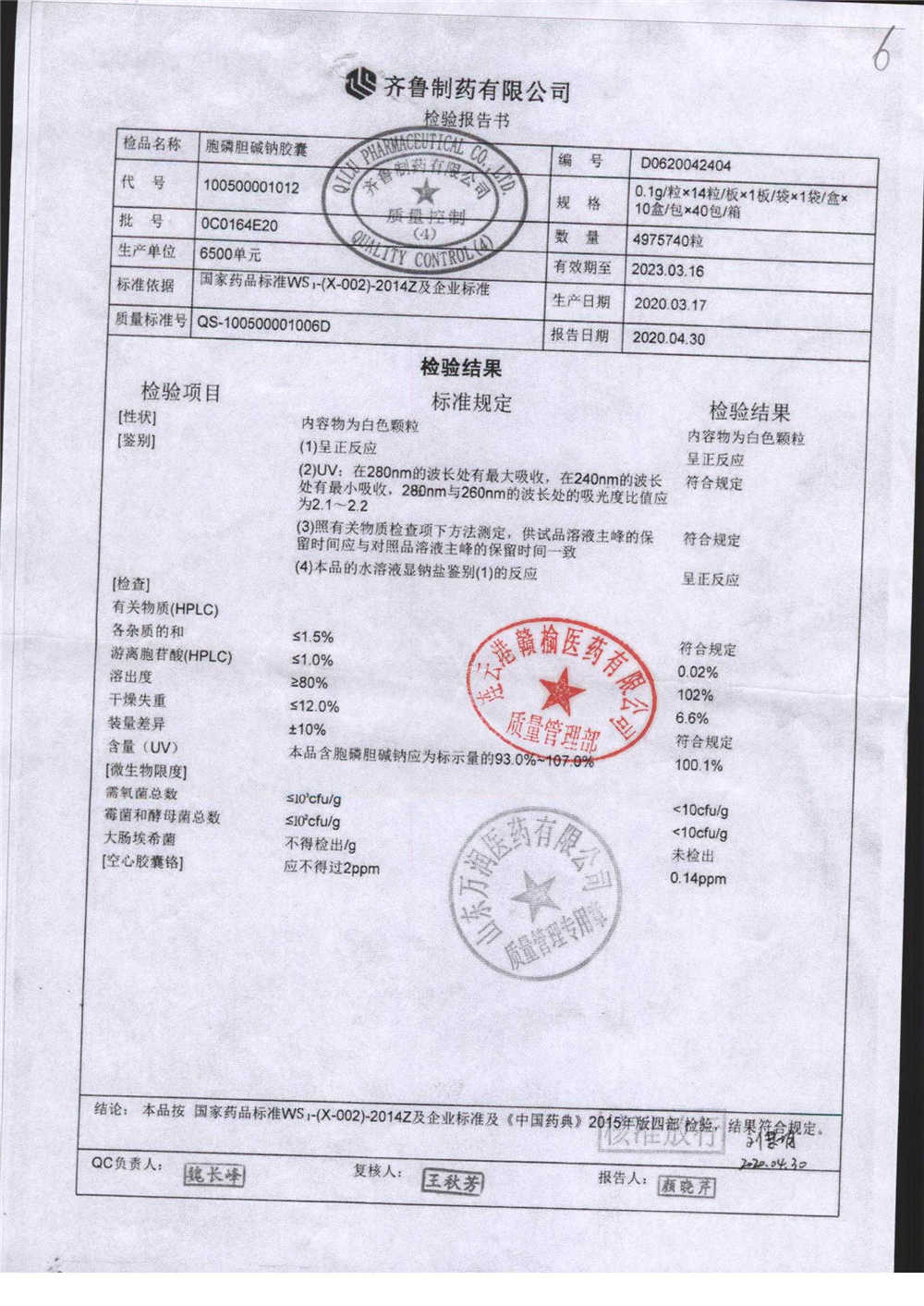 胞磷胆碱钠胶囊 | 0.1g*14粒*3 | 0C0164E20 | 查看详情 |