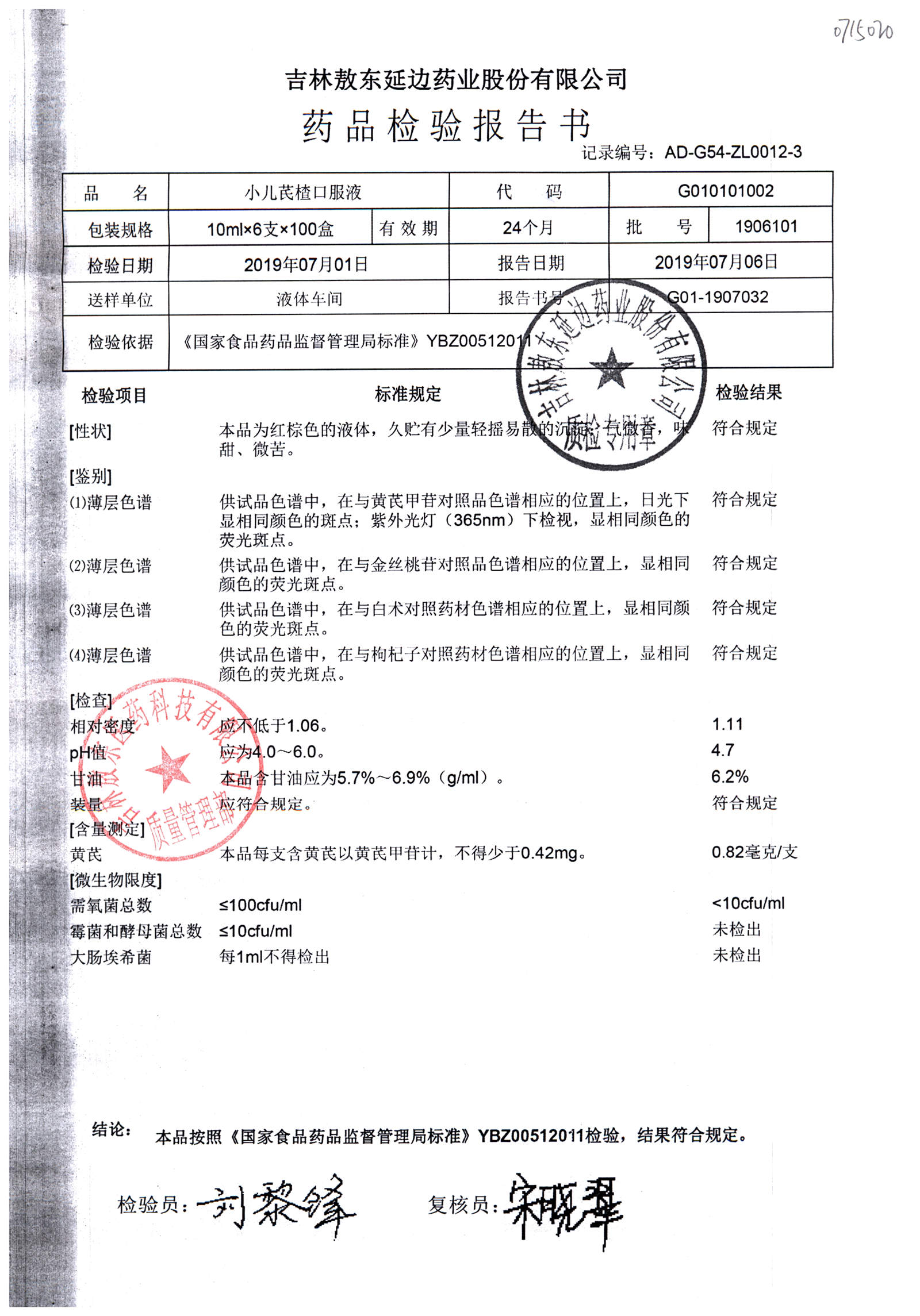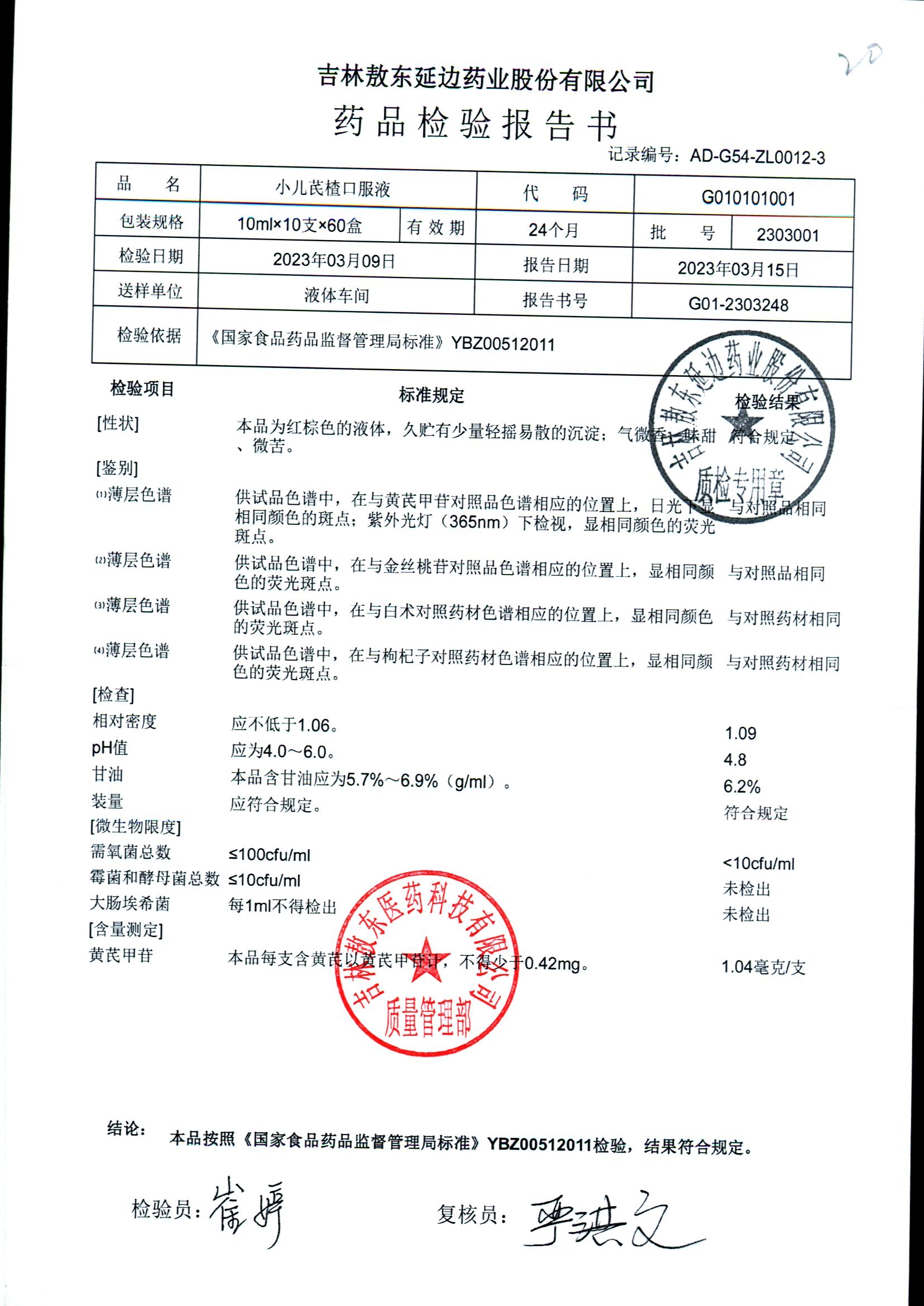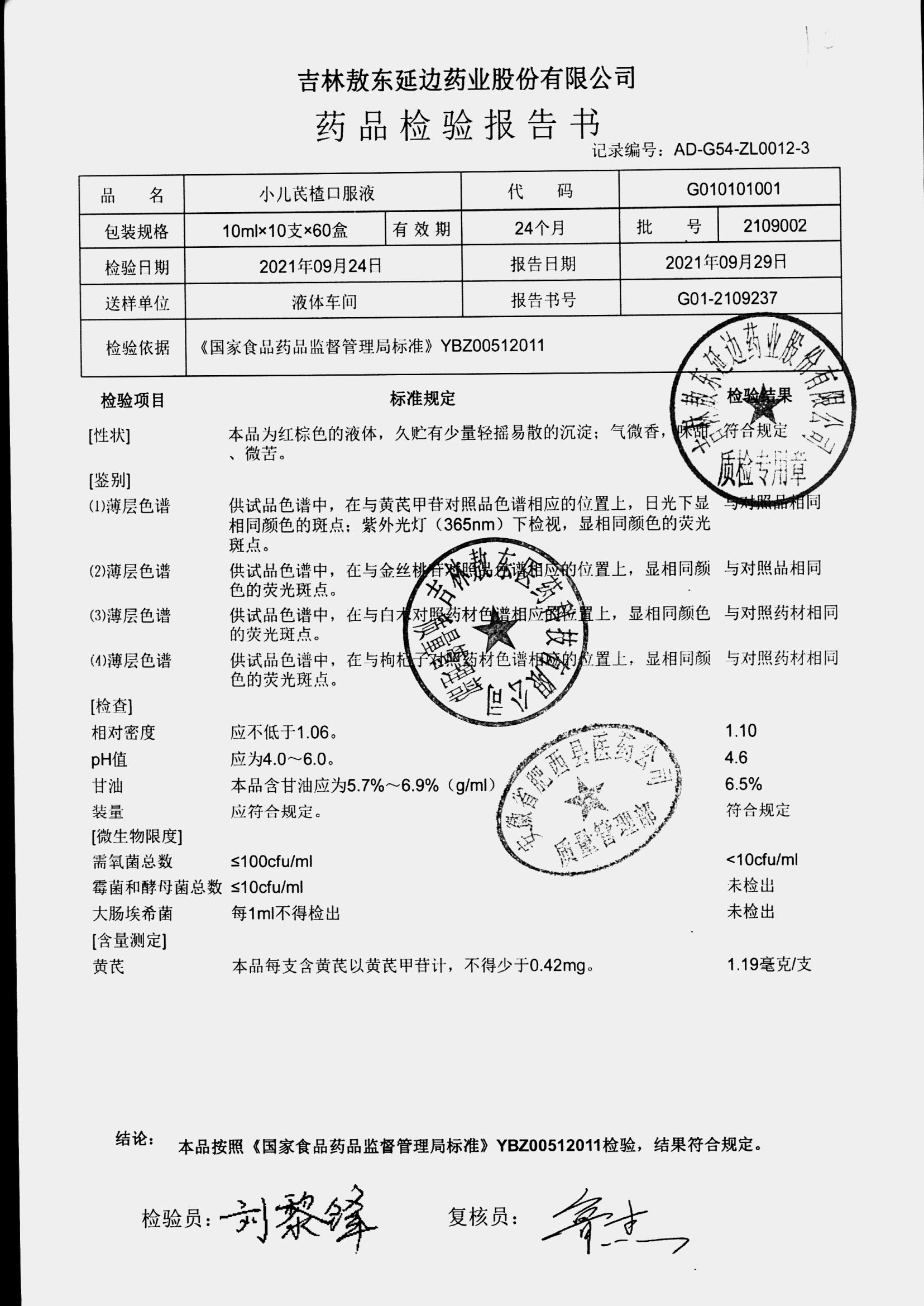 小儿芪楂口服液 | 10ml | 2009001 | 查看详情 |