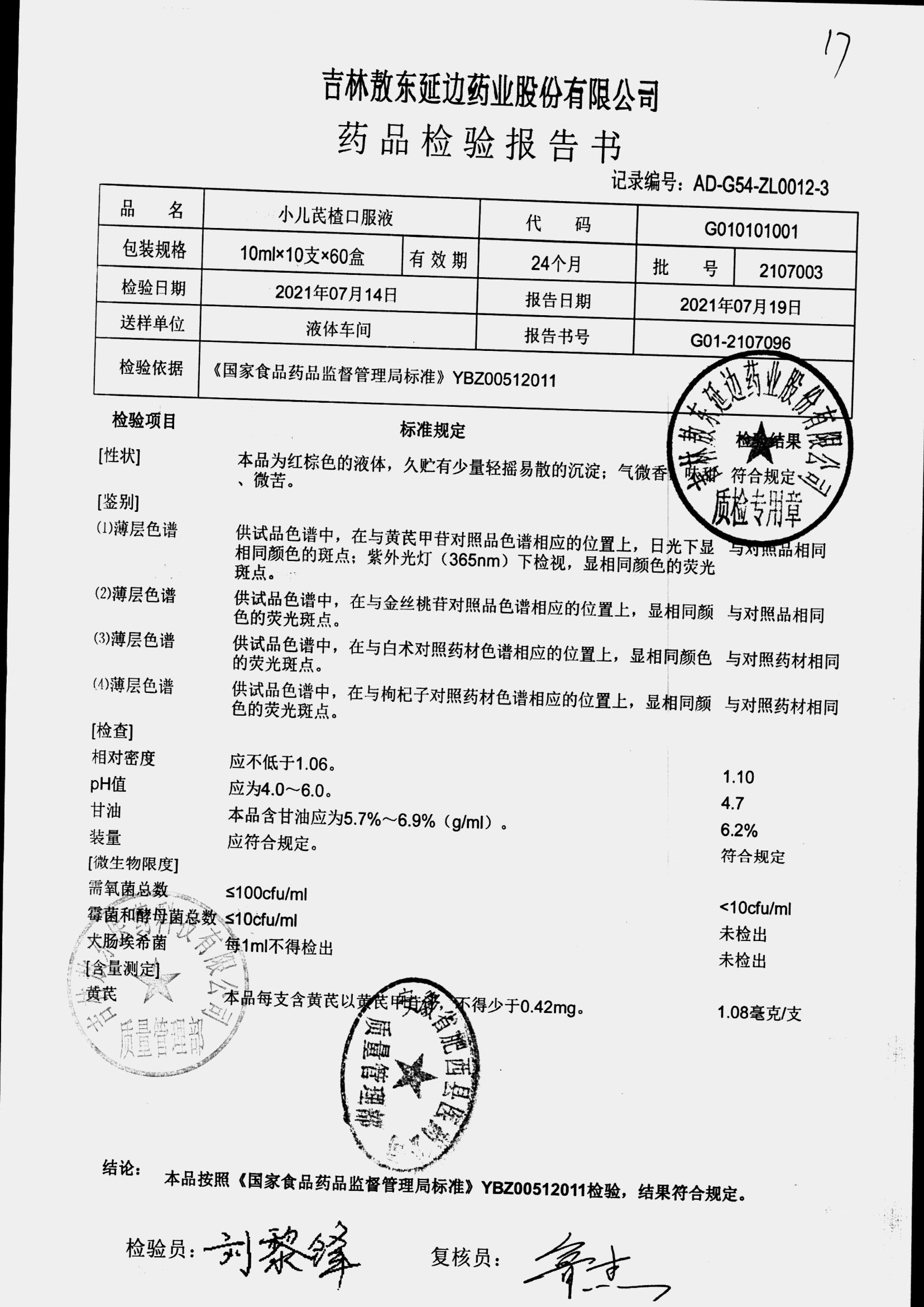 小儿芪楂口服液 | 10ml | 2107001 | 查看详情 |
