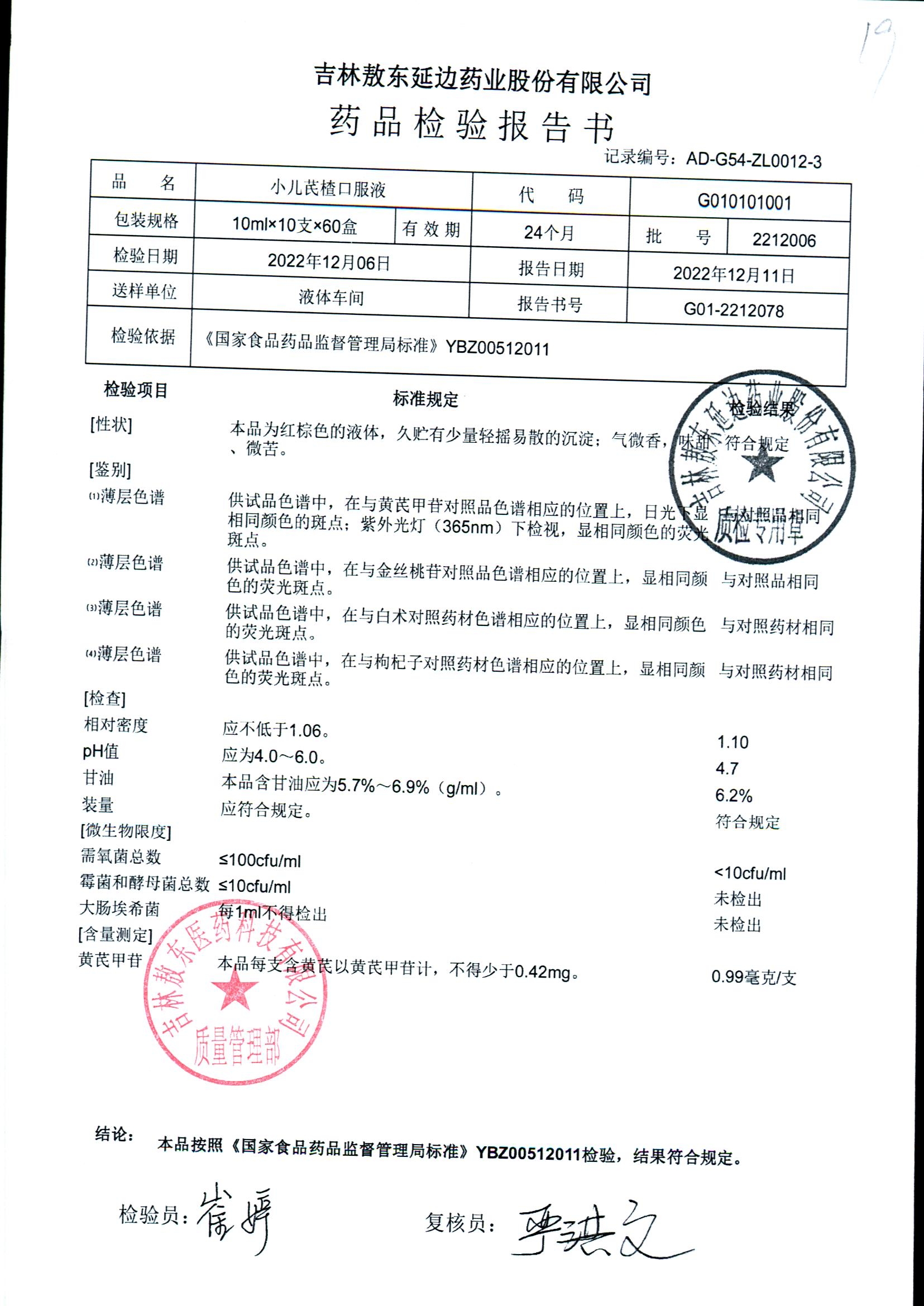 小儿芪楂口服液 | 10ml | 1911001 | 查看详情 |