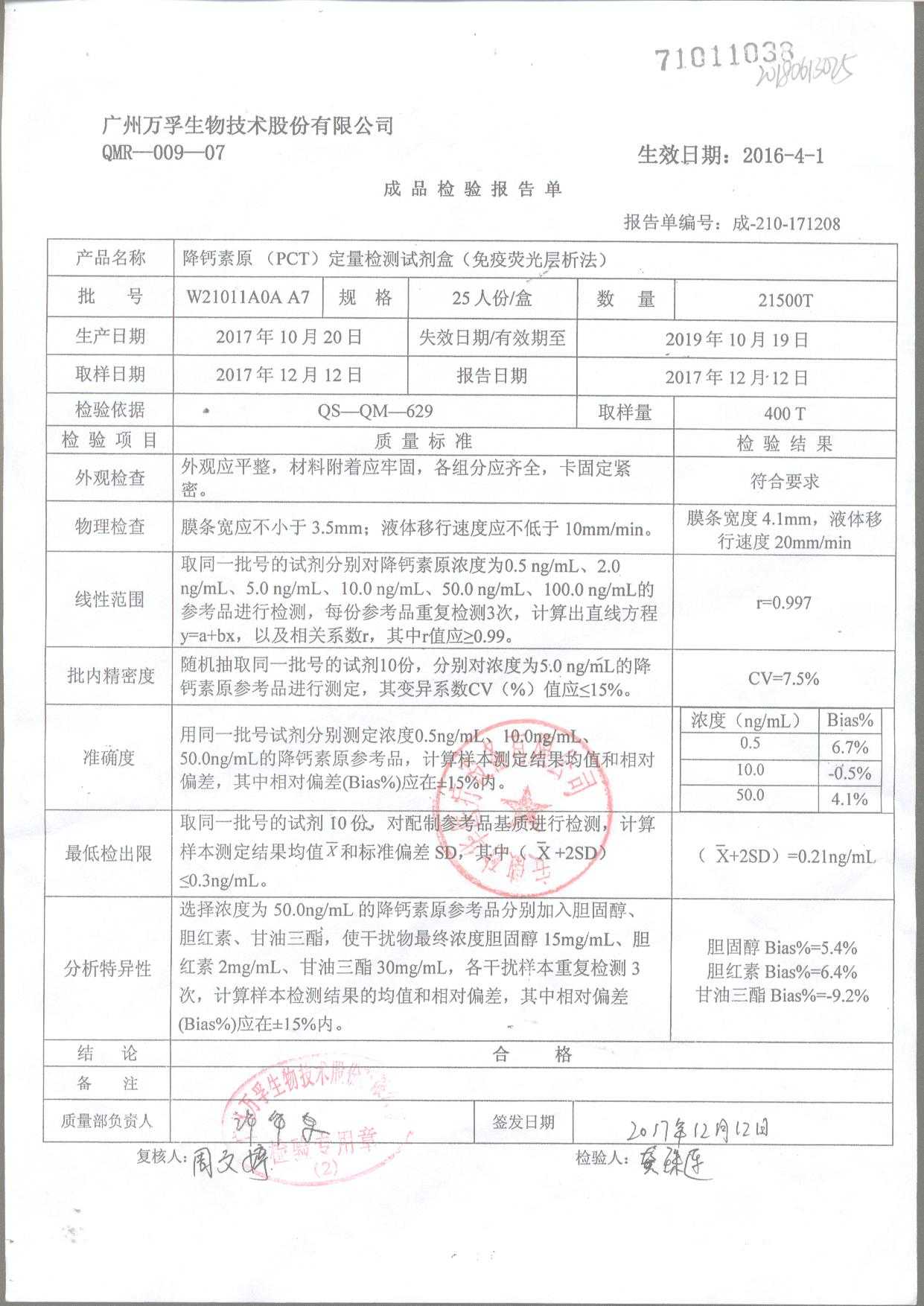 降钙素原(PCT)定量检测试剂盒
