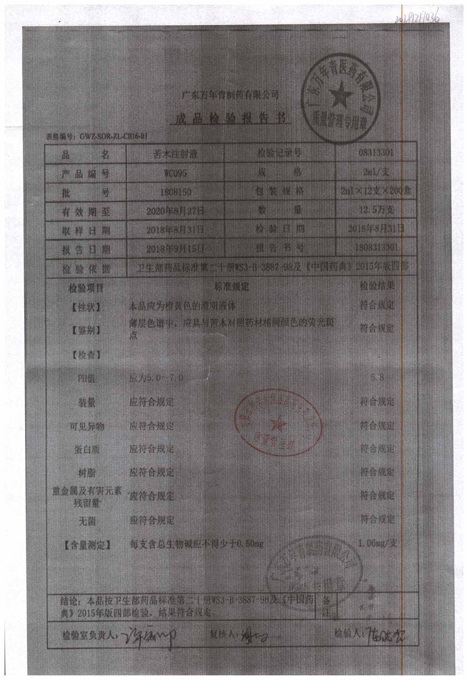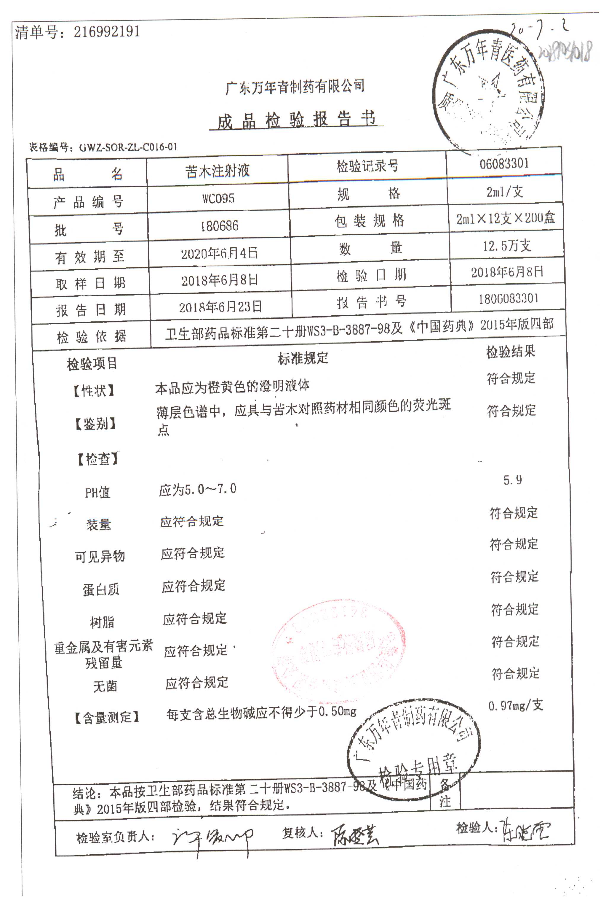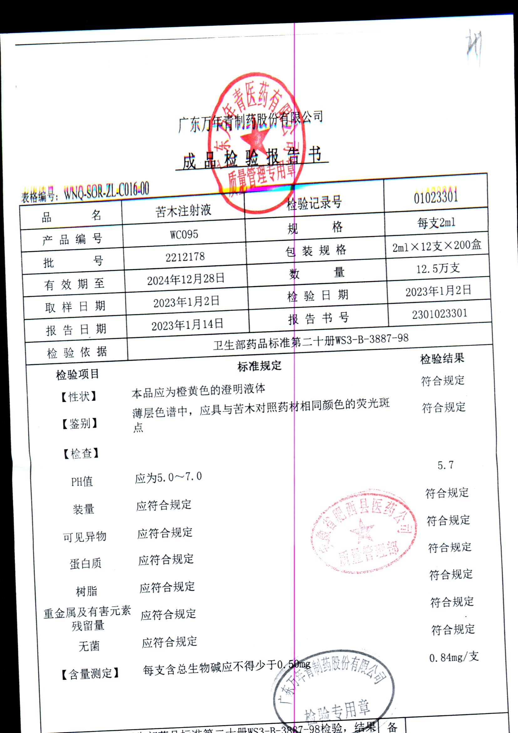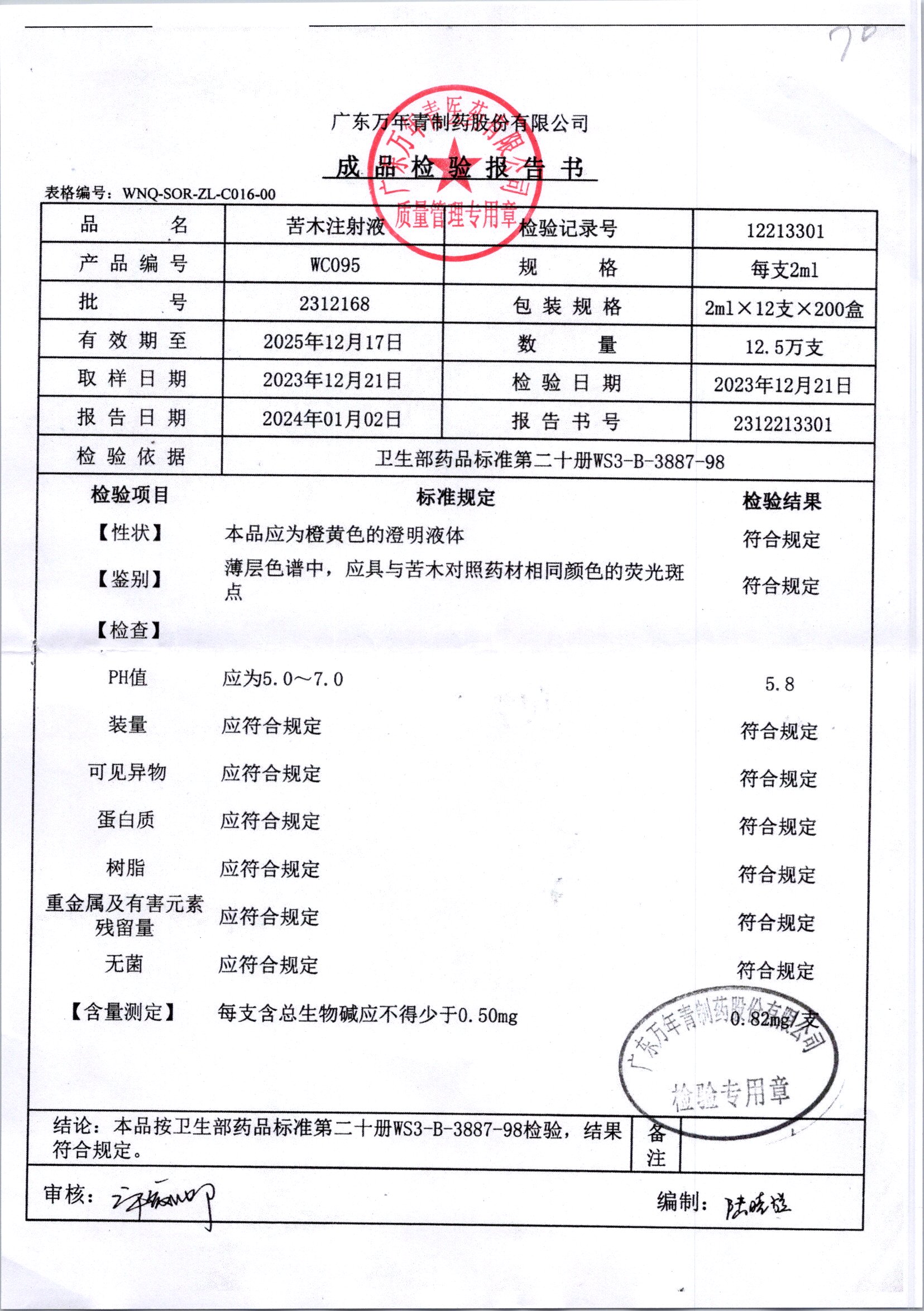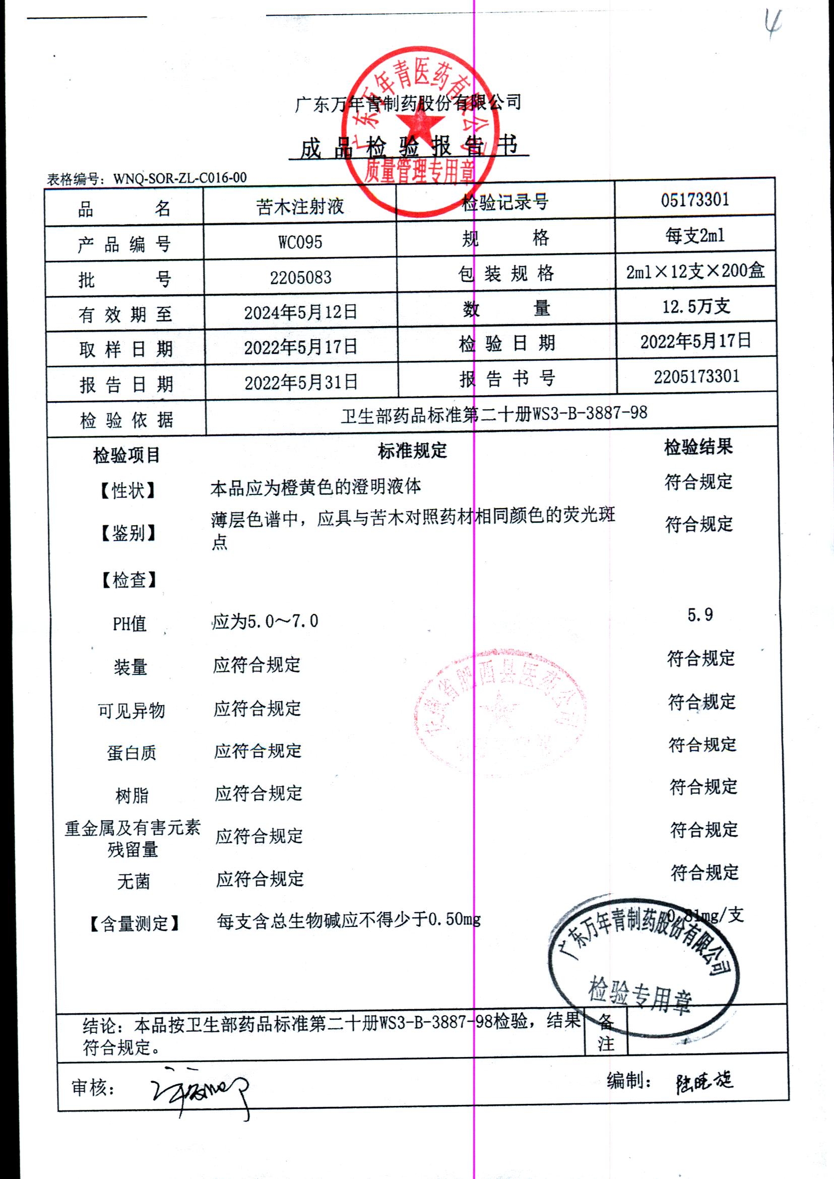 苦木注射液 | 2ml | 210115 | 查看详情 |
